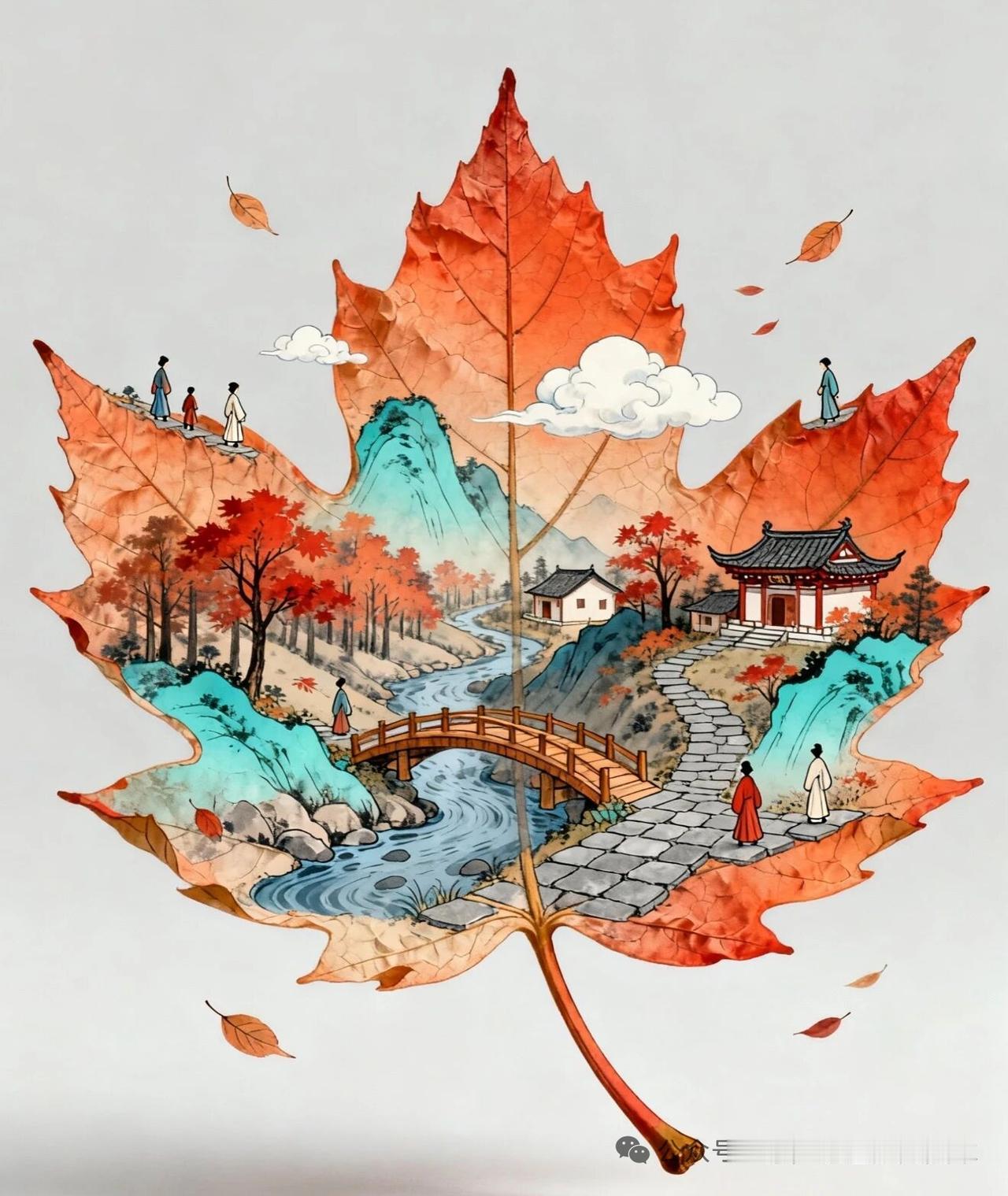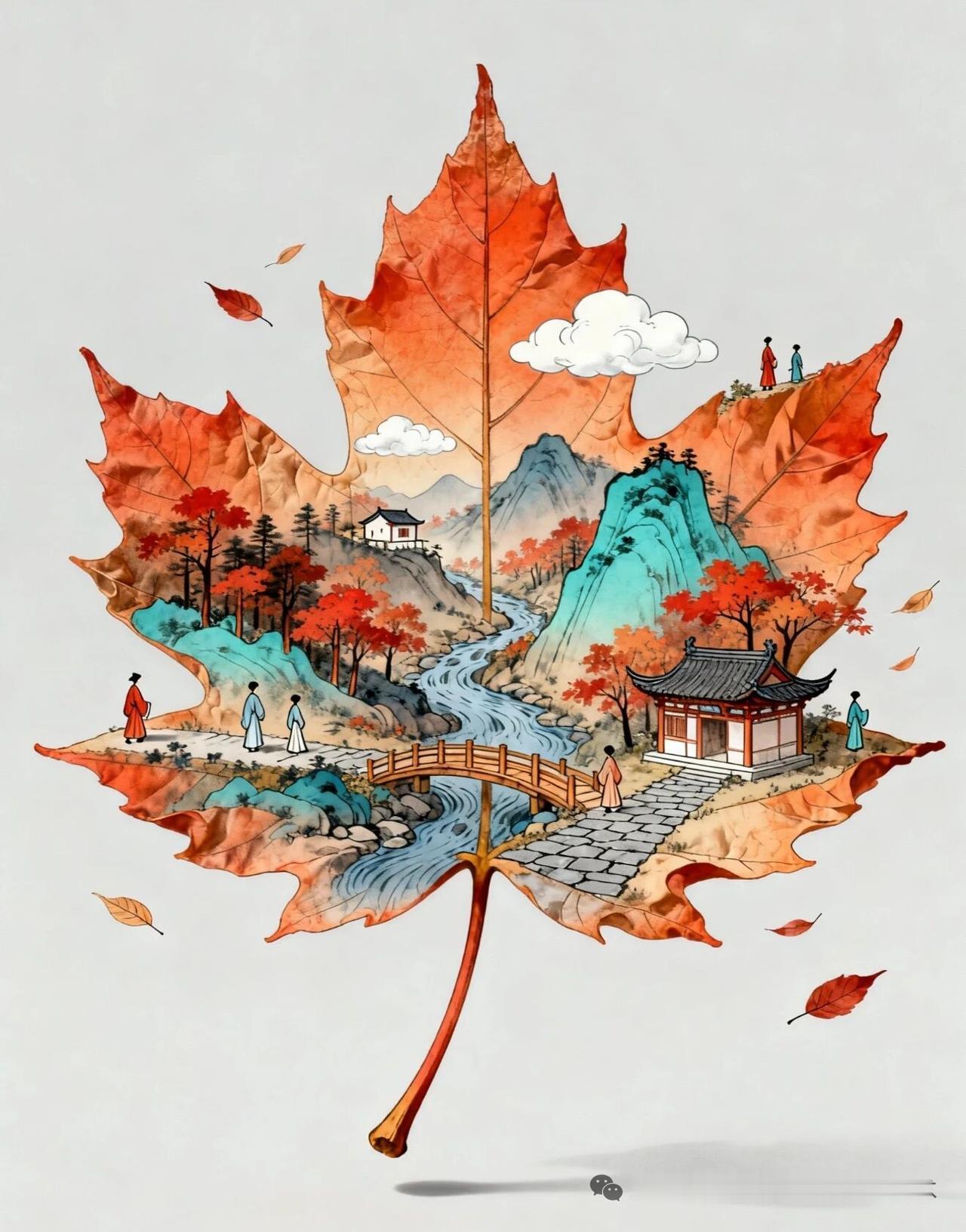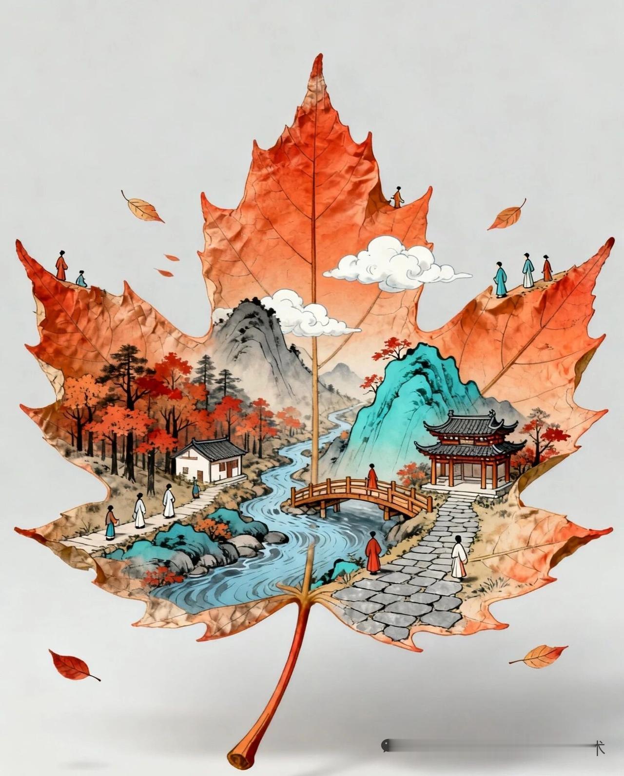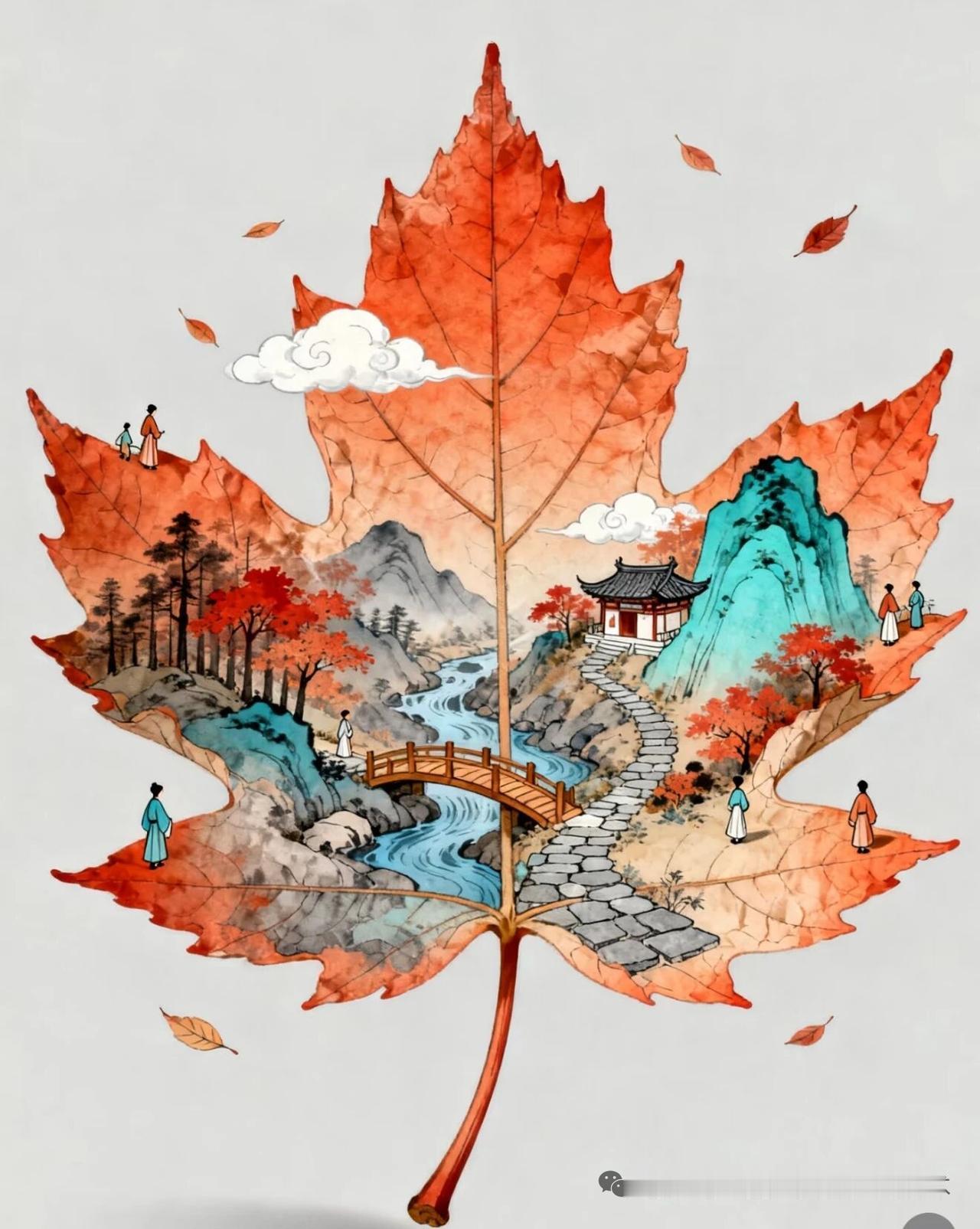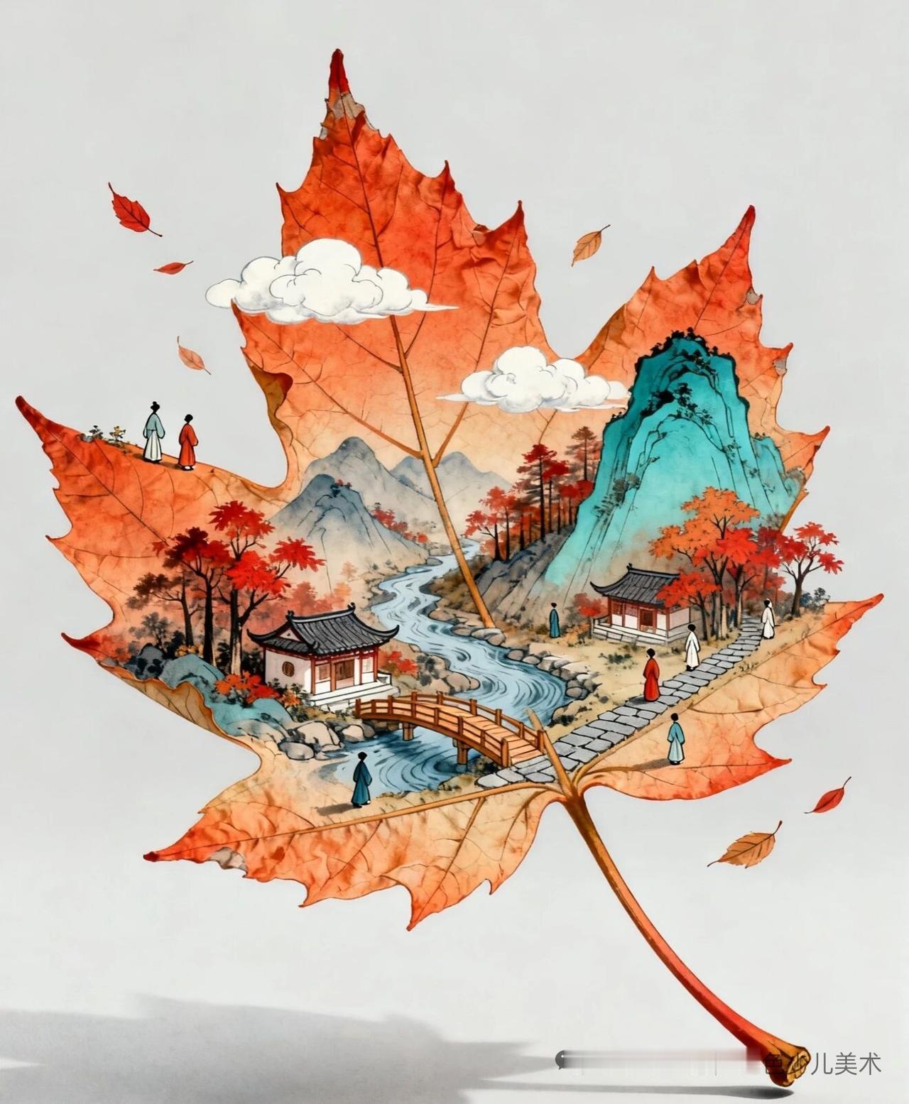 创意美术作品欣赏,枫叶上的山水画!(图片来自网络,仅作分享,如有侵权请联系删除哦枫叶创意照 )