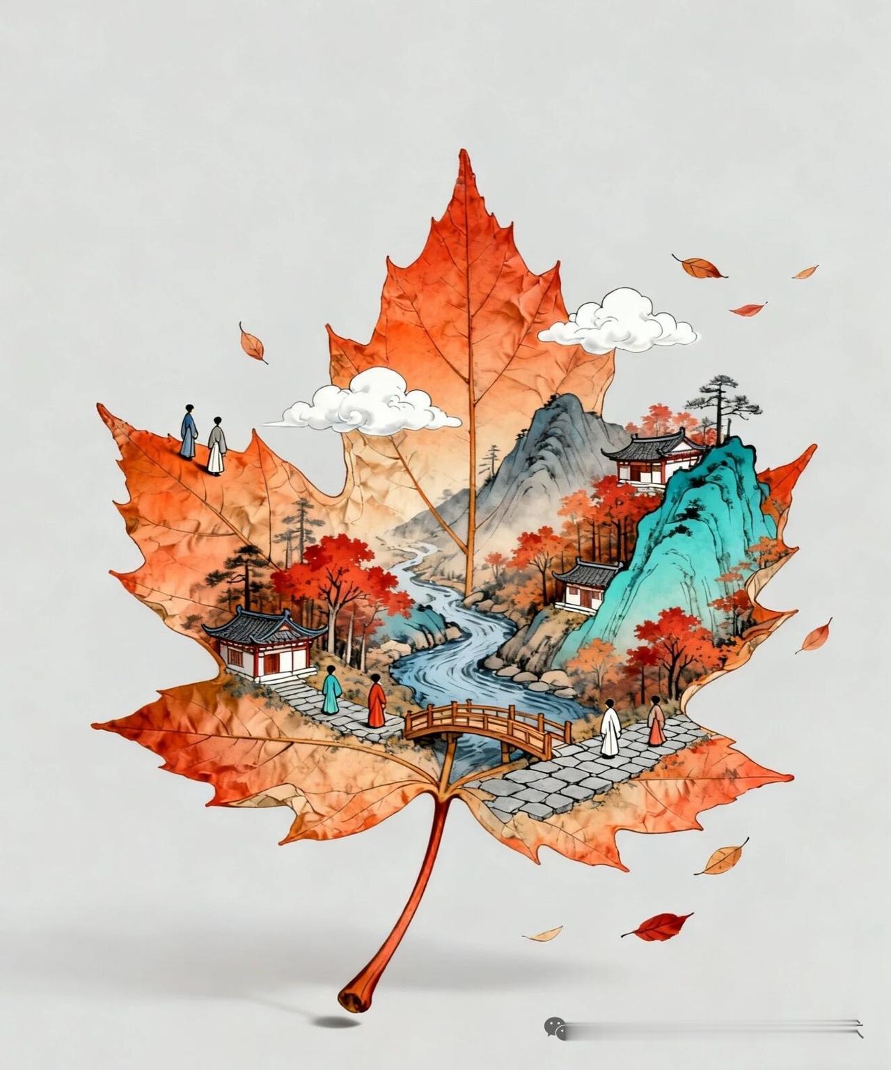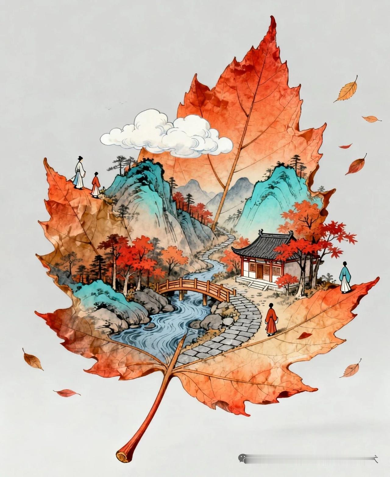 创意美术作品欣赏,枫叶上的山水画!(图片来自网络,仅作分享,如有侵权请联系删除哦