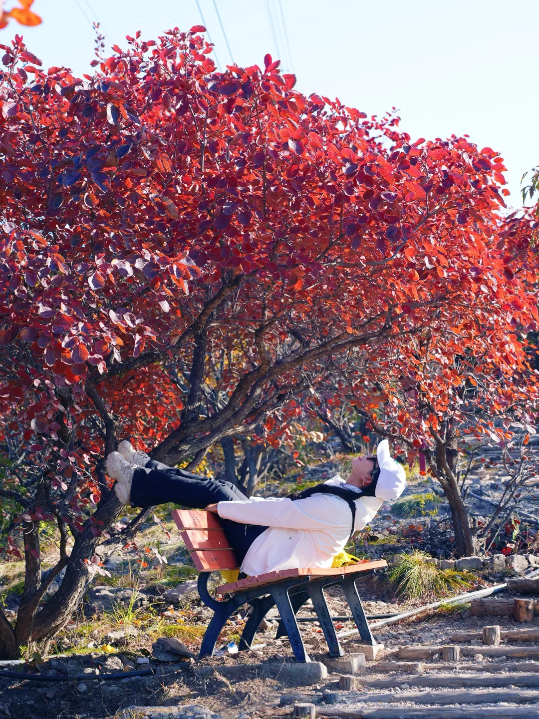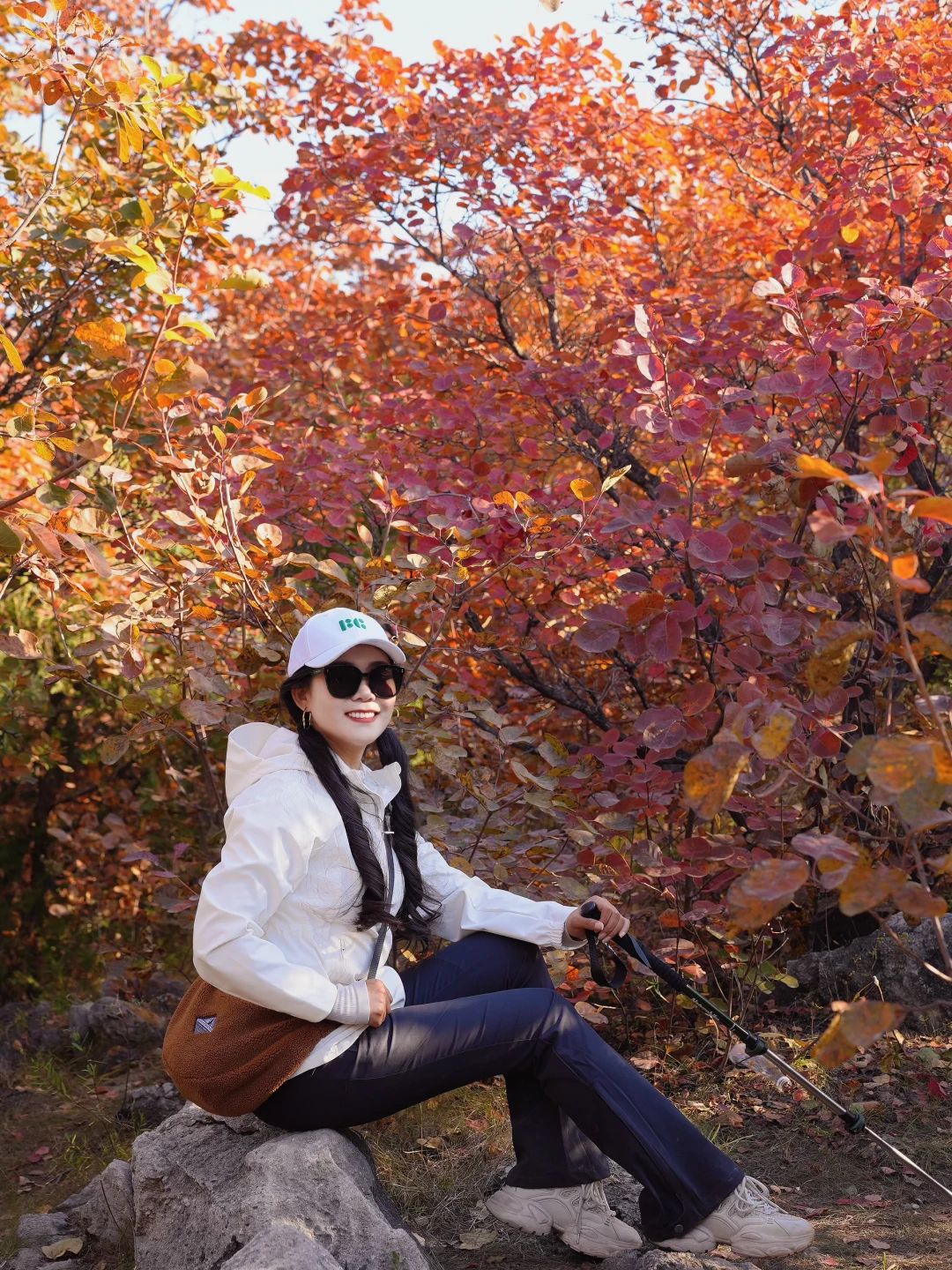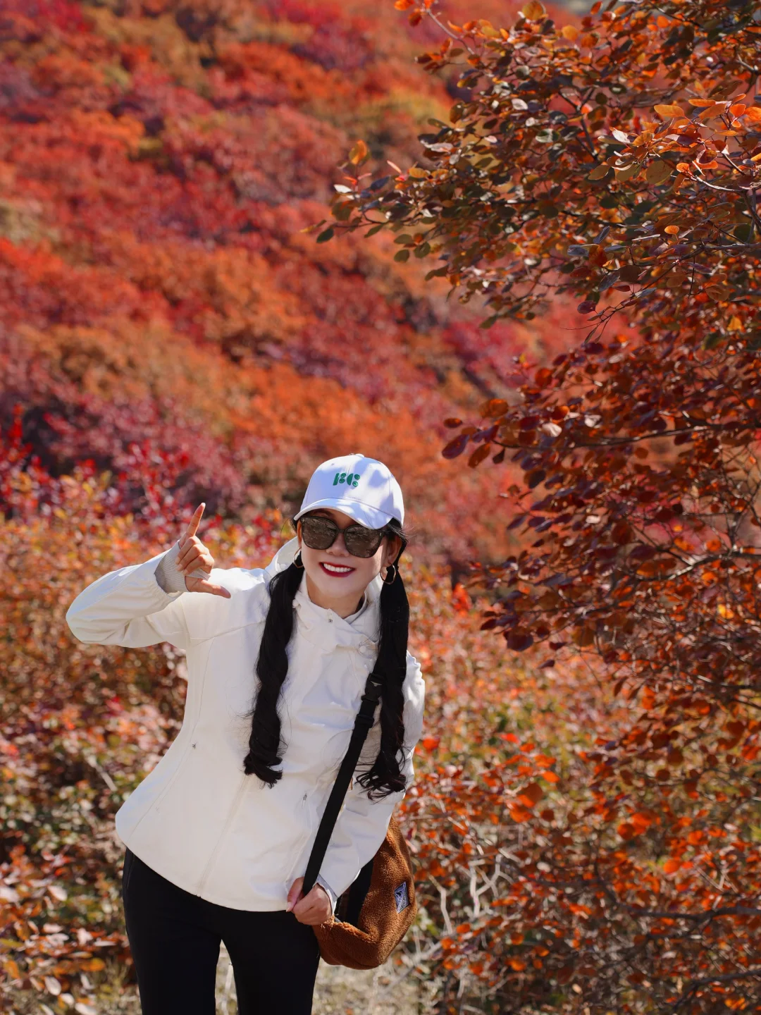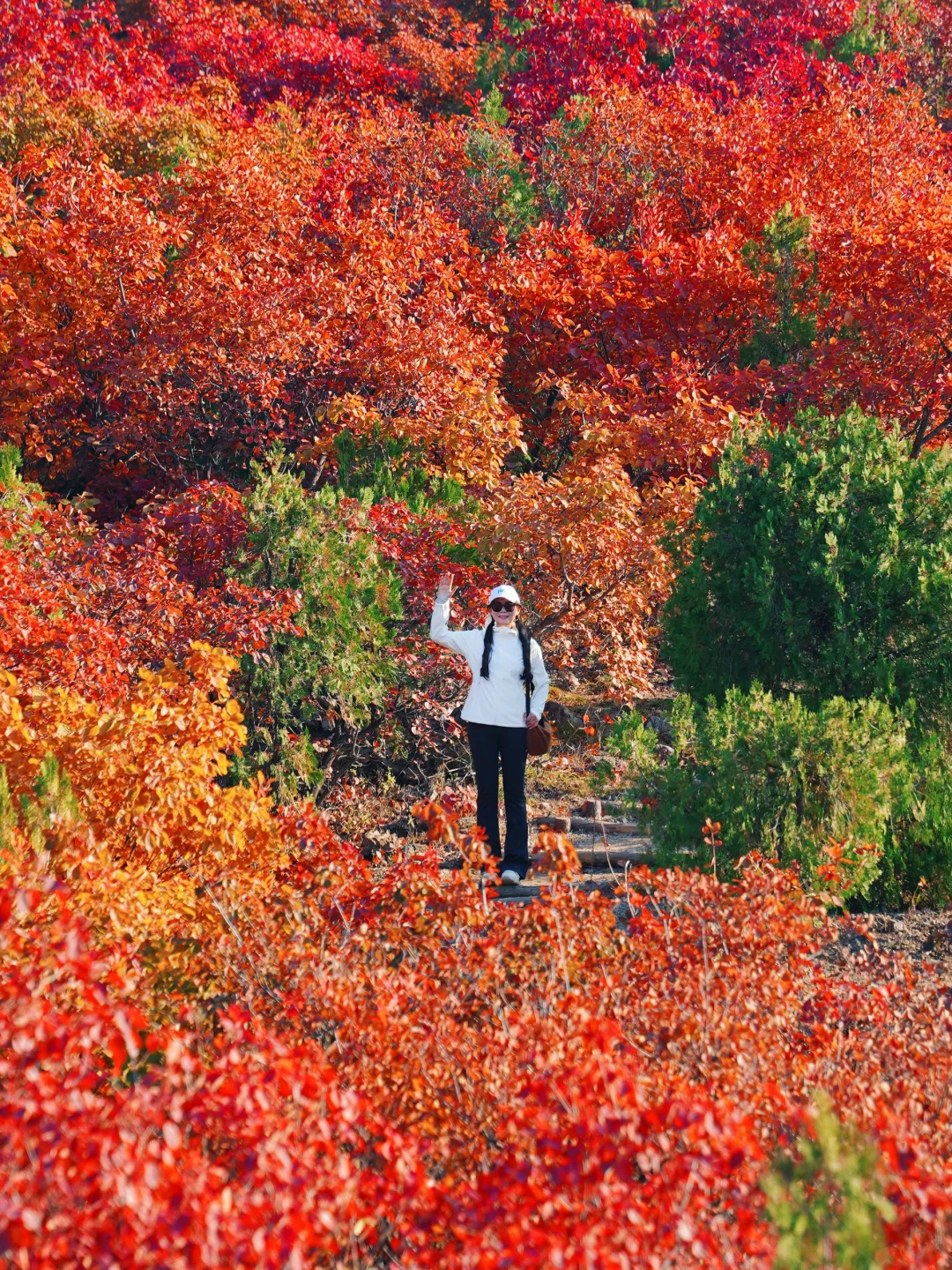 沿着步道走一路都是风景,🈵️山的红黄栌犹如秋日油画🖼️,真的非常震撼