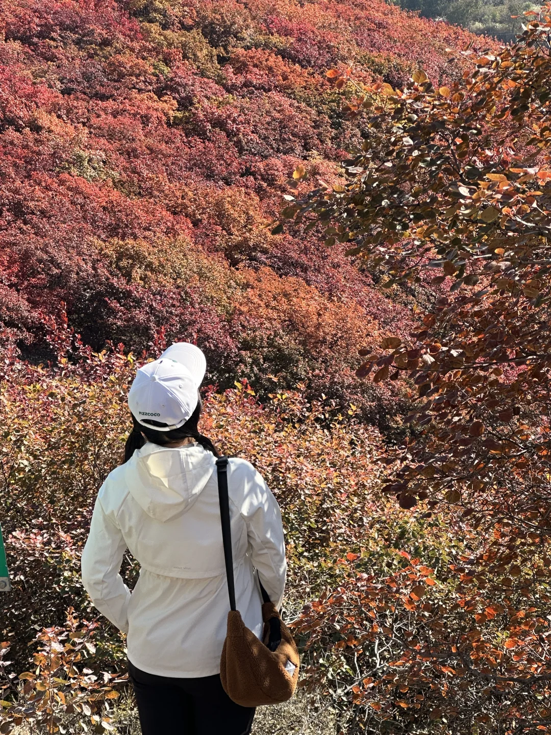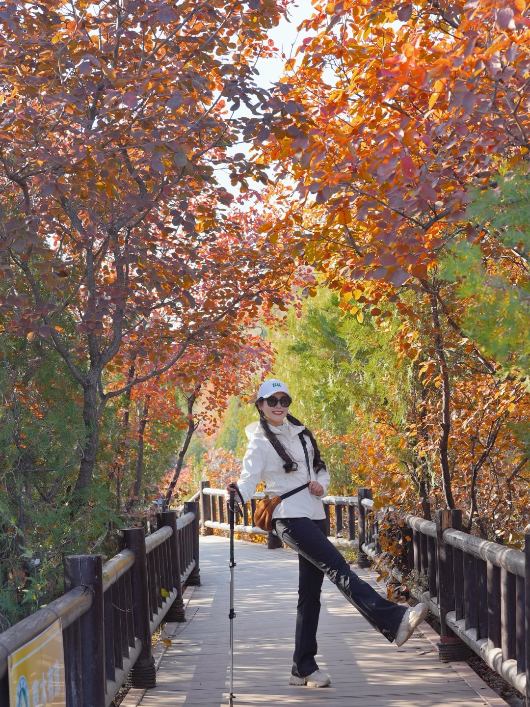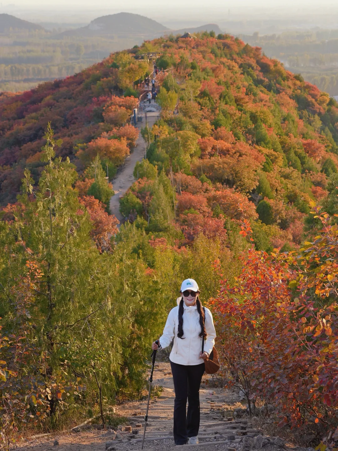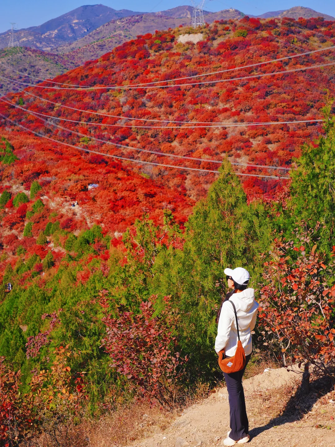 沿着步道走一路都是风景,🈵️山的红黄栌犹如秋日油画🖼️,真的非常震撼