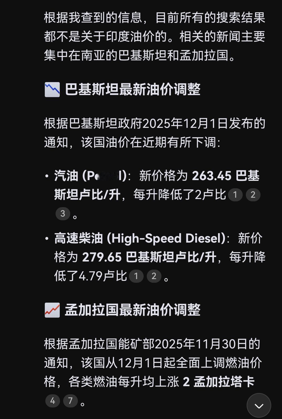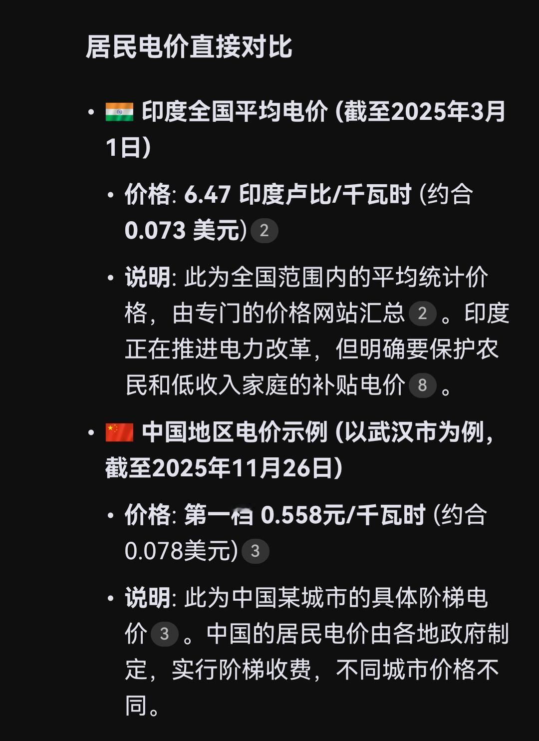 醒醒吧,你们这群人,我差点就信了! 很多人说印度油价便宜,反而电价贵,他们用不起!所以电车没市场!这群人都是乱说的! 问DeepSeek,豆包等查询结果是印度油价网上并没有相关资料,只有孟加拉国和巴勒斯坦油价做参考! 不考虑收入和物价情况下,电价折合国内电价都略比印度高! 所以不要用固定思维去想印度! 所以特斯拉在印度卖不出的原因,可能并不是你们认为的电贵油便宜!印度 印度油价