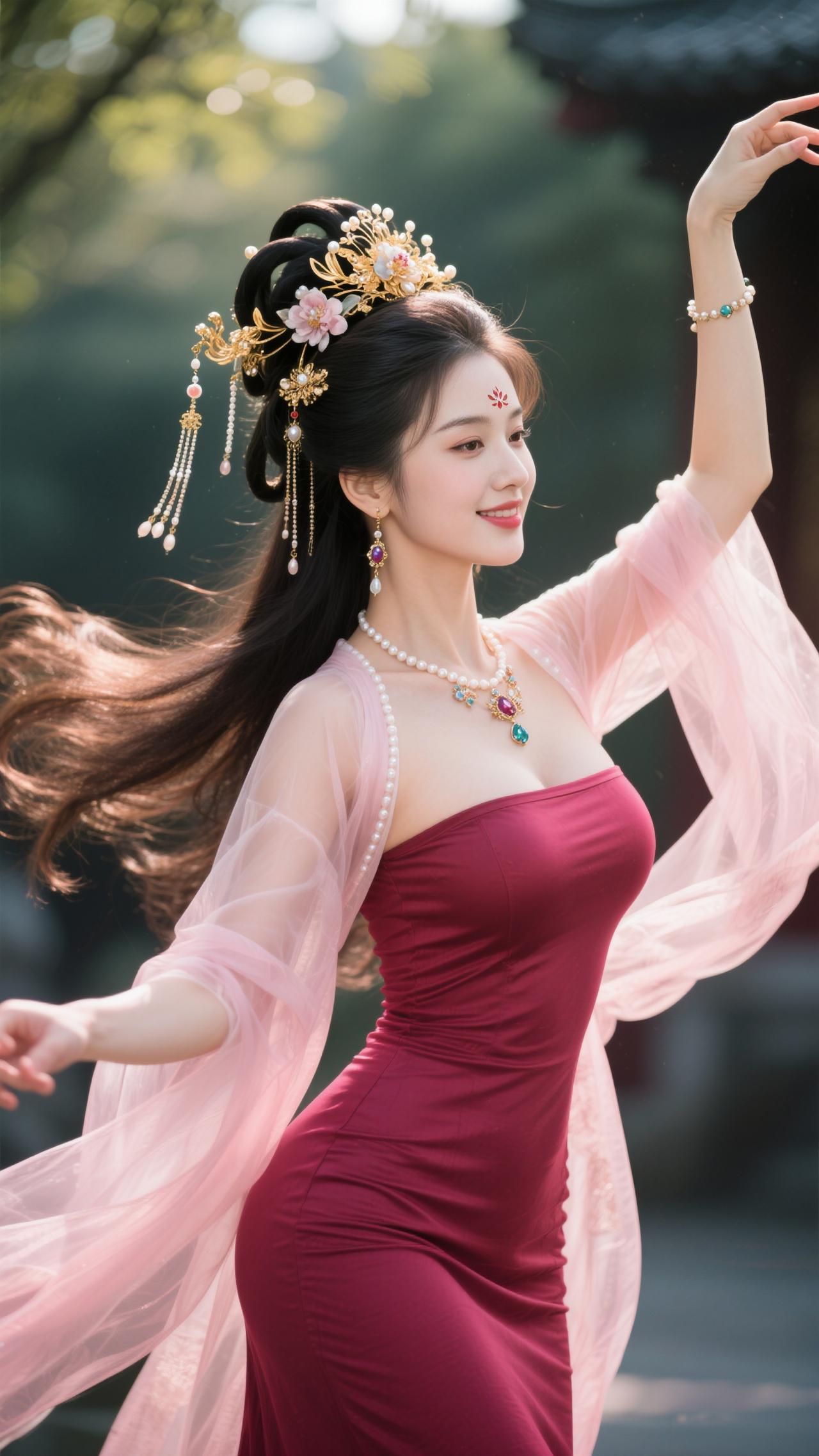 鹧鸪天·舞袖生风 罗袂生香趁晓光,红绡轻曳玉波长。金簪暗坠玲珑露,粉袂斜飞婉转香。 心自畅,意偏扬,愿将欢绪寄清商。一襟绯色随风漫,醉舞庭前梦也狂。古风美女 好身材好气质 极品身材 古装美人