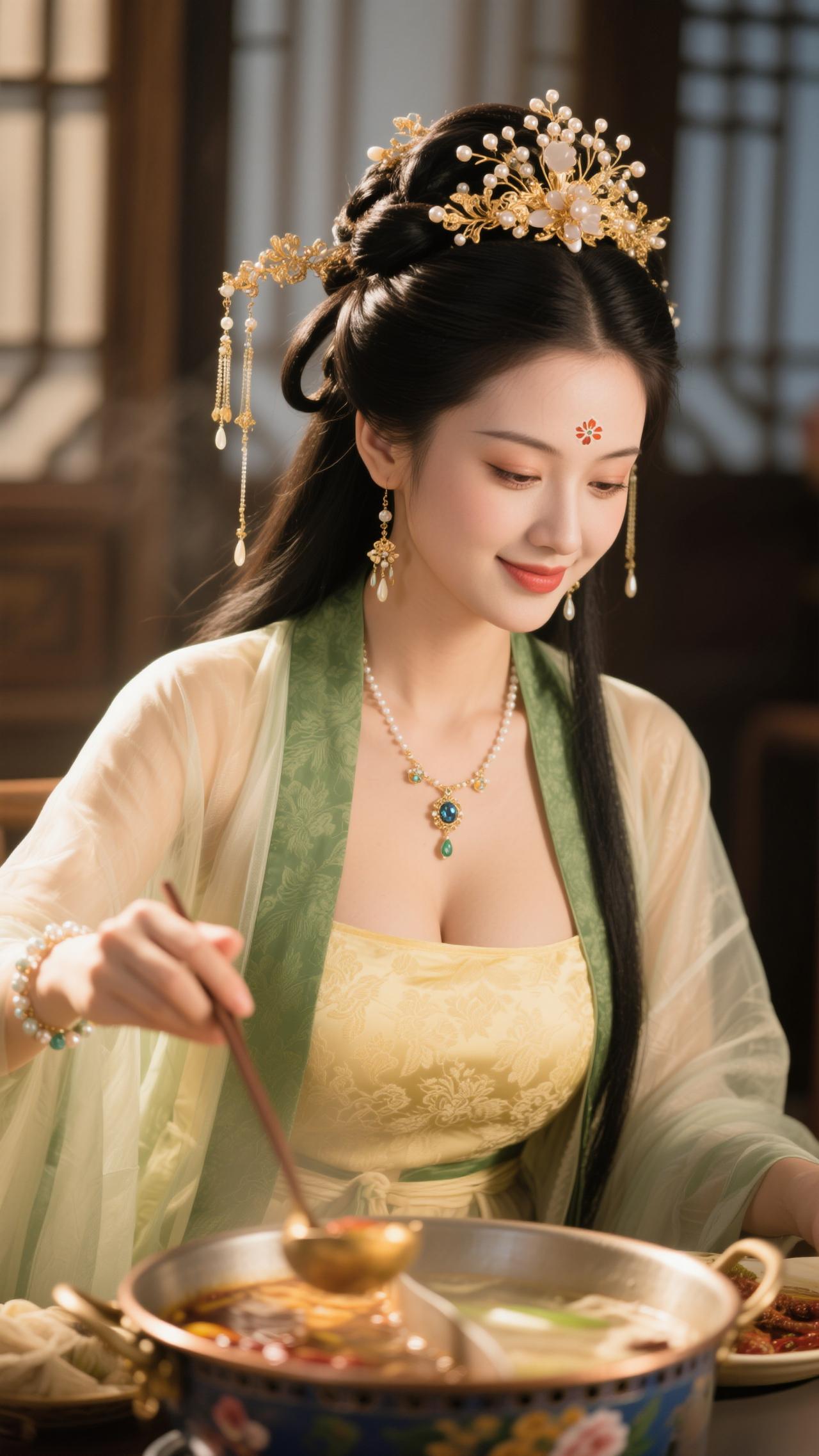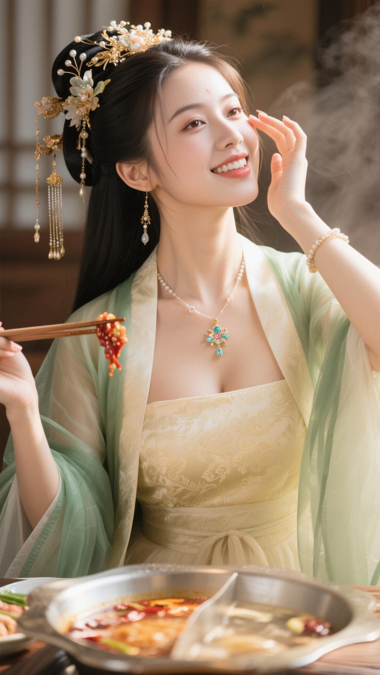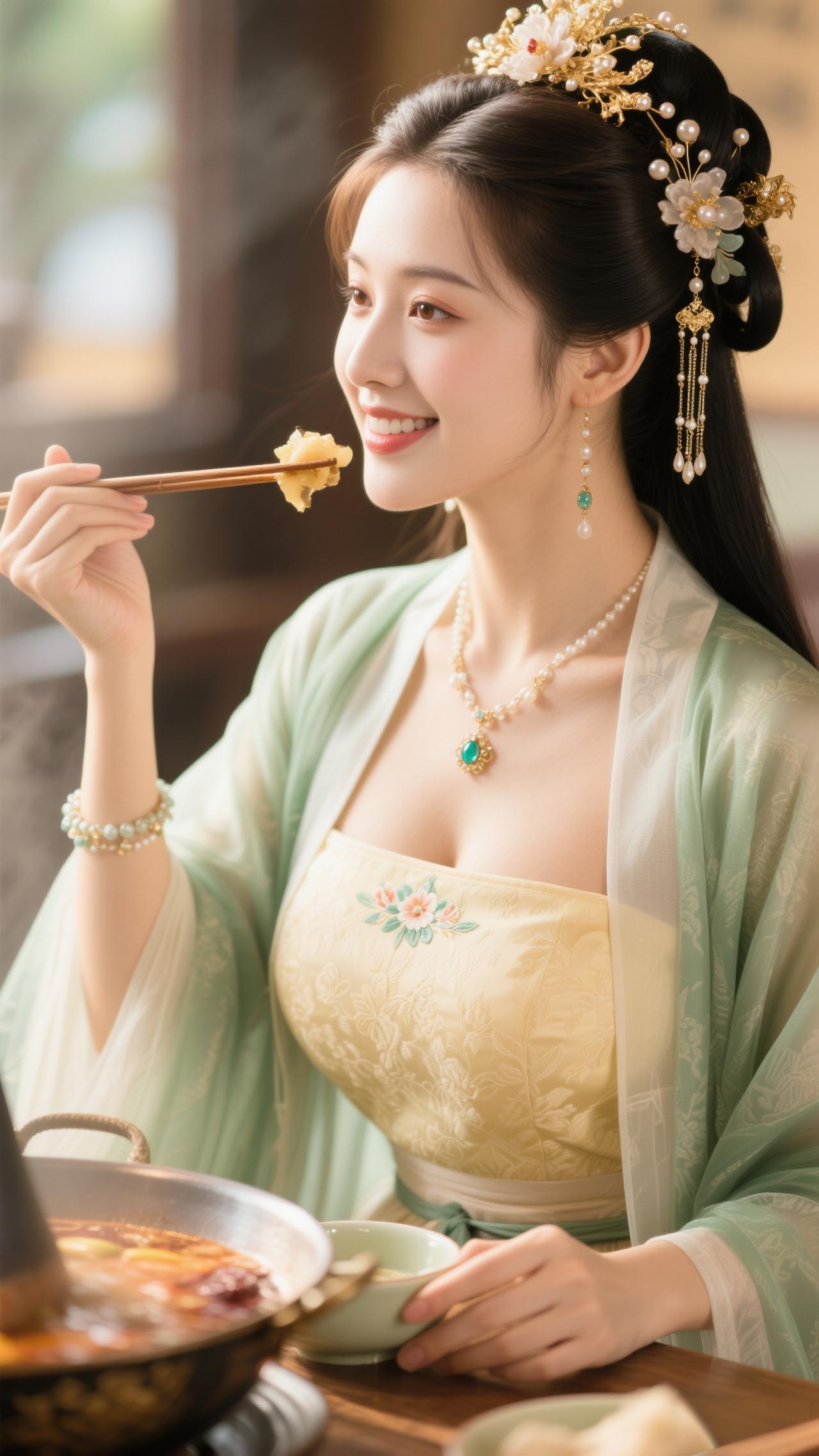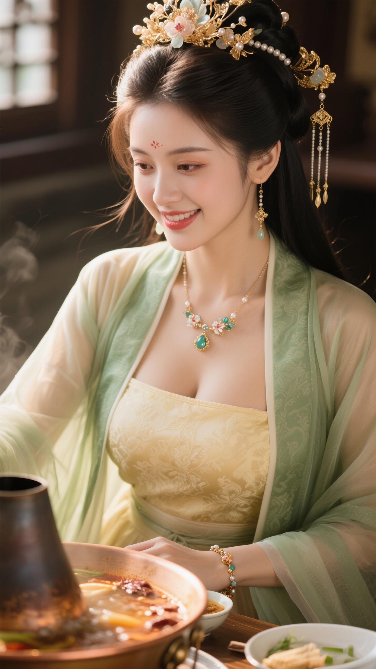 鹧鸪天·暖炉食趣 罗袂生香坐暖轩,青绡轻覆玉光绵。金簪暗锁玲珑韵,红锅明承食意甜。 心自悦,意偏酣,愿将幽绪寄云笺。一箸鲜香随风漫,醉卧炉边梦也欢。
