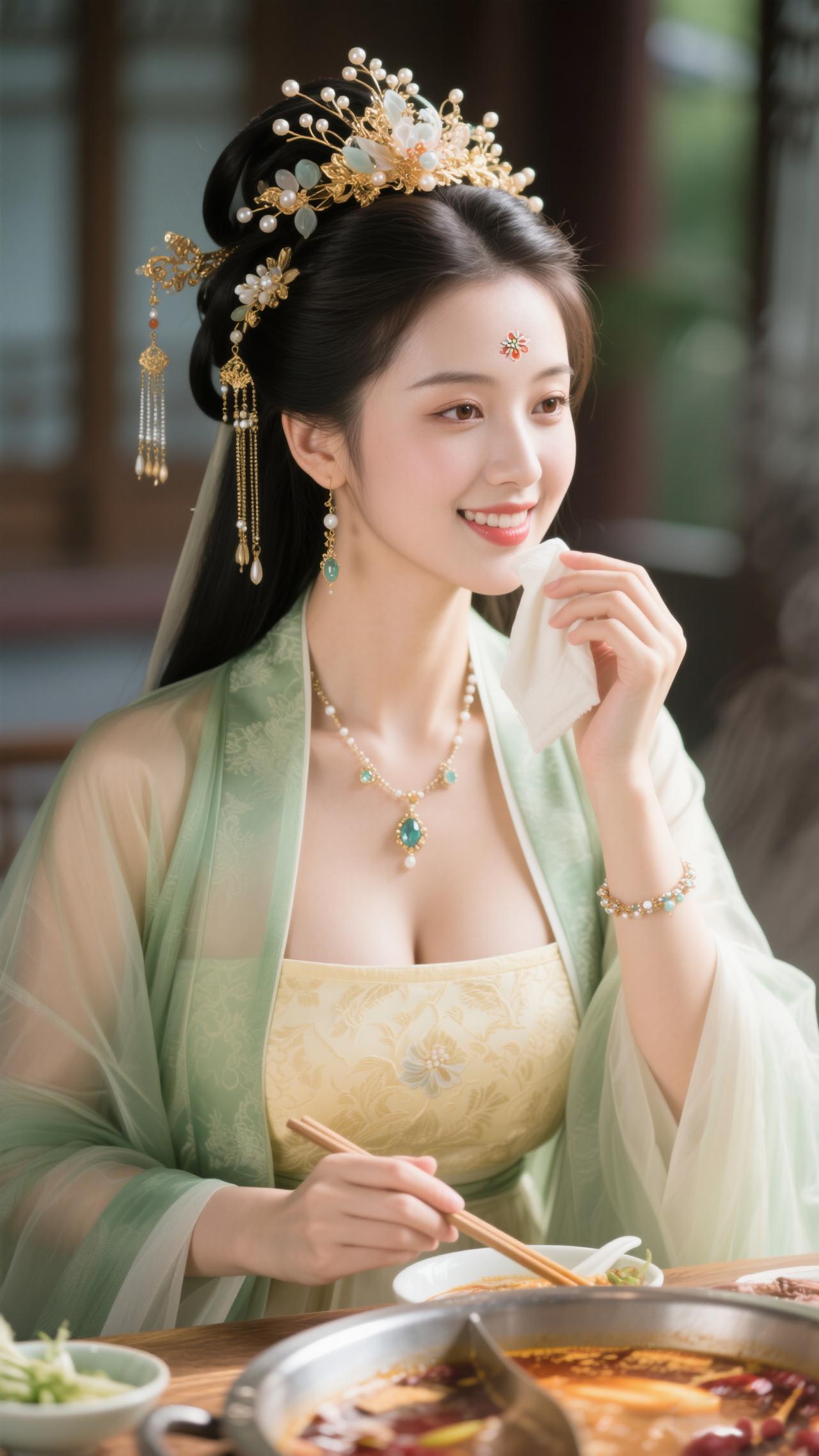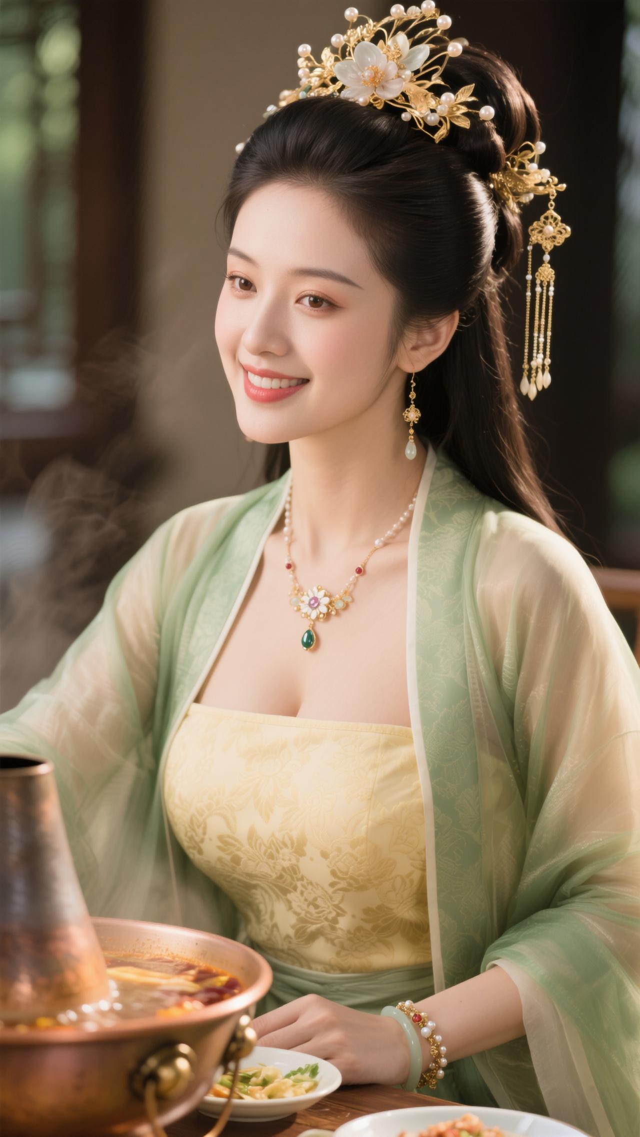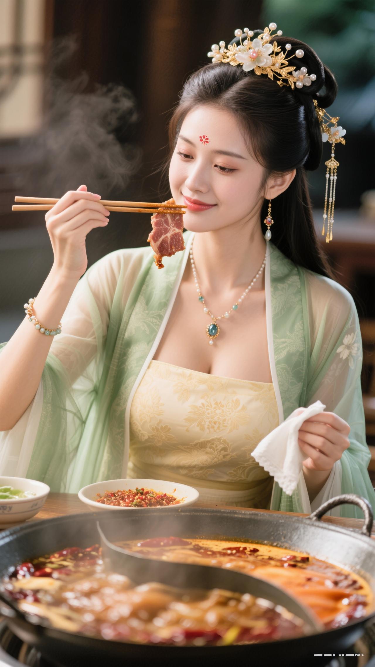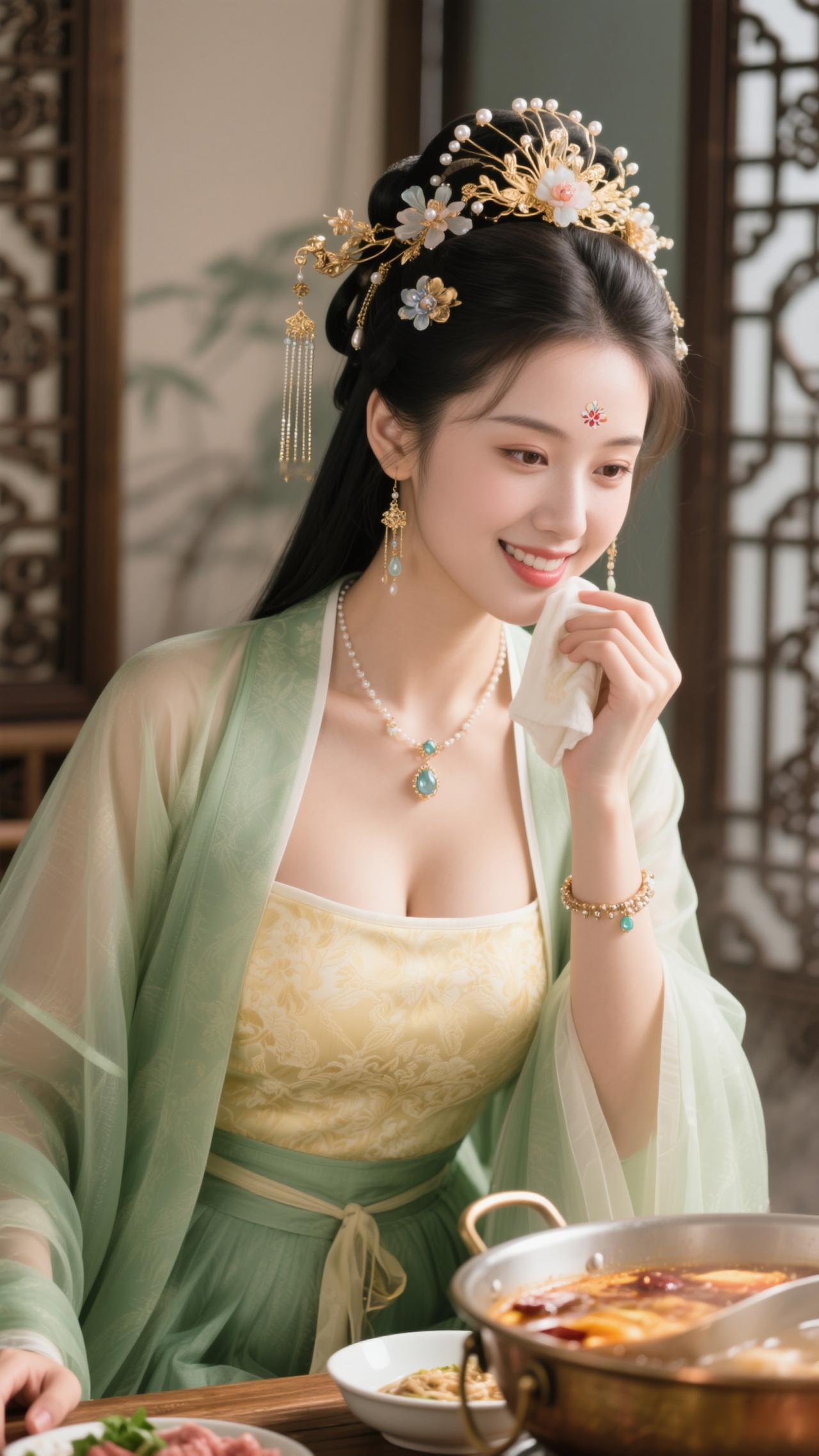 鹧鸪天·暖炉食趣 罗袂生香坐暖轩,青绡轻覆玉光绵。金簪暗锁玲珑韵,红锅明承食意甜。 心自悦,意偏酣,愿将幽绪寄云笺。一箸鲜香随风漫,醉卧炉边梦也欢。