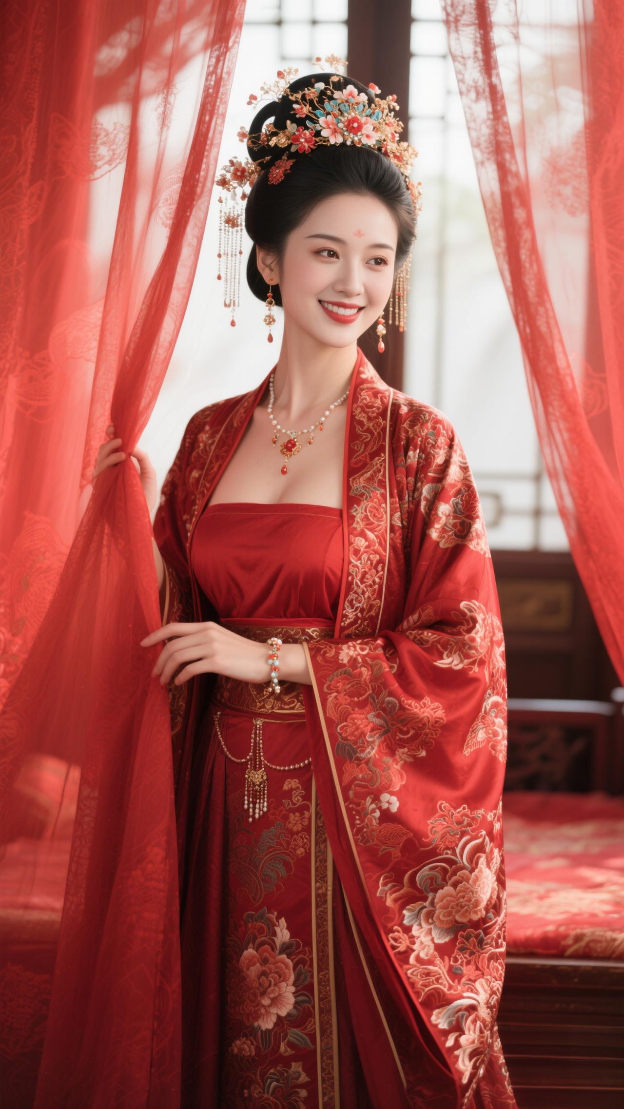 鹧鸪天·朱阁华妆 罗袂生香立阁边,红绡轻覆玉光绵。金簪暗锁玲珑韵,绣锦明承绮意甜。 心自畅,意偏娴,愿将幽绪寄云笺。一襟绯色随风漫,醉卧园窗梦也鲜。