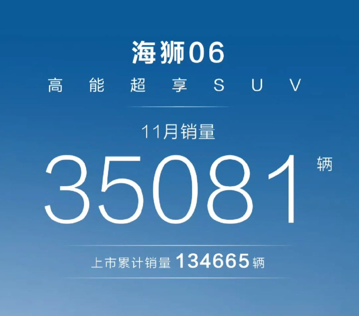 海狮06 11月销量35081辆。完美接棒宋PLUS