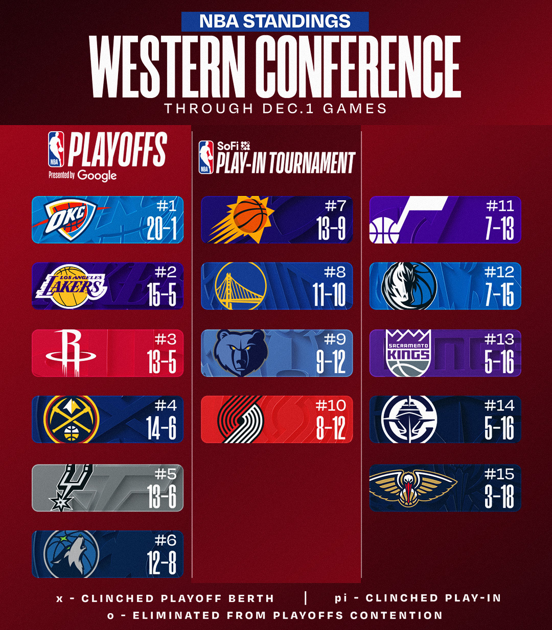 今日比赛结束后的西部排名。“如输”的一天…湖人