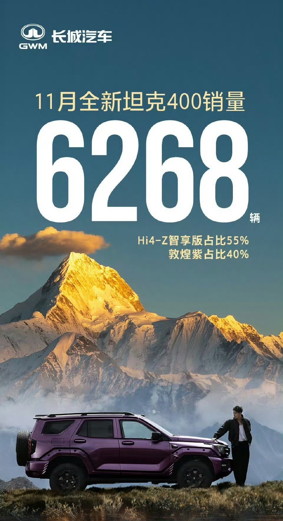 坦克品牌全品牌11月销售24135台新车,其中刚刚上市的全新坦克400销售6268台,全新坦克500销售7056台我与汽车的日常汽车杂谈