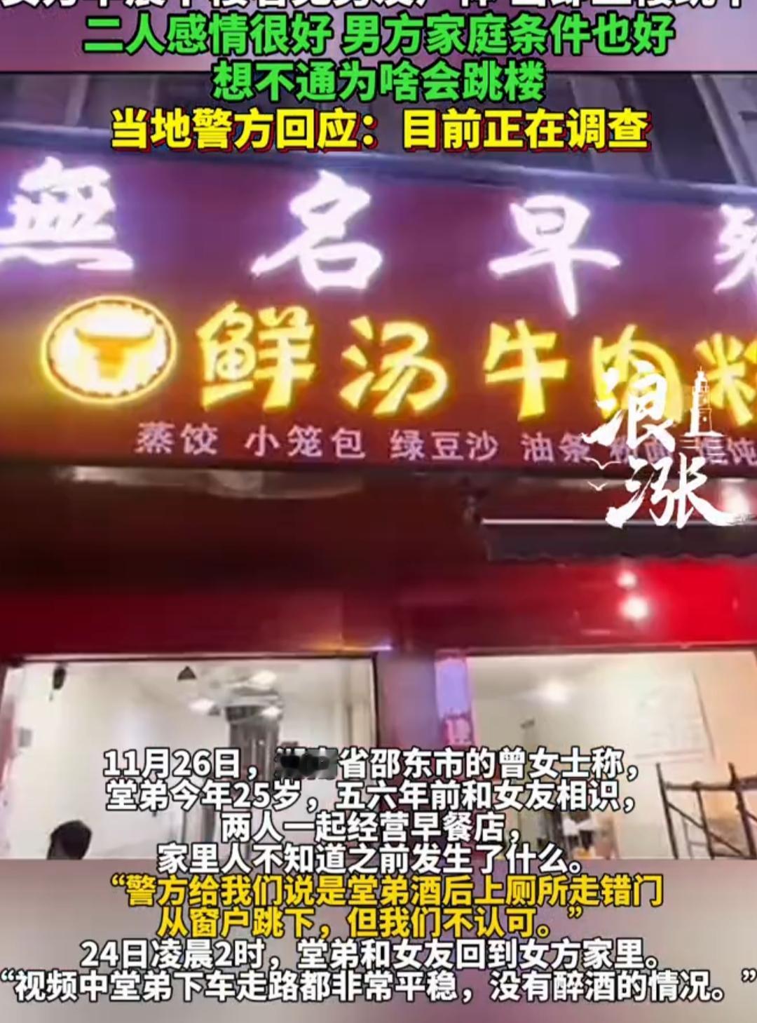 婚期前夜双坠亡!湖南25岁情侣婚纱照刚拍好,4秒视频成最后谜团 “明天就办婚礼,今天却阴阳相隔”,湖南一对相恋五六年的情侣,在结婚前一天先后坠楼身亡的消息,让全网揪心不已。本该张灯结彩的喜日,最终变成令人扼腕的葬礼,而一通仅4秒的微信视频,更让案件充满未解之谜。 据悉,25岁的小伙曾某与女友阳某相识五六年,两人携手从早餐摊打拼到实体店,感情和睦且得到双方家庭全力支持。男方家境殷实,有车有房无贷款,婚礼请柬早已发出,婚纱照里两人笑靥如花,所有人都以为这是一段幸福的开端。11月23日晚,小两口和朋友聚餐后,回到双峰县青树坪镇的女方家中,准备迎接次日的婚礼。 监控显示,24日凌晨2时两人归家时,曾某走路平稳,毫无醉酒迹象。可凌晨5时4分,曾某突然两次微信视频呼叫女友,第一次未接通,第二次接通仅4秒便中断。短短1小时22分钟后,曾某不幸坠楼身亡;清晨7时40分,阳某被母亲叫醒下楼,看到男友遗体后悲痛欲绝,当即跑上四楼跳下,下午因伤势过重离世。 警方初步推测曾某系酒后上厕所走错门坠楼,但这一说法遭到家属强烈质疑:“监控里他走路稳稳当当,同住一室为何要深夜发视频?”这一疑问也引发网友热议,有人猜测是婚前矛盾、临时变故,也有人担忧房屋安全隐患,但均无实据支撑。目前,关于视频通话的内容、现场是否有冲突痕迹等关键信息,仍需警方进一步调查核实。 五六年的相守,从并肩创业到即将步入婚姻,却在幸福临门之际戛然而止。那张甜蜜的婚纱照与冰冷的悲剧形成强烈反差,让无数网友惋惜不已。婚姻本是爱的延续,而非生命的终点,无论是意外还是心结,都让人感叹生命脆弱。 目前警方仍在全力调查,期待尽快还原真相,给逝者和家属一个交代。也愿这起悲剧敲响警钟,婚前沟通与情绪疏导不容忽视,再亲密的关系也需多一份坦诚与包容,别让遗憾定格在幸福来临前。新婚跳楼
