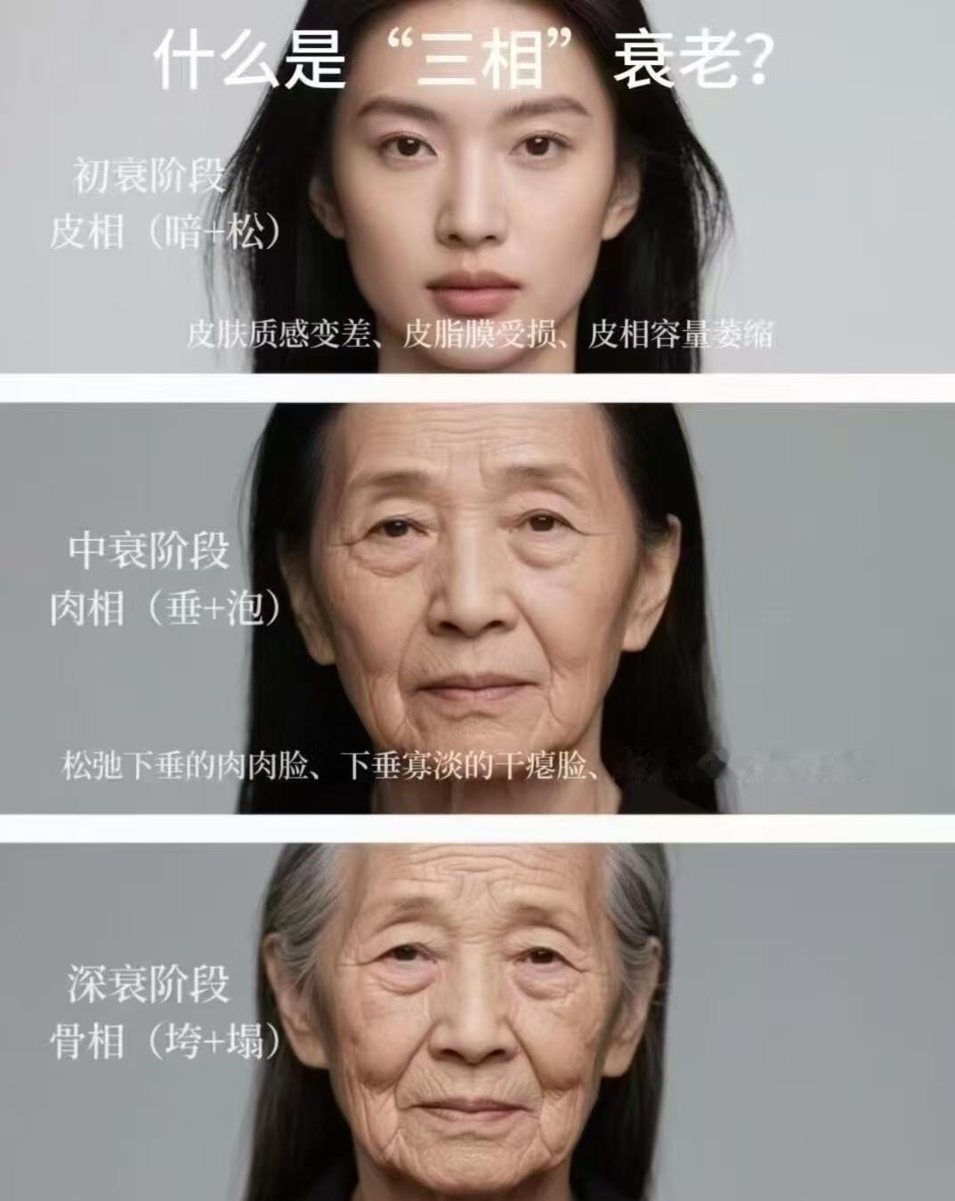 多摄入深色蔬菜(菠菜、西兰花)、水果(蓝莓、石榴)、坚果和全谷物,富含维生素C、E、多酚等抗氧化剂,对抗自由基损伤。减少炎症反应,适量摄入优质蛋白,豆类、鱼类、鸡肉,维持肌肉和胶原蛋白。 可能激活细胞自噬,延缓衰老。避免高糖、高加工食品,减少糖化终产物,对皮肤的损害。 胶原蛋白肽,可能改善皮肤弹性,需结合维生素C。益生菌/发酵食品(酸奶、泡菜):维持肠道健康,影响免疫和炎症 瑜伽、太极等改善身体柔韧性,降低跌倒风险,缓解压力。提早衰老 使用含视黄醇、胜肽、维生素C的护肤品,刺激胶原生成。 保湿是关,避免皮肤屏障受损。每晚7-9小时睡眠,深度睡眠促进生长激素分泌,修复细胞,保持睡眠规律,避免蓝光影响褪黑素分泌。 保持社交互动,孤独感可能增加炎症和认知衰退风险。 · 定期检查血压、血糖、血脂及激素水平。 戒烟限酒,烟草和过量酒精破坏胶原蛋白。减少环境暴露,避免空气污染、重金属等毒素。 衰老是全身性过程,需系统应对。基因占衰老因素的20-30%,生活方式才是主导。建议从小习惯开始逐步改变,并咨询医生或营养师制定个性化方案。