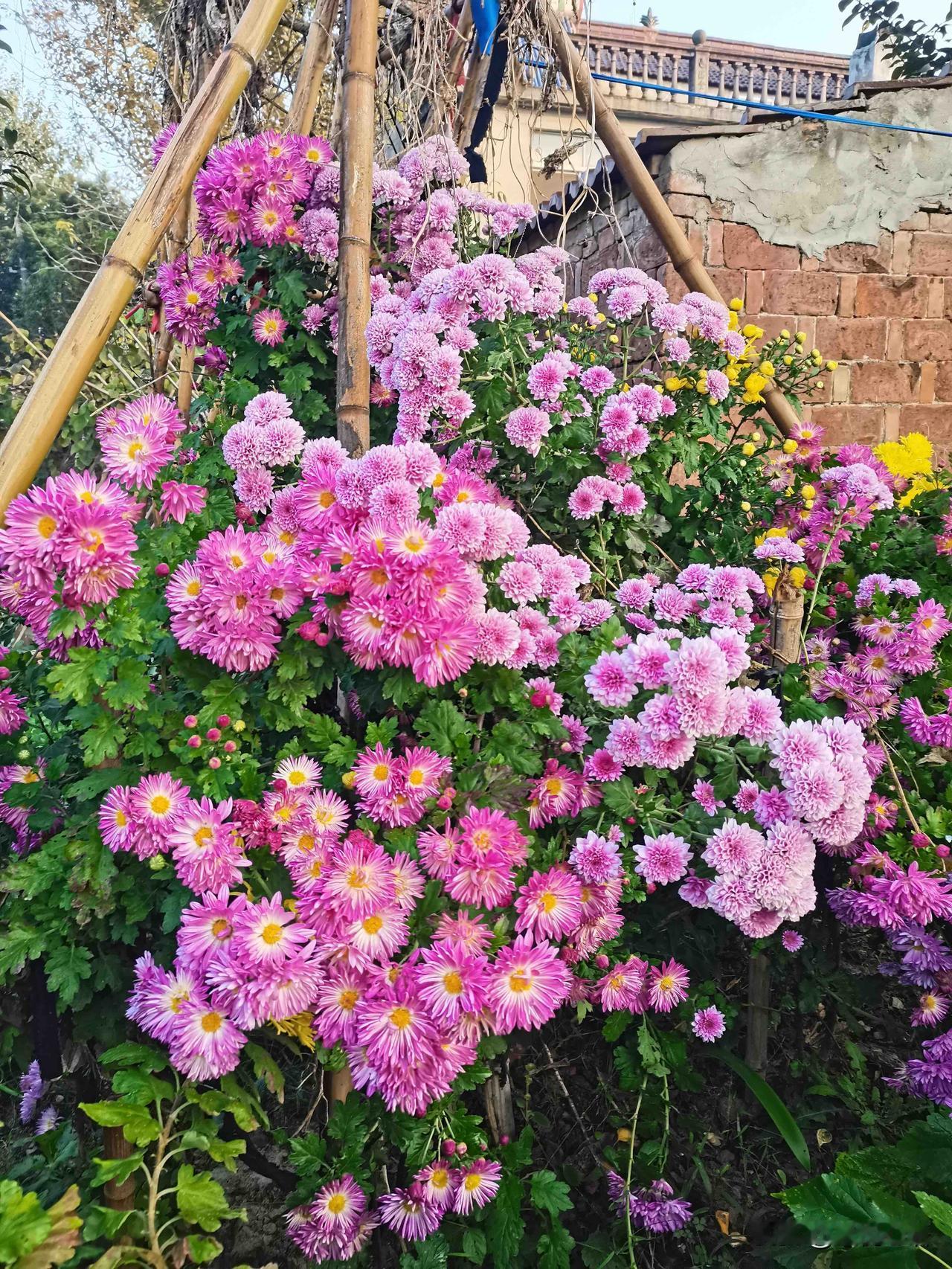 这么美丽的菊花,养在农村老太太的院子里 小时候每次回村,总爱蹲在村口那位老太太家门口拍照。她是个普通的农村老人,每天忙着种菜、做饭,烟火气满身,却总肯留一块地给花草。 我看中她的菊花,就撺掇婆婆来年去讨一棵,今年春天移植的小苗,秋冬竟也开得热热闹闹。 忽然就想起小学时,学校旁的老太太也这样。 她院子里的大月季开得艳,就跟我们做交易:捡一捆竹衣换一朵玫瑰,简单又浪漫。 其实哪有什么天生的浪漫体质,不过是认真生活的人,不肯辜负日子罢了。 她们不悲春伤秋,不刻意精致,却愿意分出精力取悦自己,把平凡的日子种满鲜花。 原来最动人的女性力量,从不是轰轰烈烈,而是在柴米油盐里,也能把日子过成诗。 生活的美从不在别处,就在这烟火气里的温柔,在每个认真爱生活的人眼里。