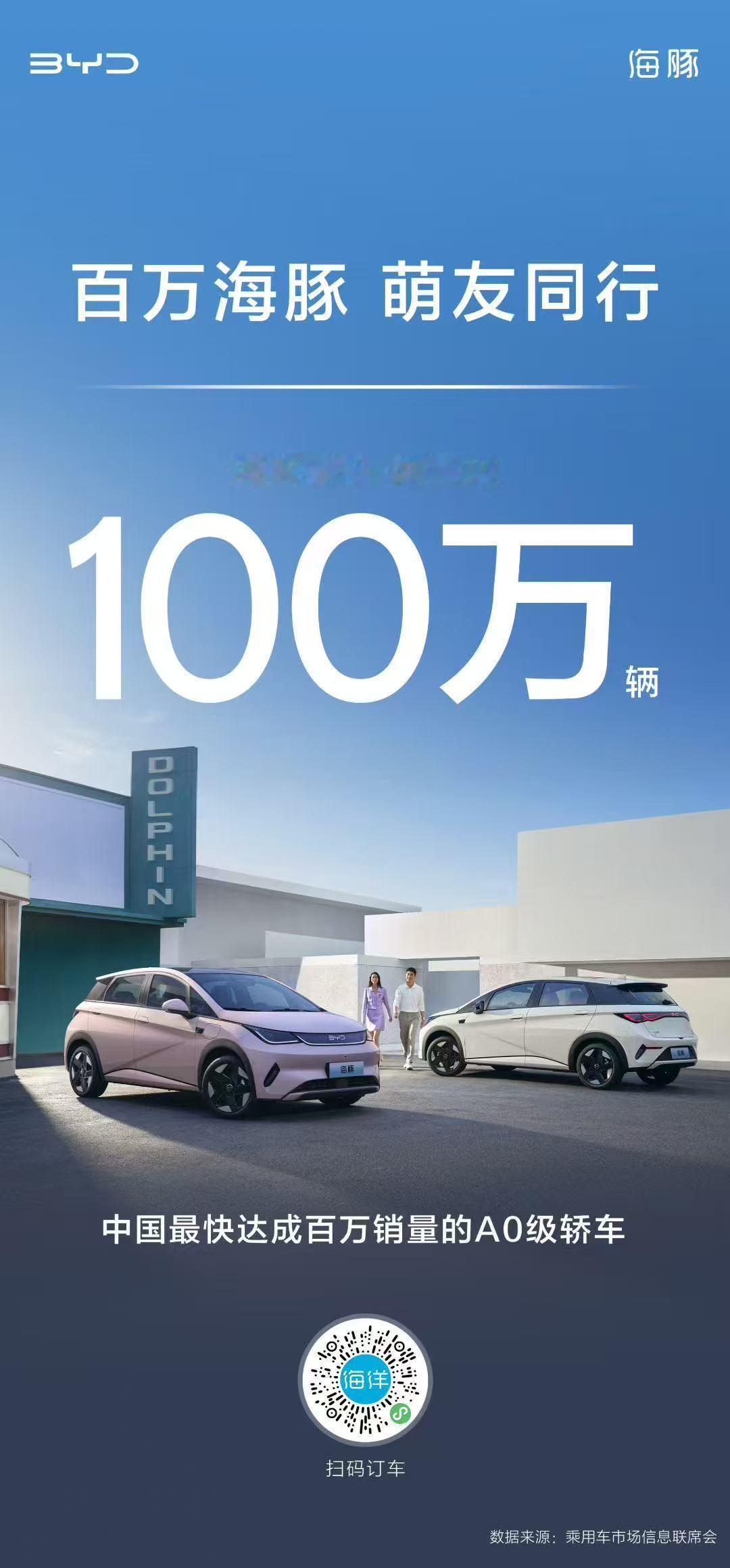 百万海豚萌友同行海豚这车厉害啦,上市后累计销量都冲破100万辆了,还是中国最快达成这成绩的A0级轿车!