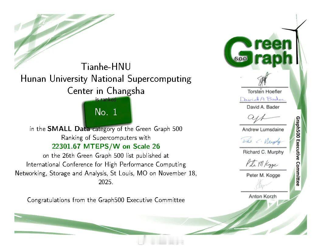 国家超级计算长沙中心的“天河”新一代国产主机系统以22301.67 MTEPS/W的性能功耗比,夺得Graph500小数据图计算能效(GreenGraph500 Small Data)世界第一,实现三连冠。随着“天河”新一代超级计算机系统又一次拔得头筹,说明国产算力芯片性能一定程度追了上来,又或者是找到了提升国产算力芯片性能的办法。但无论是哪种情况,都意义重大。