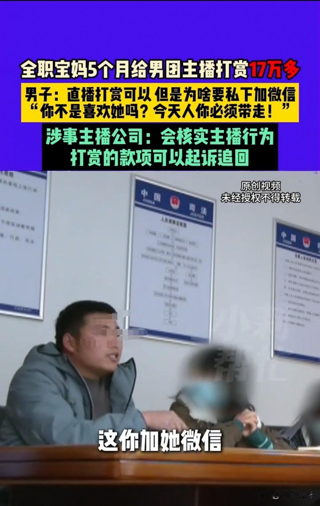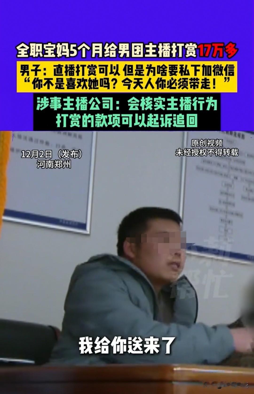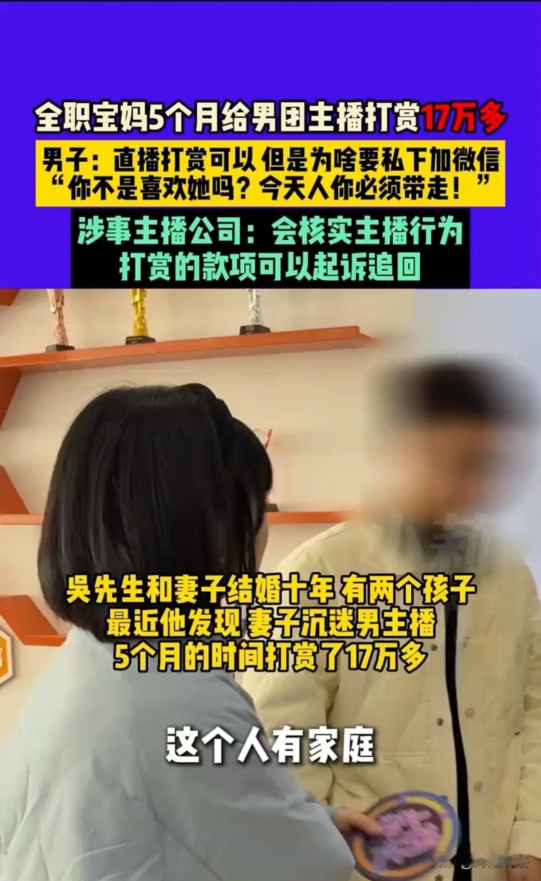 郑州,一位宝妈五个月内打赏主播17万,丈夫带着宝妈找到主播,语气强硬地要求对方将人领走,还称她打赏的钱是夫妻共同财产,她的那一半随便花,但我的那一半你必须还回来。他还补充道,你不是喜欢她吗?人已经给你带来了,今天必须给我带走。 一名男子是家里的顶梁柱——妻子为照顾两个孩子全职在家,全家生计全靠他在外打工支撑。为让妻子安心,他每月挣的钱都会尽数寄回家,只盼着妻子和孩子能安稳度日,自己心里也只装着这个家。 起初,妻子是个称职的管家:拿到钱后只用于日常开销,几乎从不乱花。男子每次回家,夫妻二人也总是温情脉脉。可这次归家,他却觉出妻子的不对劲——看他的眼神生疏了,言行也透着躲闪。 她是不是变心了?钱还在吗?男子心里犯起嘀咕,便以办事需用钱为由让妻子拿些钱,可妻子却连连推脱:存着打底不好吗?你拿它做什么? 这番说辞让男子疑心更重,他强硬要求妻子拿出存款,必须让我看看卡里有多少钱。妻子瞬间慌了神,反复辩解不会乱用,却始终不肯交底。男子敏锐地察觉到钱可能没了,硬要查银行卡余额——结果如他所料:卡里17万积蓄,一分不剩。 在追问下,妻子才坦白:钱全打赏给了一个男团主播,只因对方都是帅哥。 男子如遭雷击:自己起早贪黑挣的血汗钱,是为了养全家,妻子却为看帅哥掏空了积蓄。他当即找来记者,直奔涉事男团主播处,怒气冲冲地质问:你们打PK让她打赏、加油,到底什么目的? 他指着妻子对主播吼道:这钱是夫妻共同财产,她的那半爱怎么花怎么花,但我的一半必须还回来!你不是喜欢她吗?人我带来了,今天必须带走! 主播慌忙辩解:喜欢是粉丝对偶像的喜欢,不是你说的那种! 男子又逼问:打赏可以,你干嘛加她微信?主播称是感谢打赏才加联系方式,男子却冷笑:感谢就是让她叫你小宝、催她多打赏?你给她买项链又是什么意思? 主播被问得语塞,只说可以配合走法律程序退钱,但带走人是违法的,不能答应。男子却不松口:钱还我,人你也必须带走,我眼不见心不烦! 目前,涉事主播公司回应会核实主播行为,明确打赏款项可通过起诉追回。 1、宝马五个月内用夫妻共同财产打赏主播17万元,丈夫有权要求主播返还属于自己的那部分财产。 《民法典》第一千零六十二条、第一千零六十六条,夫妻对共同财产享有平等处理权,非因日常生活需要不得擅自处分;一方挥霍共同财产严重损害利益的,另一方可请求分割共同财产。 17万元远超家庭日常开支,宝妈擅自打赏属无权处分,且构成挥霍共同财产。丈夫有权主张打赏行为中涉及自己份额的部分无效,要求主播返还对应财产。 2、宝妈用夫妻共同财产大额打赏主播,即便主播与宝妈无不正当关系,该打赏行为在法律上也是无效的。 《民法典》第一百五十三条、第六百五十七条,赠与行为需不违背公序良俗,且夫妻一方擅自处分大额共同财产需经另一方同意。 打赏虽属赠与,但宝妈未经配偶同意处分大额共同财产,损害了配偶的平等处理权,该赠与行为对配偶不发生效力,主播需返还相应份额财产。 3、丈夫带着宝妈找到主播,要求主播将宝妈领走,该要求在法律上是没有依据的。 《民法典》第三条,民事主体的人身权利、财产权利以及其他合法权益受法律保护,任何组织或者个人不得侵犯。 人身权具有不可转让、不可强制支配的属性,丈夫要求主播“领走”宝妈的要求,侵犯了宝妈的人身自由和人格尊严,无任何法律依据,主播有权拒绝。 对于此事,大家如何看? 素材源于:河南民生频道2025年12月2日报道