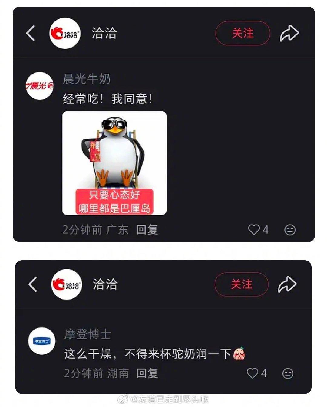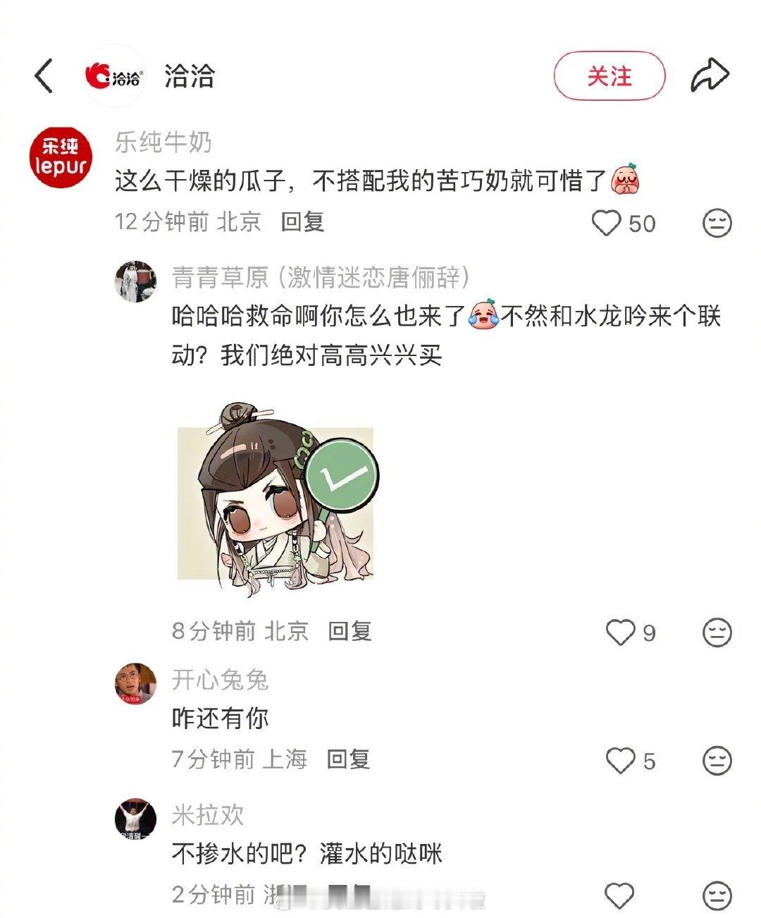 所以恰恰瓜子回复了一个“瓜紫”梗,评论区也有其他品牌的团建说不是故意的吧,又感觉语气不对,说是故意的,又说不出实际洽洽瓜子 洽洽瓜紫 洽洽瓜子疑似内涵杨紫 杨紫粉丝要求洽洽官方道歉