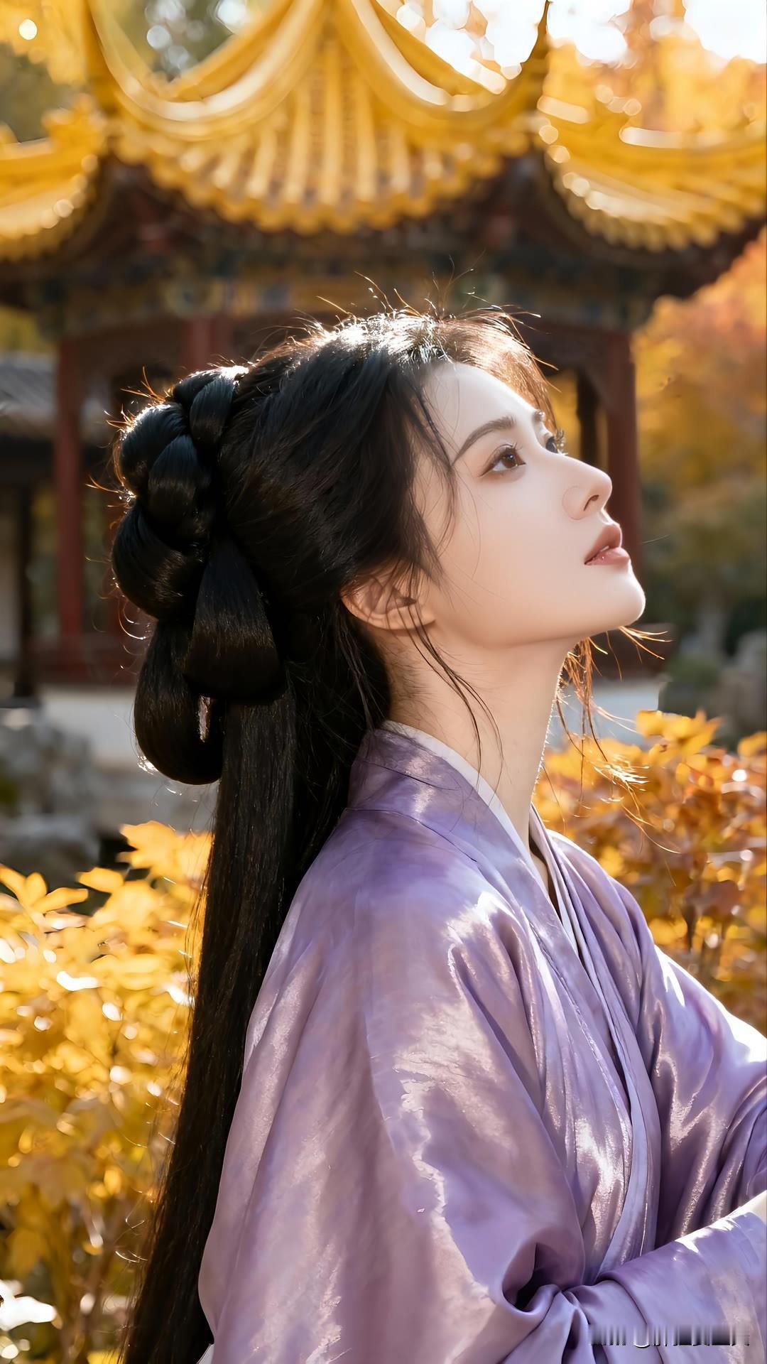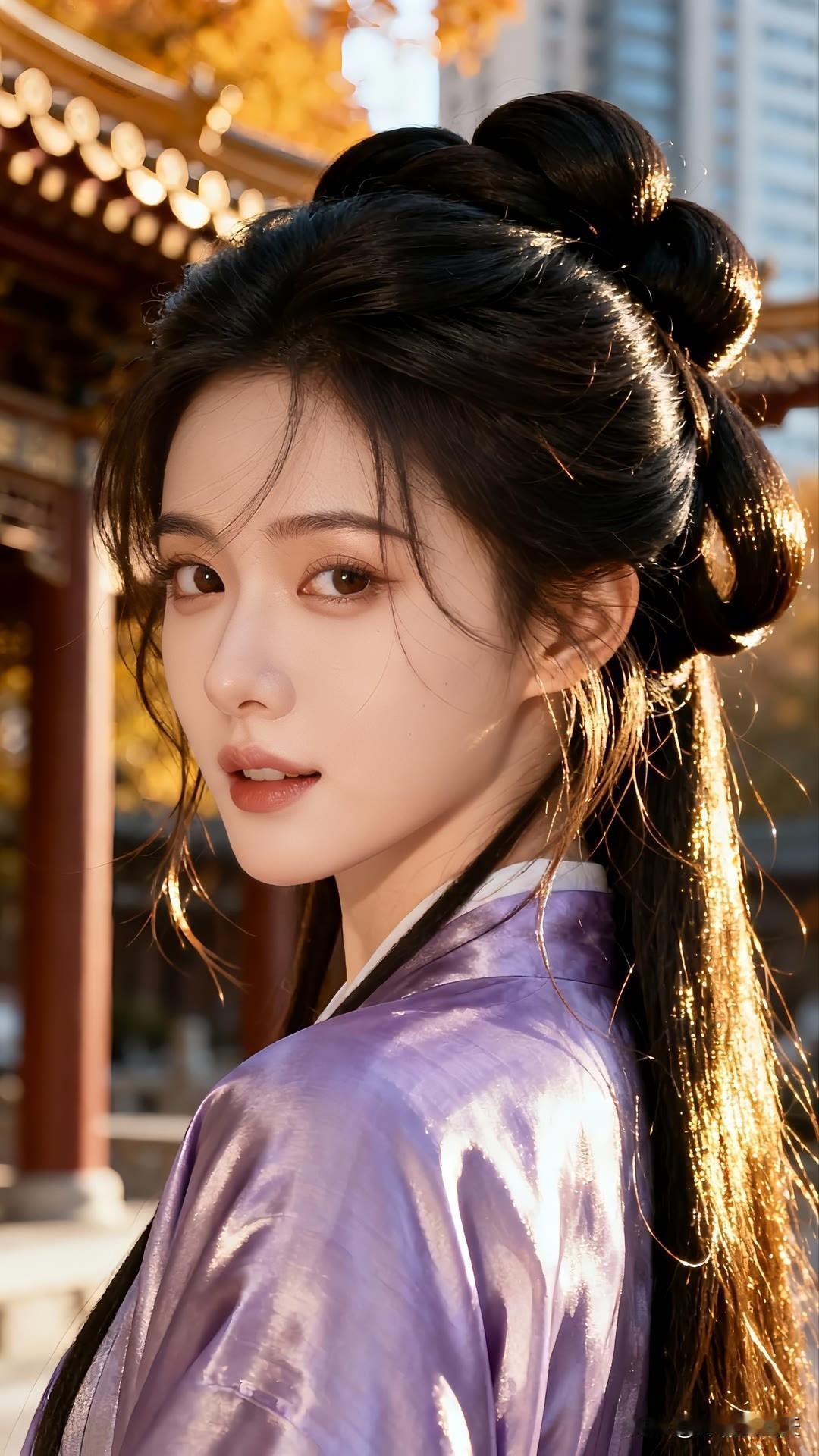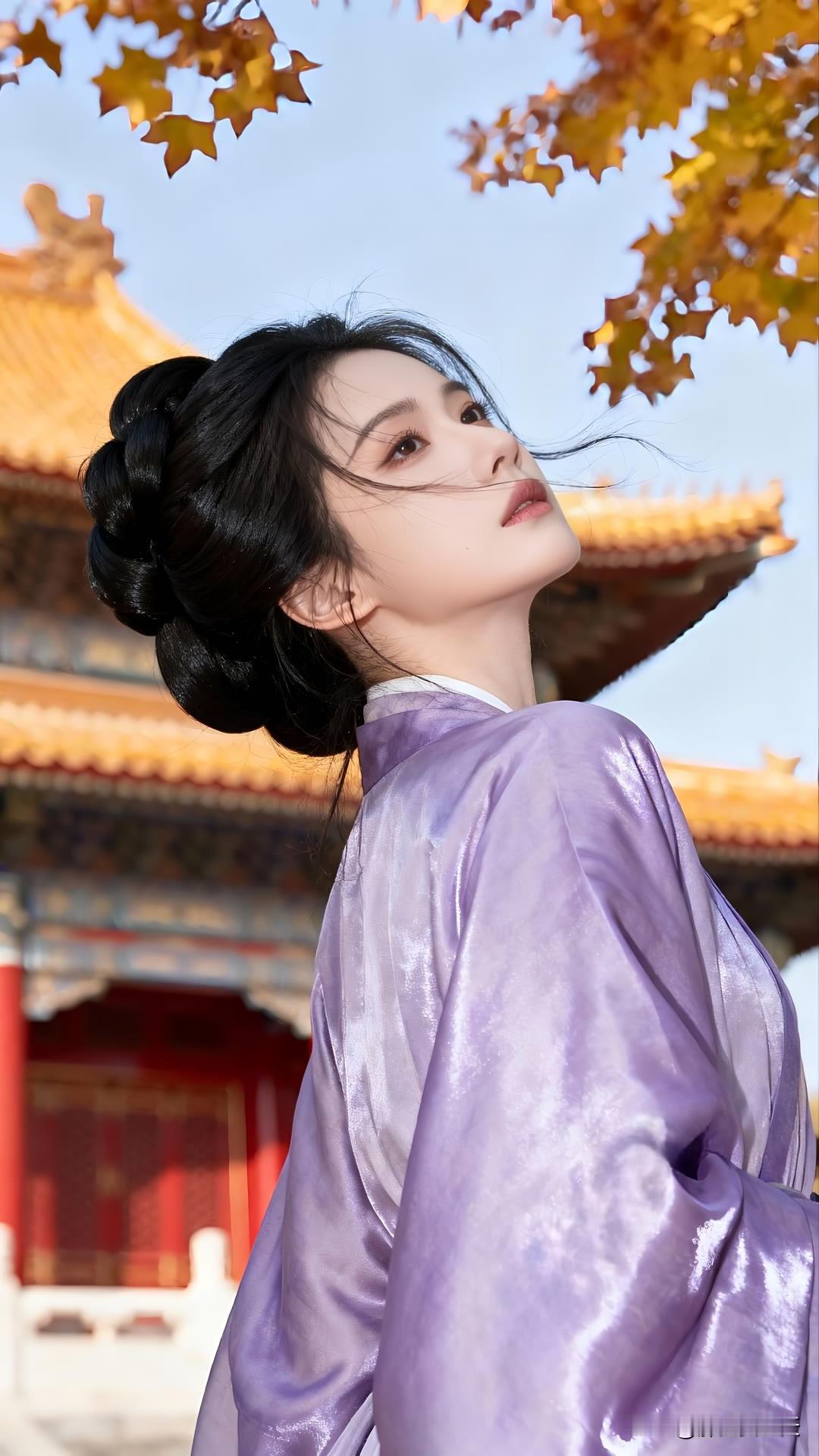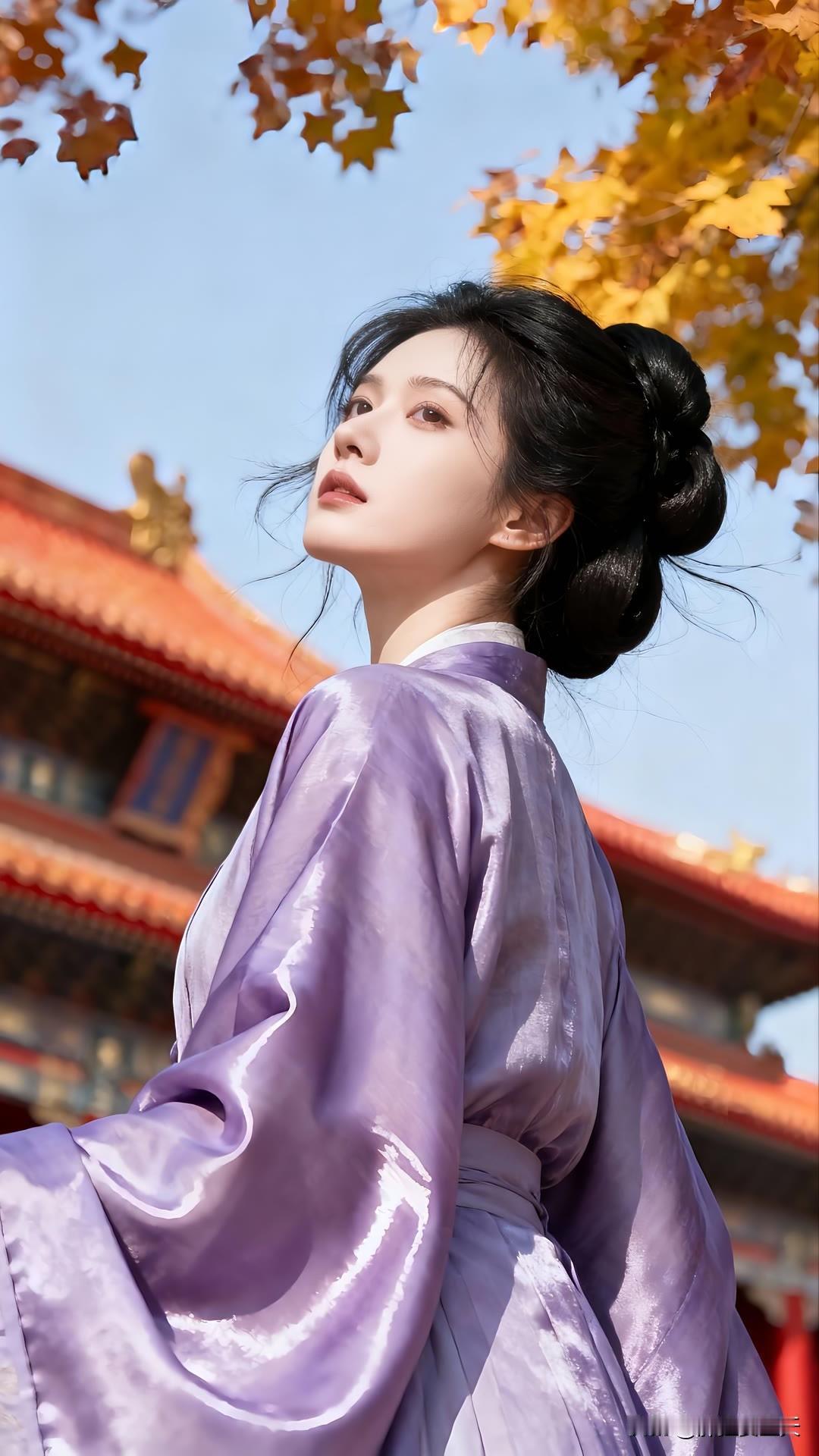 紫衣漫倚琉璃瓦,金檐斜照鬓边秋。 慵回眸处光阴缓,古今皆作画中游。 莫问尘心归何处,一身风露倚云柔。美女人像群