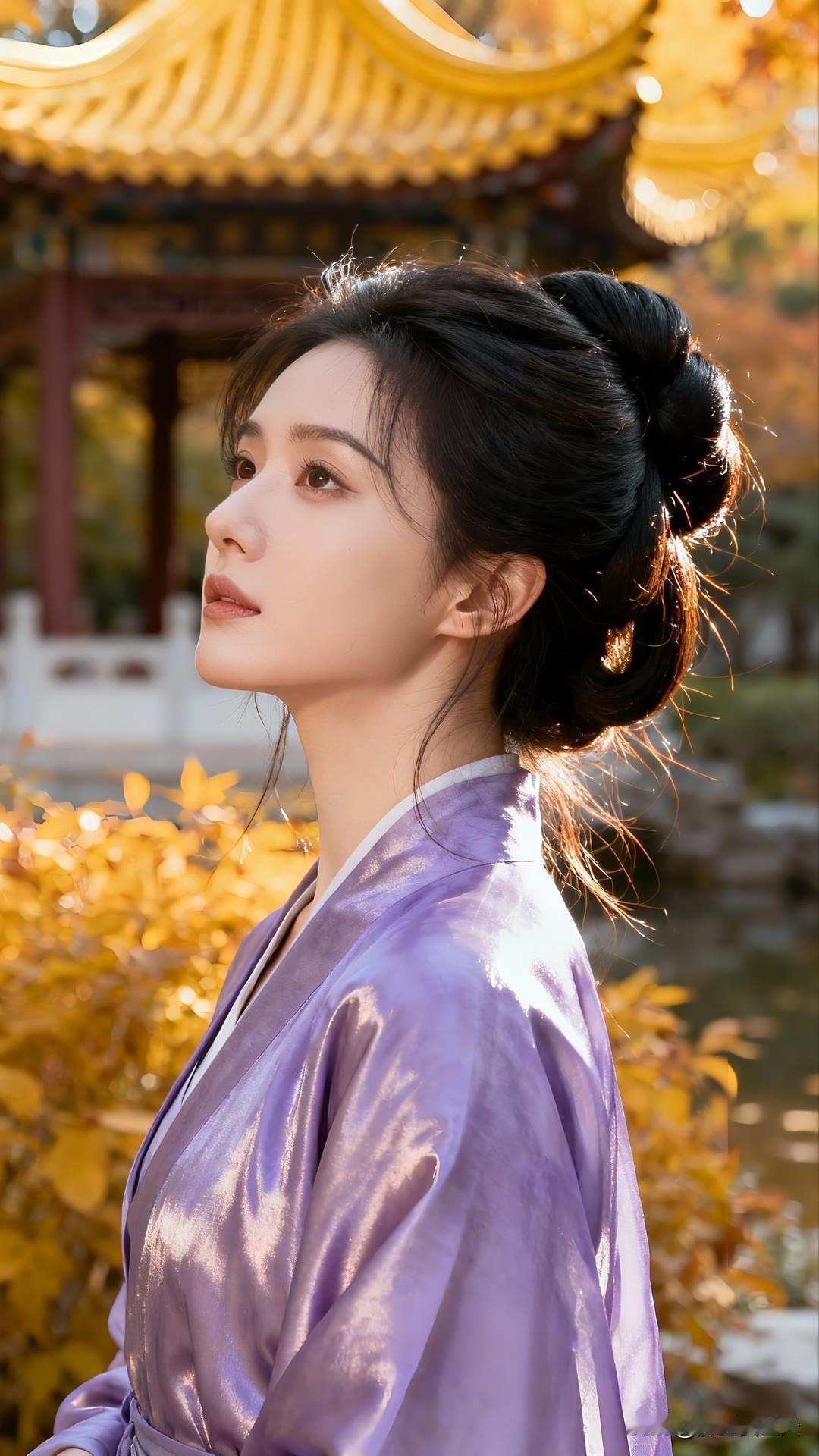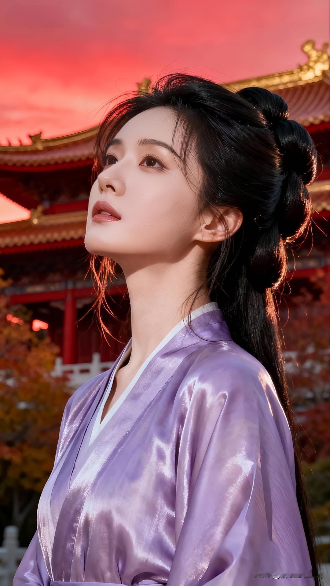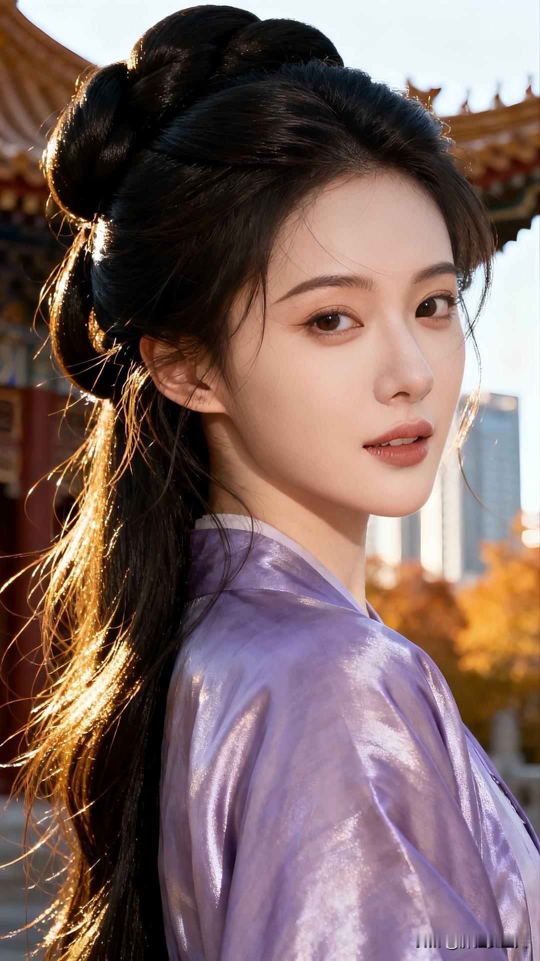 紫衣漫倚琉璃瓦,金檐斜照鬓边秋。 慵回眸处光阴缓,古今皆作画中游。 莫问尘心归何处,一身风露倚云柔。美女人像群