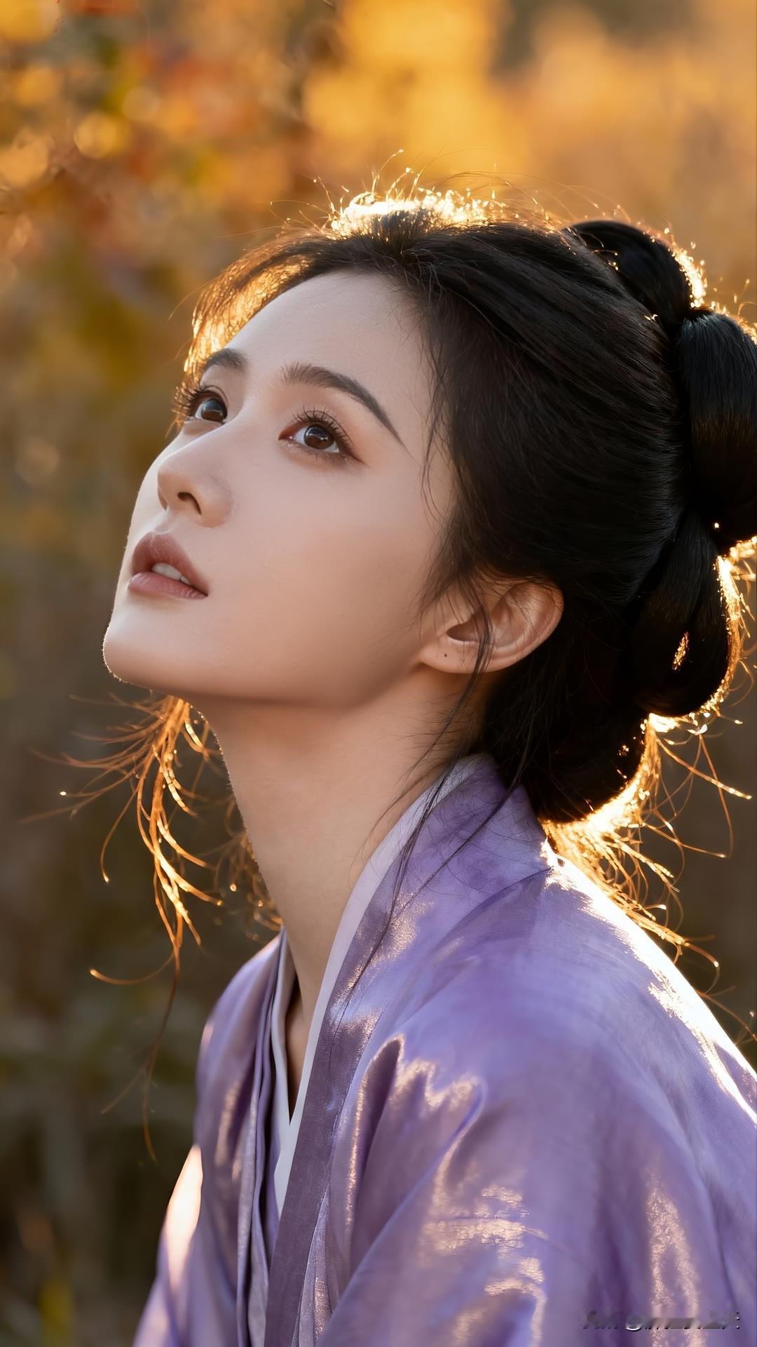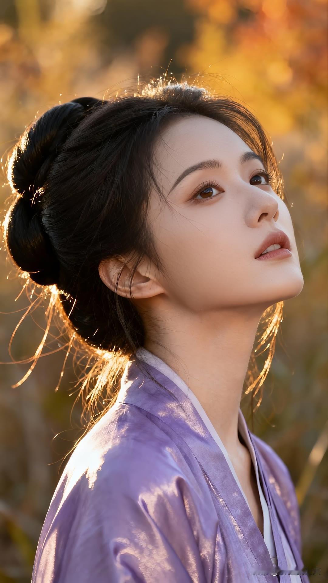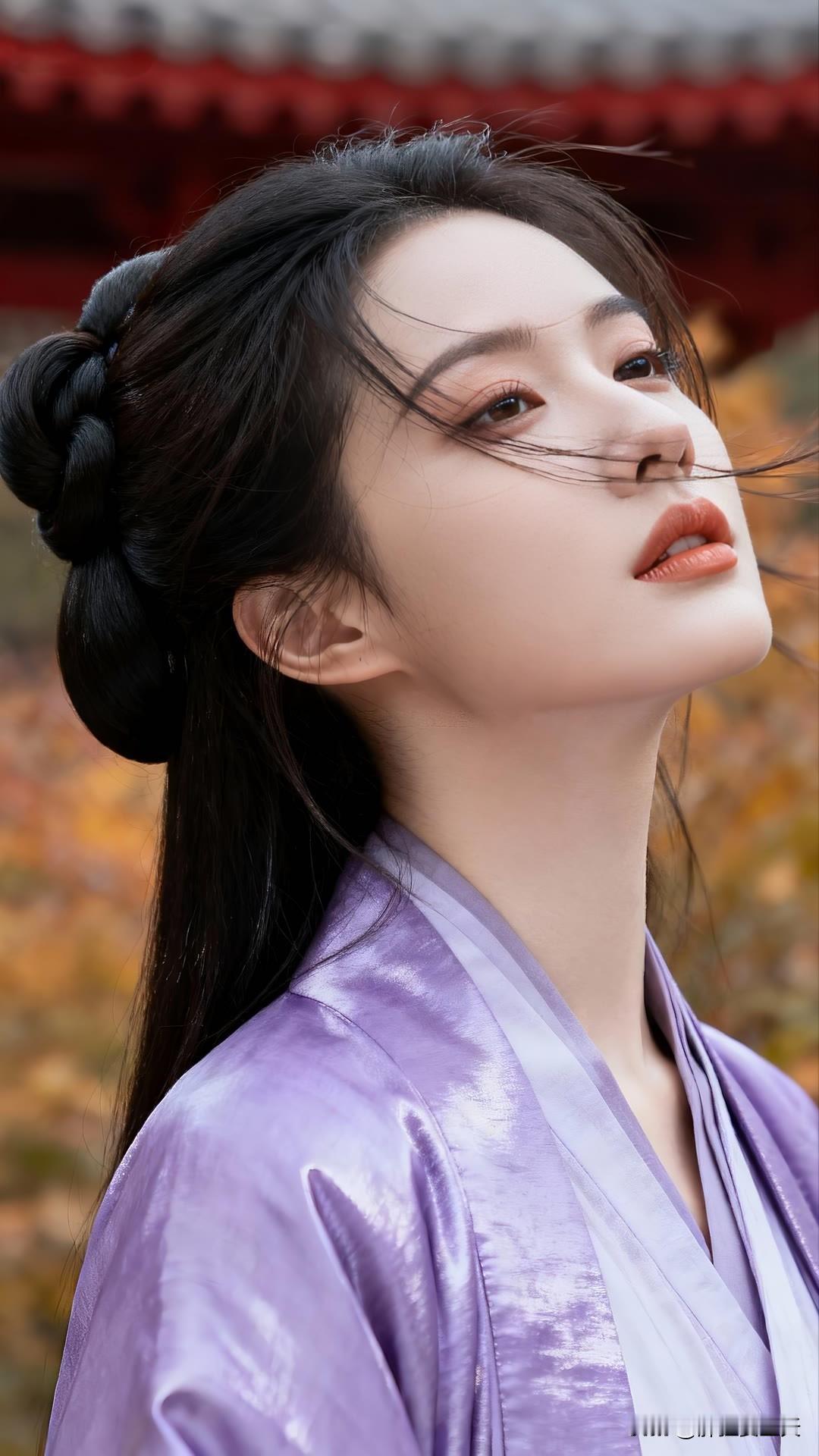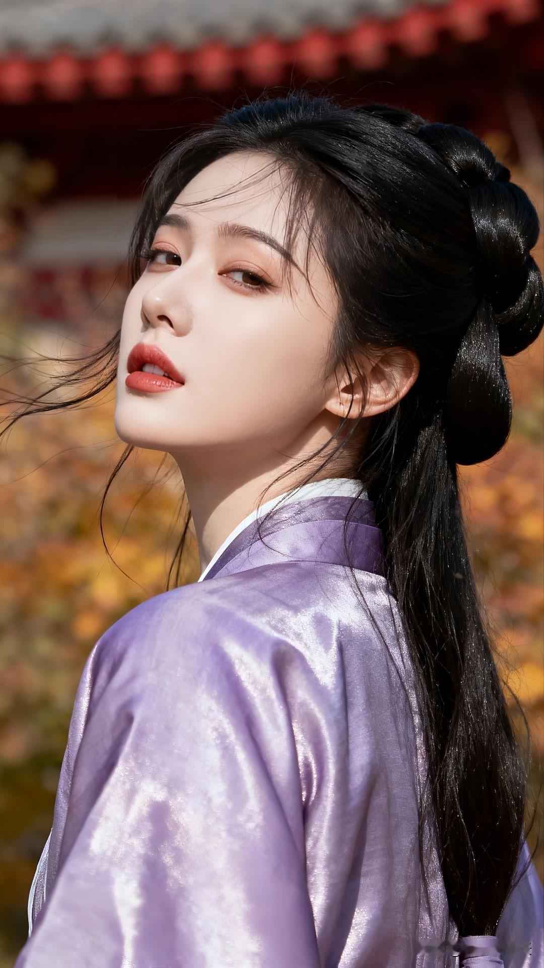 紫衣漫倚琉璃瓦,金檐斜照鬓边秋。 慵回眸处光阴缓,古今皆作画中游。 莫问尘心归何处,一身风露倚云柔。美女人像群