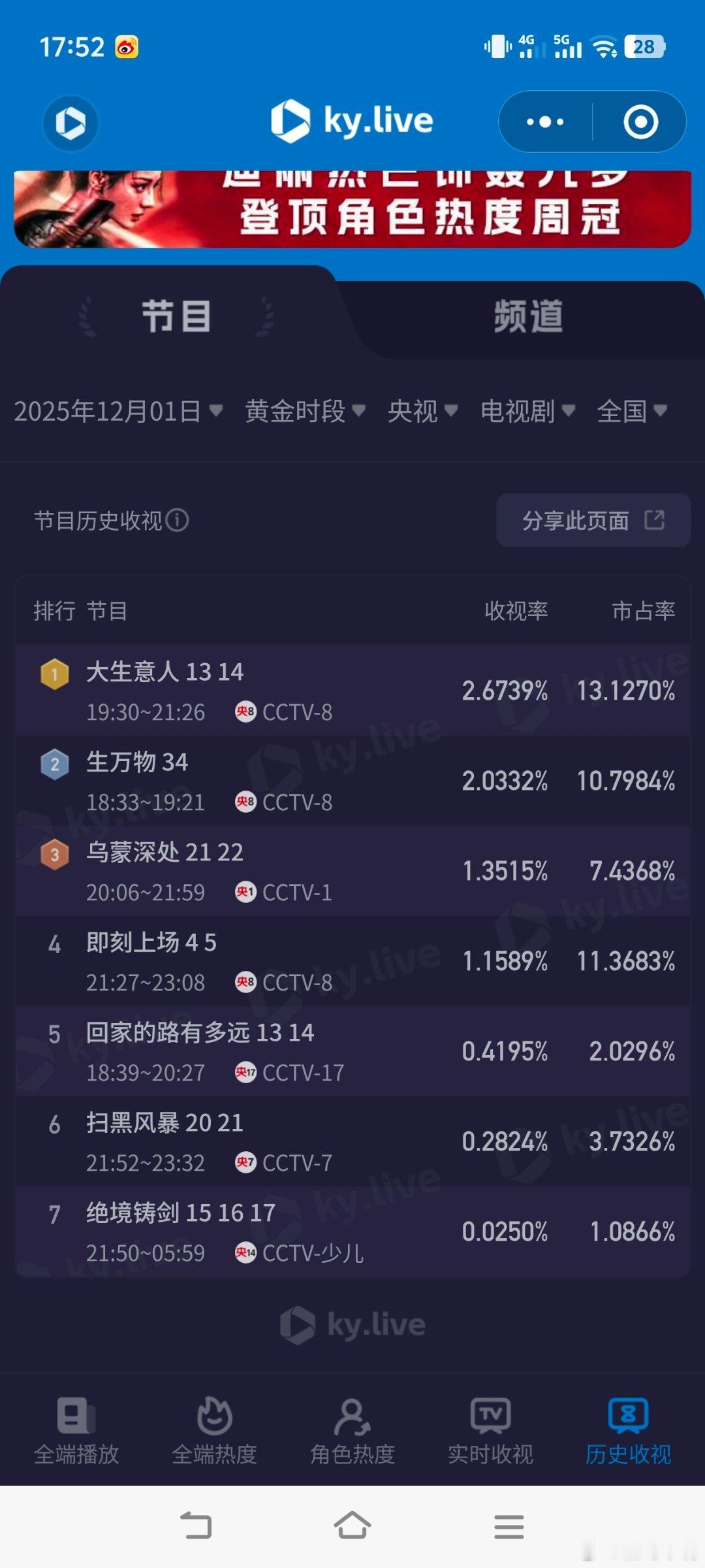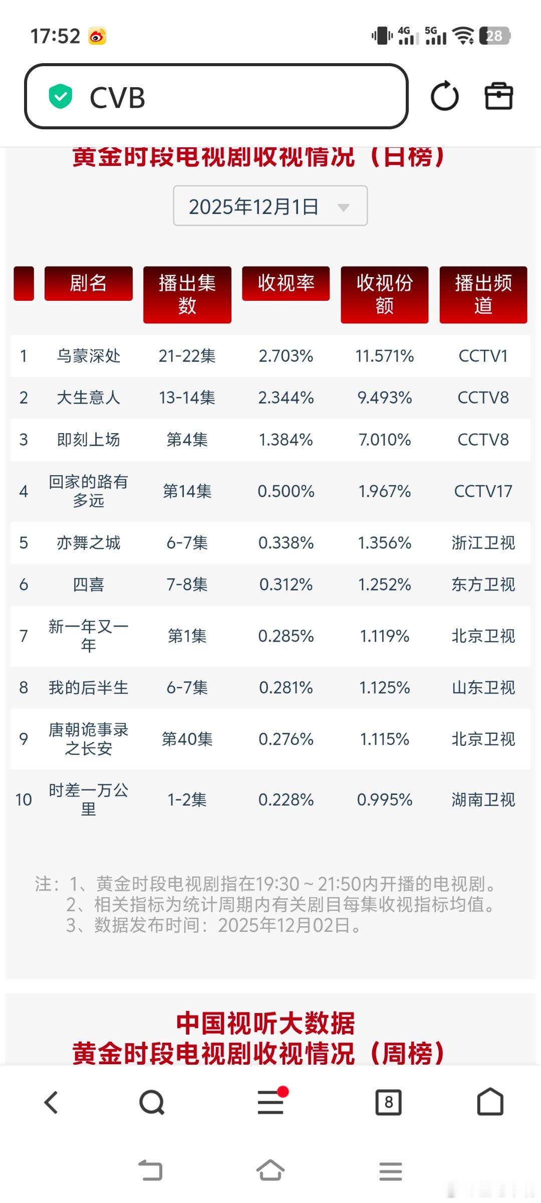 大生意人短剧无法替代的长剧12月1日cvb收视日报《大生意人》新高!乌蒙深处2.703,酷云1.3515,系数2.000大生意人2.344,酷云2.6739,系数0.877新一年又一年0.285,酷云0.2675,系数1.065时差一万公里0.228,酷云0.3078,系数0.741