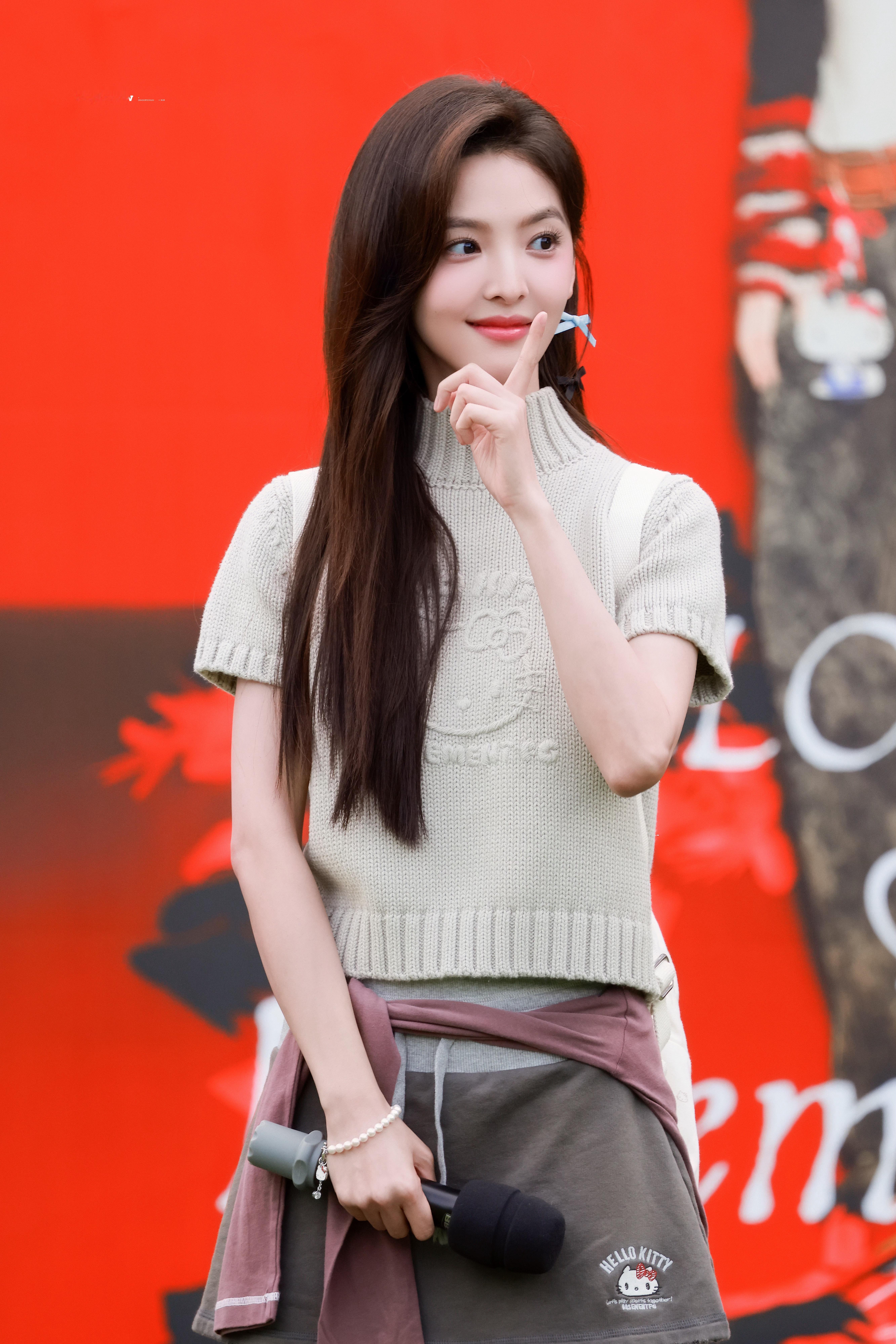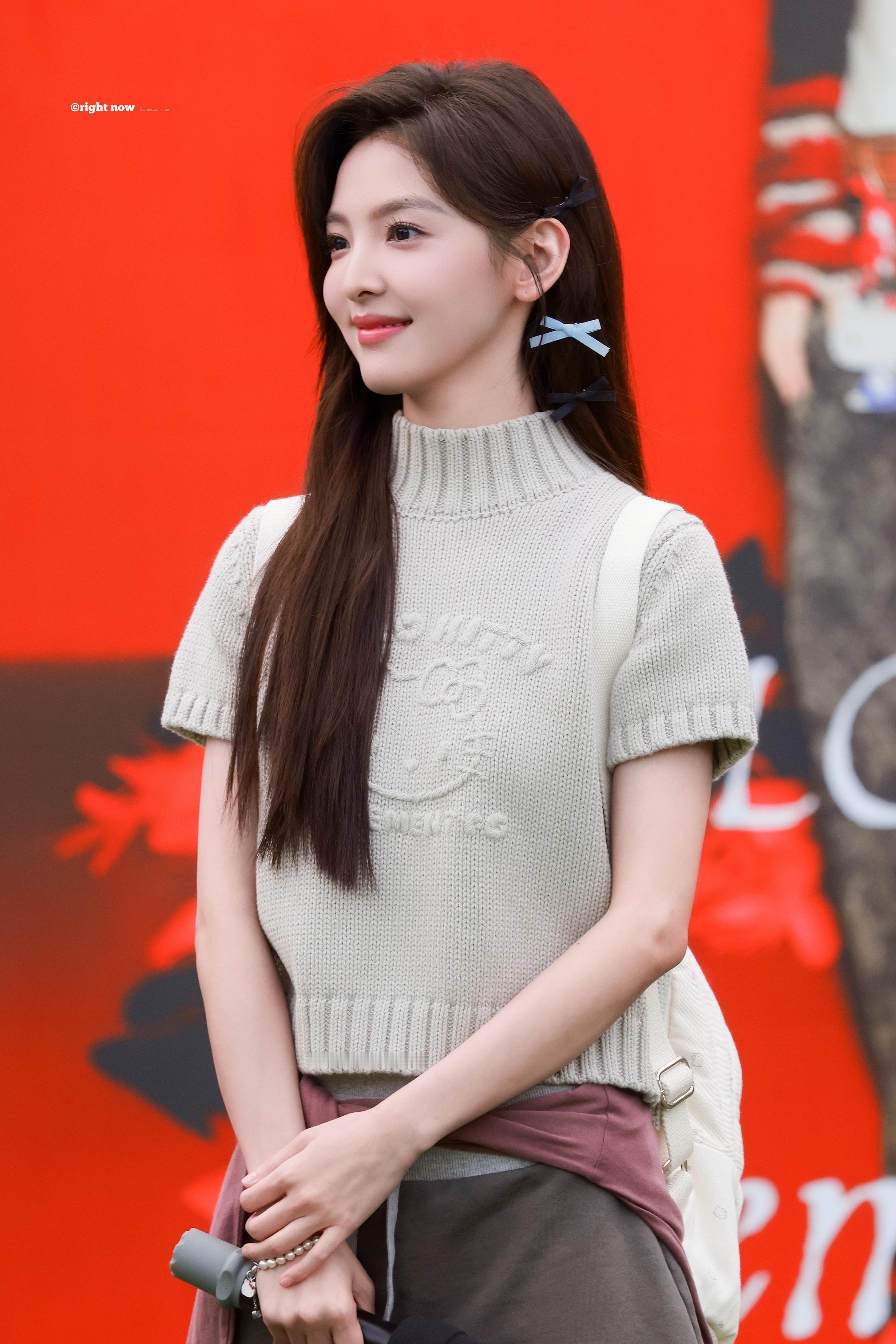 章若楠 浅针织裹着松弛的温柔,发梢的小蝴蝶结是藏不住的甜。