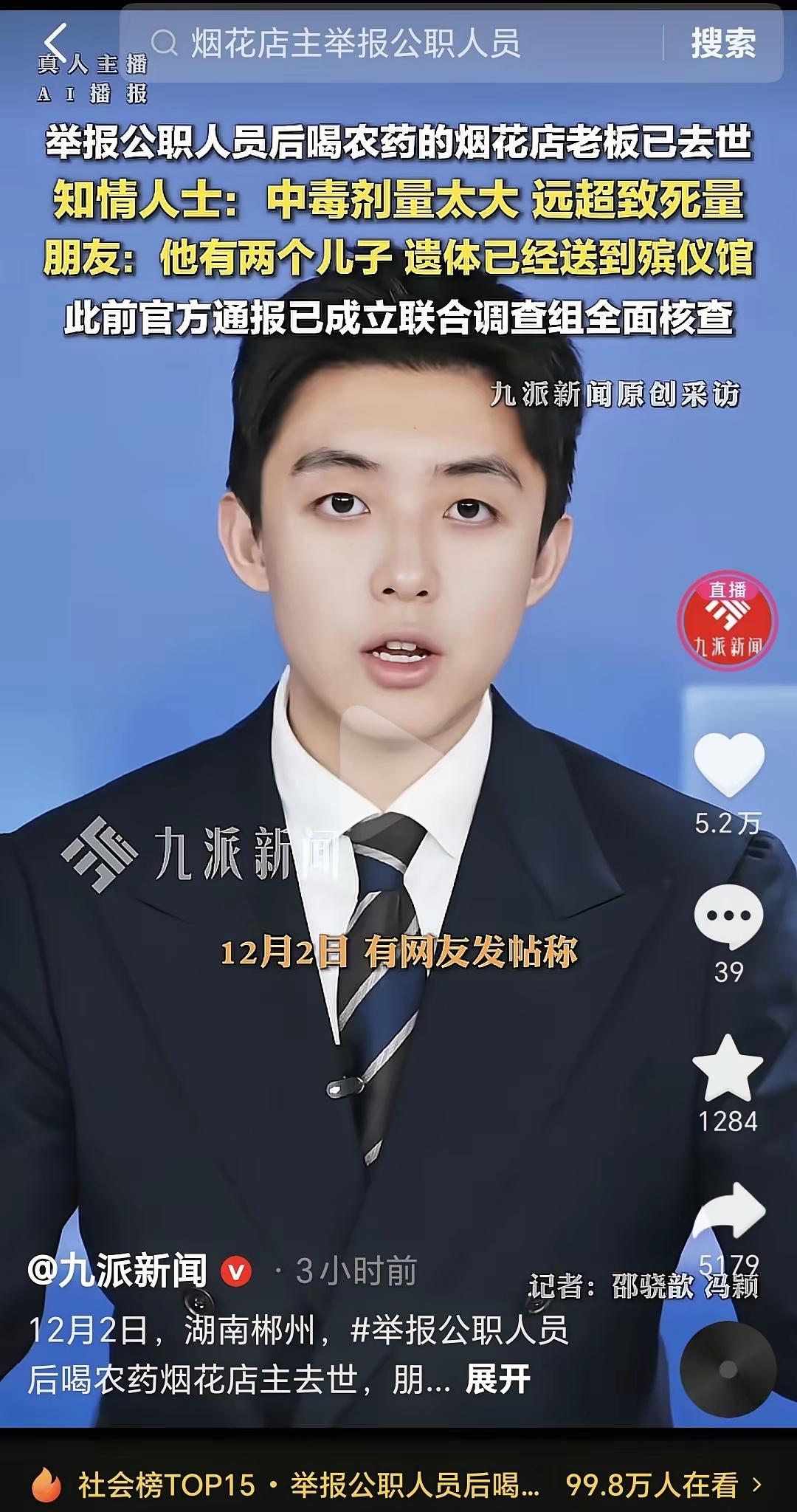 郴州一声巨响,炸碎了一个家。” 据九派新闻报道,12月2日,湖南郴州一烟花爆竹店店主彭某某不幸离世。知情人士称因中毒剂量远超致死量。事件还导致房屋损毁及三人受伤。 他才40岁,两个孩子一个上小学,一个读职中。妻子一夜之间扛起全家重担。他曾是踏实经商的小老板,却最终没能走出那扇门。 我们不该追问“为什么想不开”,而该问:“是什么压垮了他?” ——是行业监管的压力? ——是经营难以为继的焦虑? ——还是求助无门的心理困境? 不怕死的人,往往不是勇敢,而是看不到出路。 愿逝者安息,生者坚强。 也愿社会多一些心理干预机制,少一些“一个人扛下所有”的悲剧。 每一个平凡的父亲,都值得被看见、被支持。 郴州 社会热点 心理健康 中年危机 烟火人生 普通人的生活 微头条深度观察 你身边有没有默默硬撑的人?” 引导温暖留言