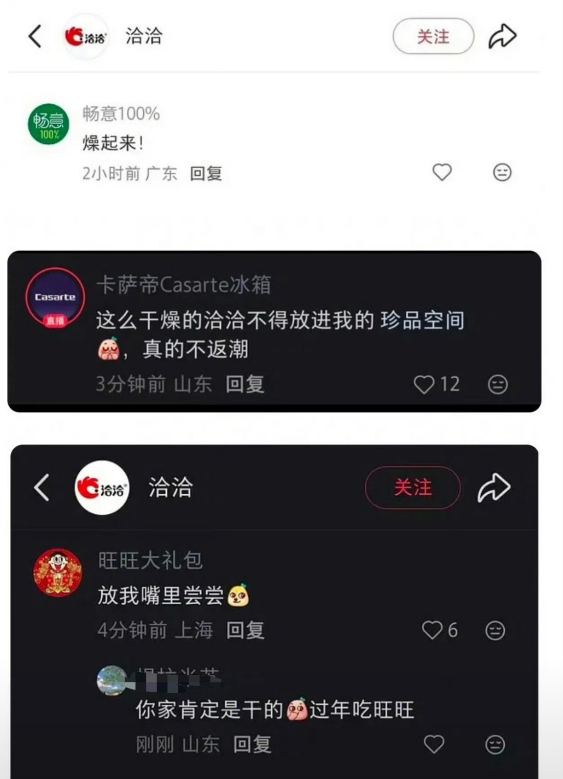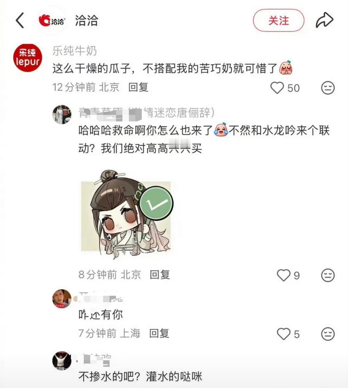 杨紫粉丝把官方冲了,说洽洽瓜子内涵杨紫(我们的瓜子没有多余水分)然后评论区各大知名品牌在评论区评论,好利来,乐纯,索芙特,畅意,旺旺等都来了。我紫这是怎么了。。