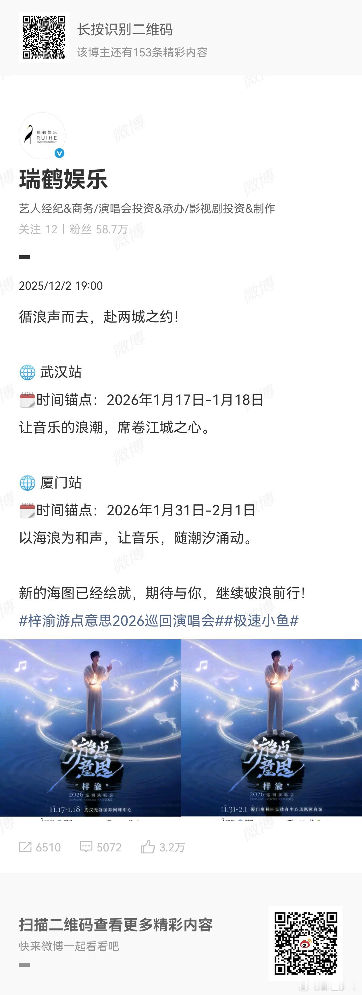 梓渝2026巡回演唱会三站官宣救命!梓渝【游点意思】巡回演唱会三站官宣也太惊喜了吧!南京、武汉、厦门挨个安排,不管是南方还是北方的粉丝都能就近赴约,这样的神仙偶像真的很难不爱,幸福感直接爆棚到原地转圈!