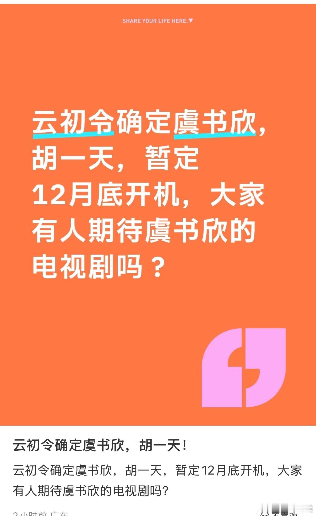 云初令确定虞书欣,胡一天?暂定12月底开机?真的假的?有人期待虞书欣的电视剧吗?