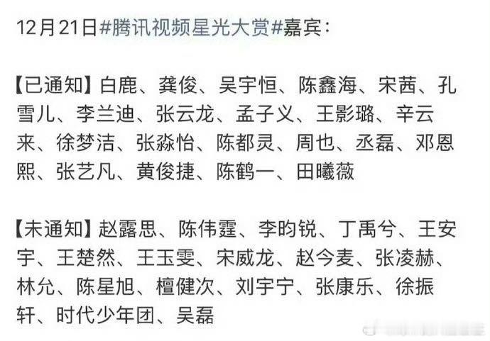 今年85🌸集体隐身赵露思白鹿带着95后扛大旗此外短剧演员也会参加今年的星光大赏VIP之星会是谁呢?星光大赏名单