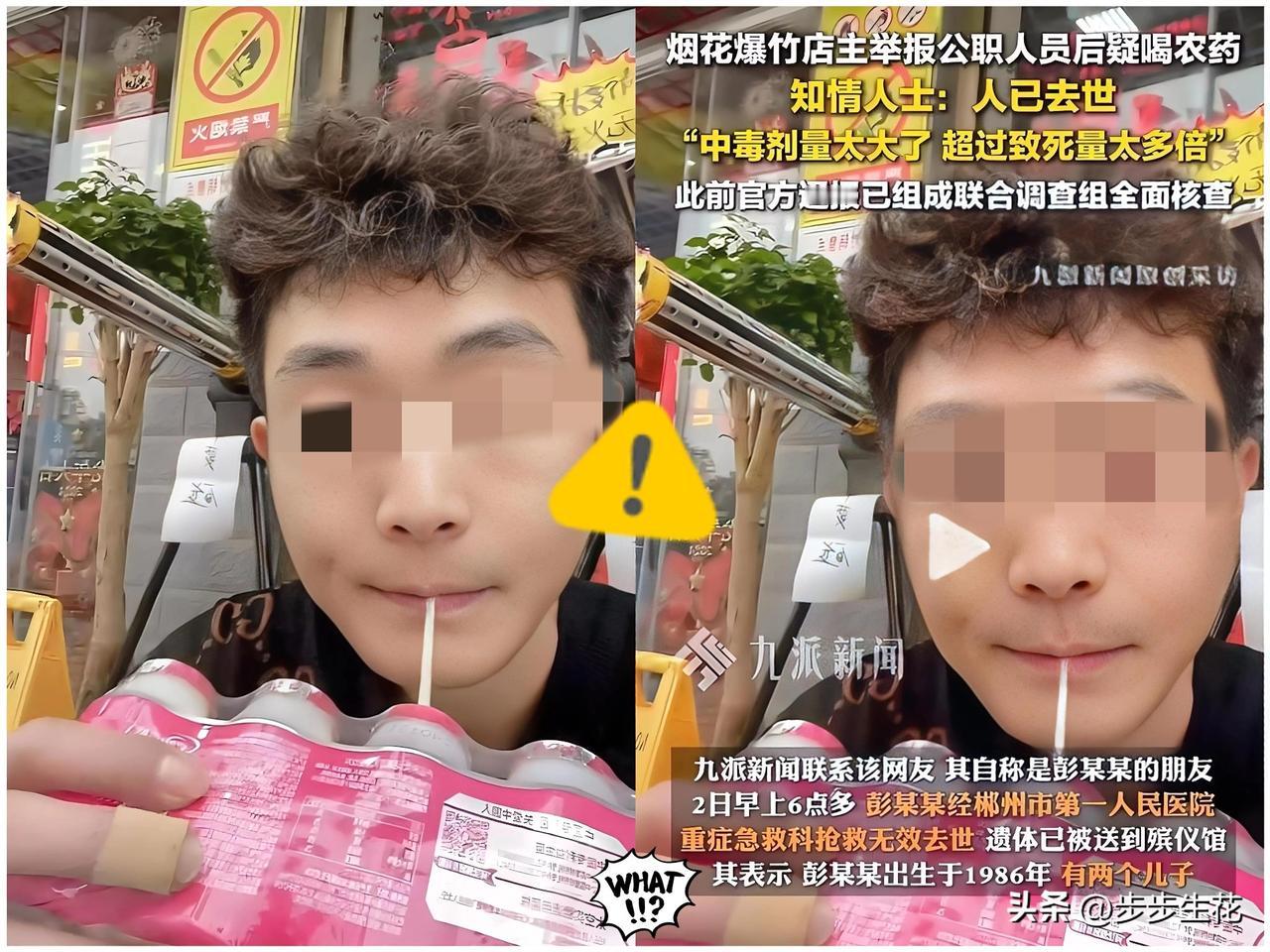 郴州烟花店老板悲剧 千万存货难销 门店燃爆后服药自尽,实名举报7名公职人员 千万烟花积压难售,最终酿成一场悲剧! 这事发生在湖南郴州市北湖区,当地勇鑫烟花零售店老板彭某某,因多次申请烟花爆竹经营许可证被拒,囤积的价值近千万元烟花始终无法正常销售。 2025年11月30日7时46分,彭某某留下遗言后,其经营的烟花零售店突发燃爆,事故造成3名人员轻伤,伤者已及时送医救治。 燃爆发生10分钟后,彭某某发布轻生视频,视频中他不仅喝下疑似“敌草快”的液体,还实名举报7名公职人员长期向其索要烟花和财物,同时提到自己的许可证申请因被指“与污染相关”,始终无法通过审批。 据了解彭某某因服药剂量远超致死量,最终因多脏器功能衰竭,于2025年12月2日6时许经郴州市第一人民医院抢救无效宣告死亡。 目前该事件的最新进展是,彭某某的遗体已送往殡仪馆,郴州市已成立联合调查组,对其举报的公职人员违规问题展开全面核查,并承诺一经查实将依法严肃处理。 网友热评:这年头,囤这么多烟花,太不明智了,一天一个样,一句禁止放烟花,你就等着亏。 还有网友说:听说办这证都会被卡 没那么容易 懂得都懂 友友你们怎么看?欢迎评论区留言讨论 (信息来源:北湖区应急局官方通报、大河网、每日经济新闻)