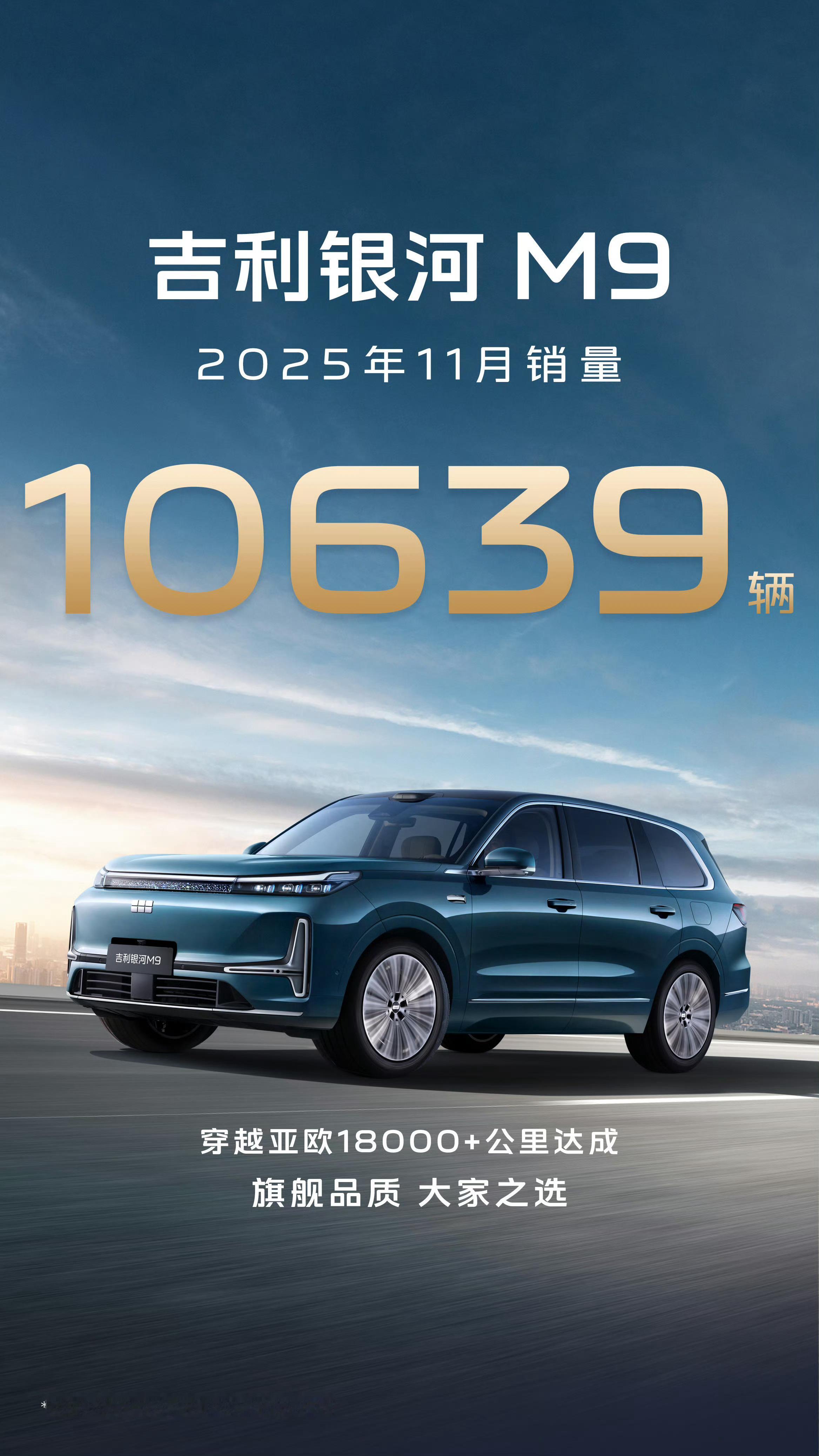 年底想买大六座的朋友们注意啦!银河M9在11月销量10639辆,连续月销破万!最近还整了跨越亚欧12国长测挑战,18000公里连测30天,状态依旧稳定😆“百万之后,初心不改”这句话听起来像口号,但放在吉利银河身上,是先存个档说到底,银河M9能火,是因为它真的准确抓住了中国家庭的核心需求:大空间、高安全、有智能、性价比高!所以销量能爆,不是偶然,是必然 吉利高管称百万银河只是起点
