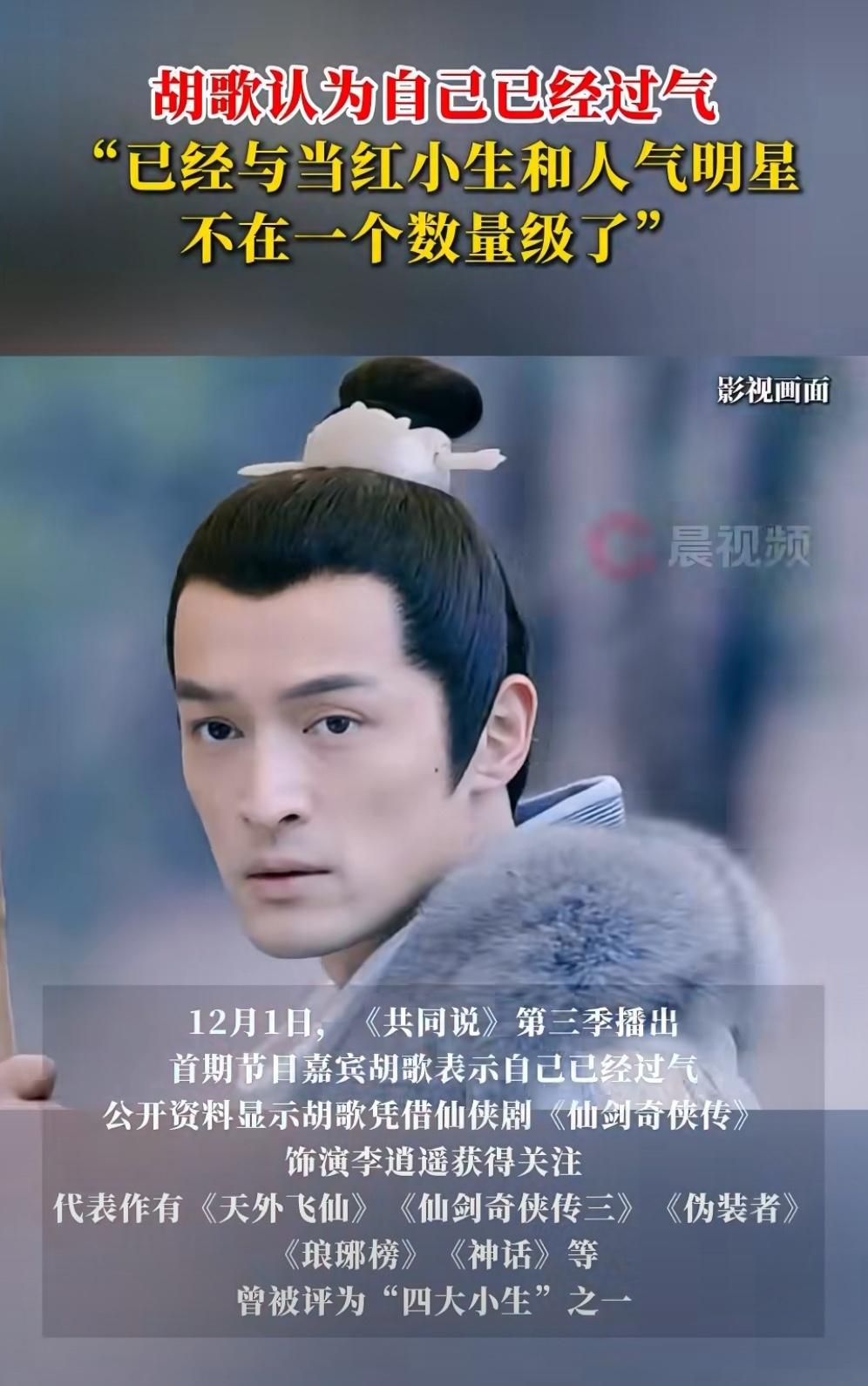 胡歌一句“和当红小生差了几个数量级”,不是自轻自贱,而是清醒的自我认知。 他早已跳出流量游戏的规则,二十年前《仙剑》系列的国民度,十年前《琅琊榜》与《伪装者》的步步为营,到这两年用《繁花》《张居正》这样的作品证明演员的价值,不在热搜排名,而在角色深度。 42岁的他,把家庭藏在镜头外,把生命反思融入表演,不追曝光,只求本心。这种选择,不是“过气”,而是主动撕掉标签,专注演员的本分。 娱乐圈最缺的,正是这份坦诚与勇气。胡歌的“不过气”,恰恰是找到了真正的立足点,用作品说话,用生命沉淀。这样的演员,永远有观众。