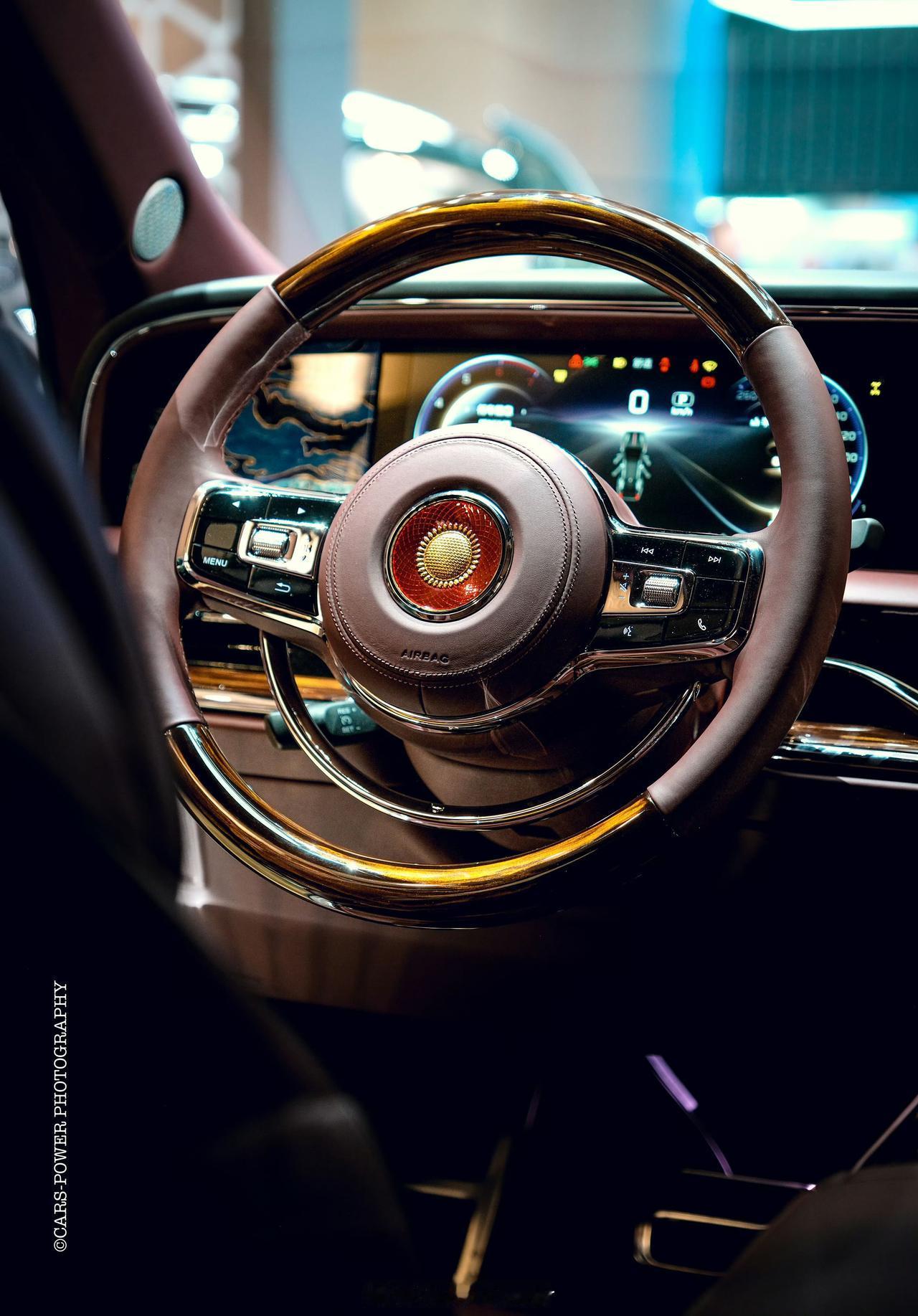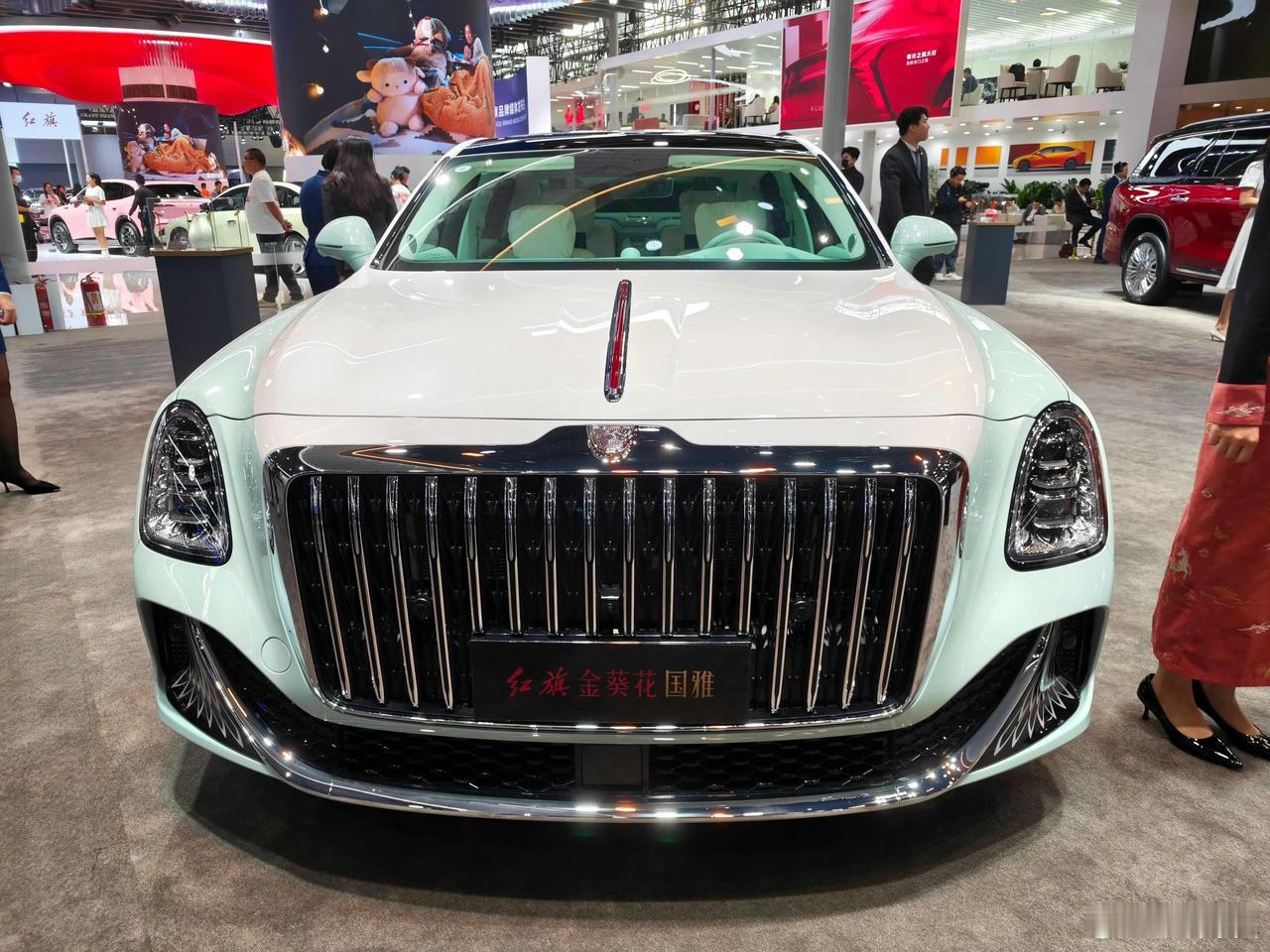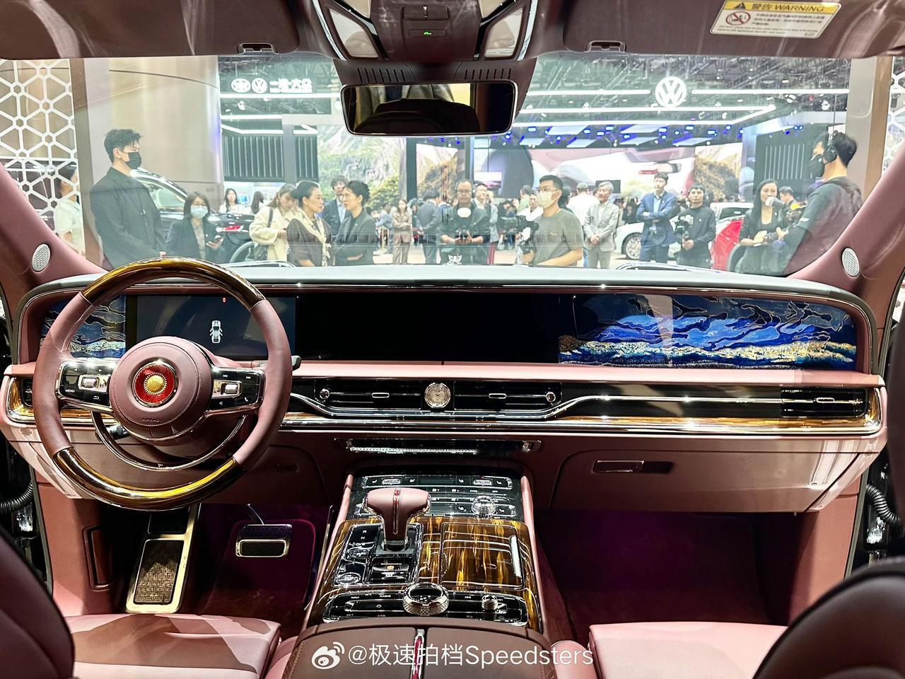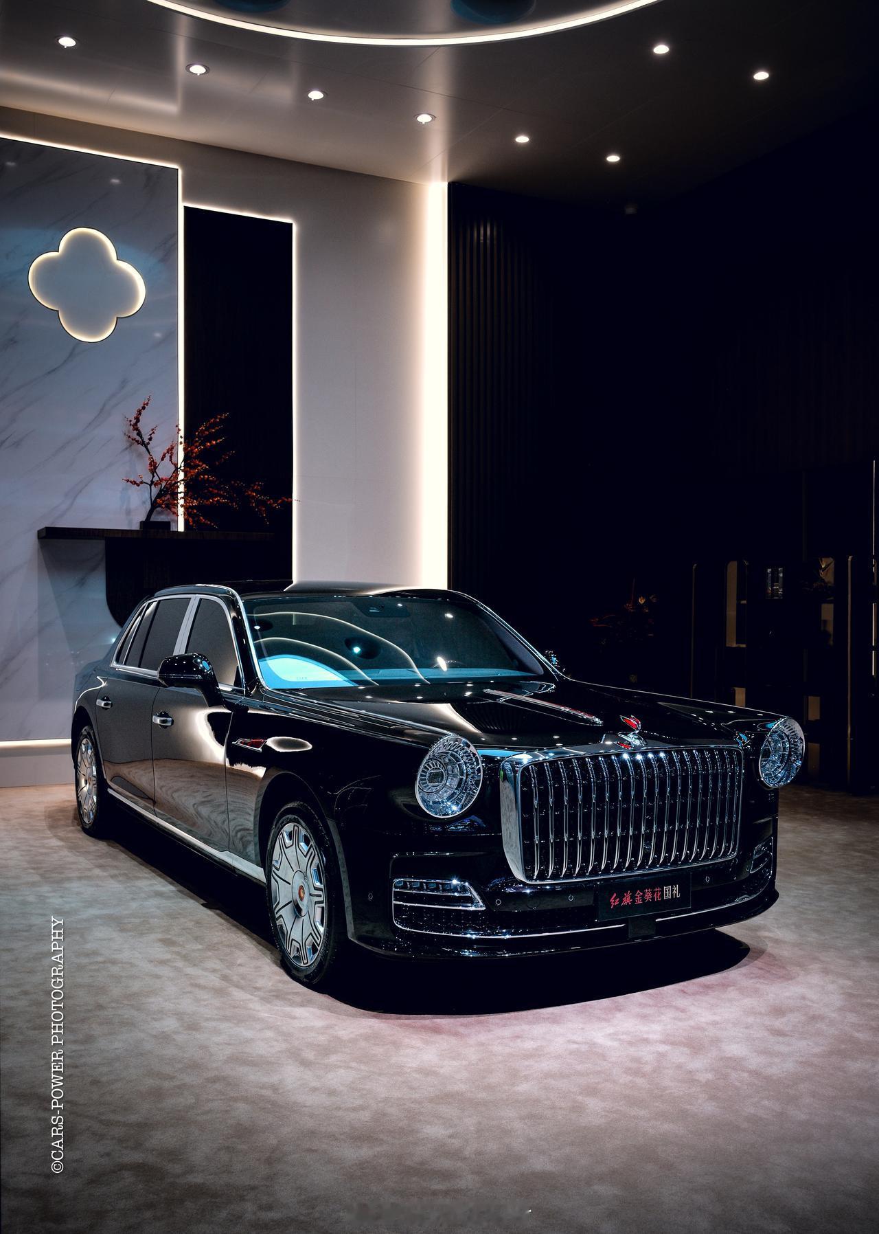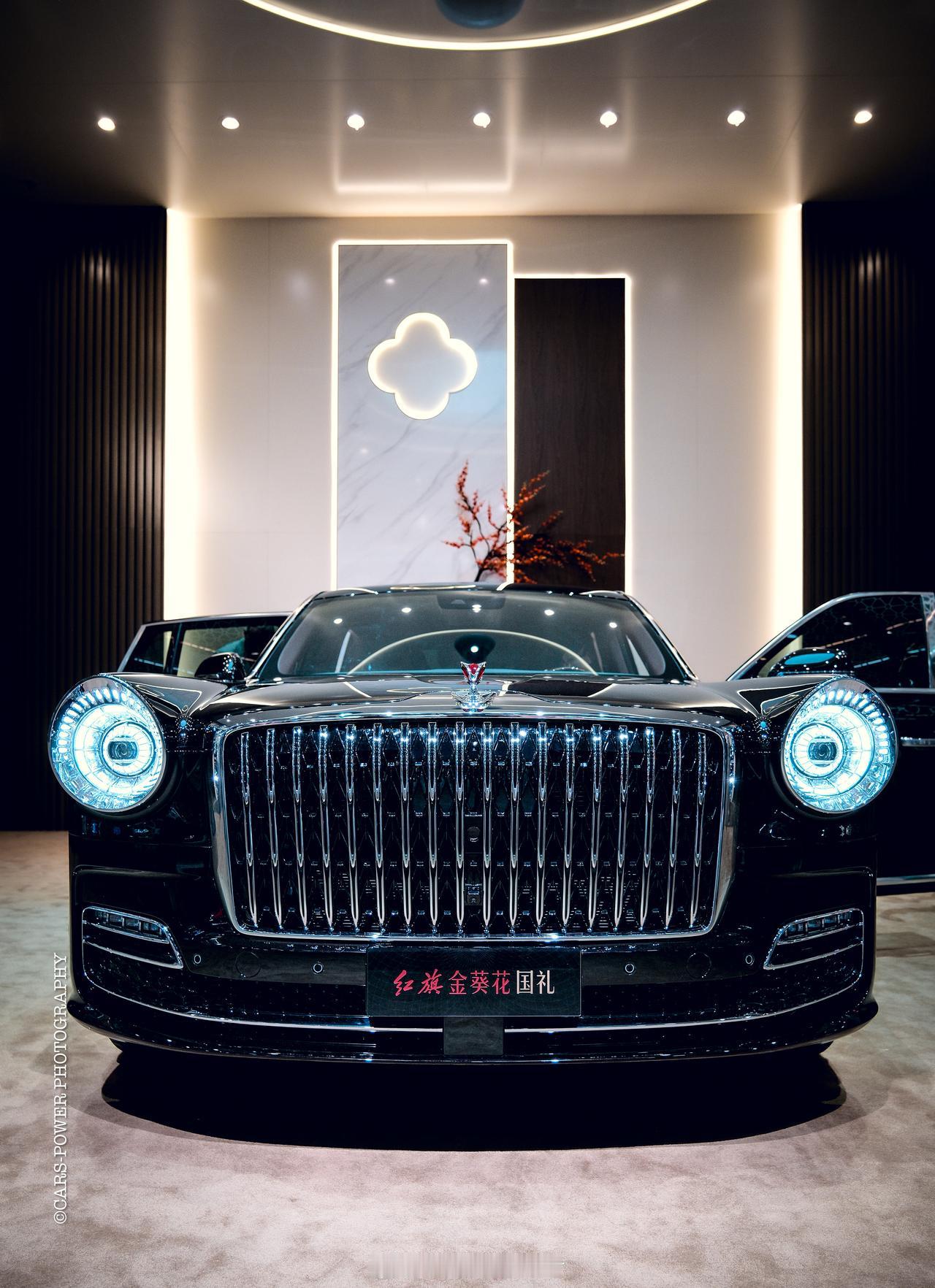 在广州车展上,要说最能镇住场子的,还得是红旗金葵花国礼。这台车就是你在电视上看到的那种“专属座驾”的民用版,气场这块,真的是拿捏得死死的。 车身长度5.98米,轴距3.73米,这两个数字一出,就让它瞬间跟其他所有轿车拉开了距离。天圆地方的厚重造型,加上源自天坛祈年殿藻井设计的灿若星辰大灯,往那一停,感觉就是为了直接开到机场红毯边准备的。 内饰更是把中式奢华玩明白了。棕红色主调、实木、羊毛地毯自不必说,最绝的是车内用上了传统大漆工艺——光饰板制作就要耗时三个月。 这才是真正的奢华,用顶级材料和极致时间,为你打造一个移动的华夏客厅。如果说劳斯莱斯是西方贵族的象征,那这台车,就是东方气度的极致呈现了。