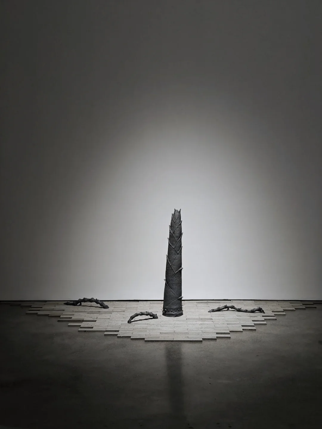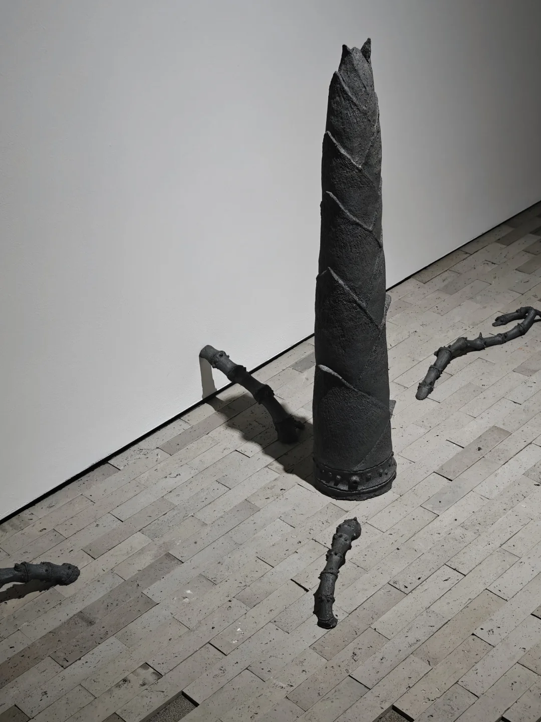 雕塑作品以小龙虾、罗非鱼、福寿螺、竹子等入侵生物为原型,模拟它们被迁徙至异地后无视规则的生长。这些“异质生命”在生态语法外建立短暂繁荣,直至人类介入设限。