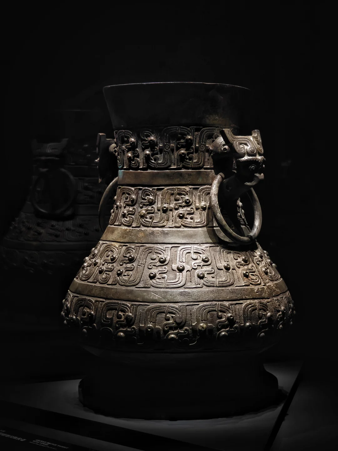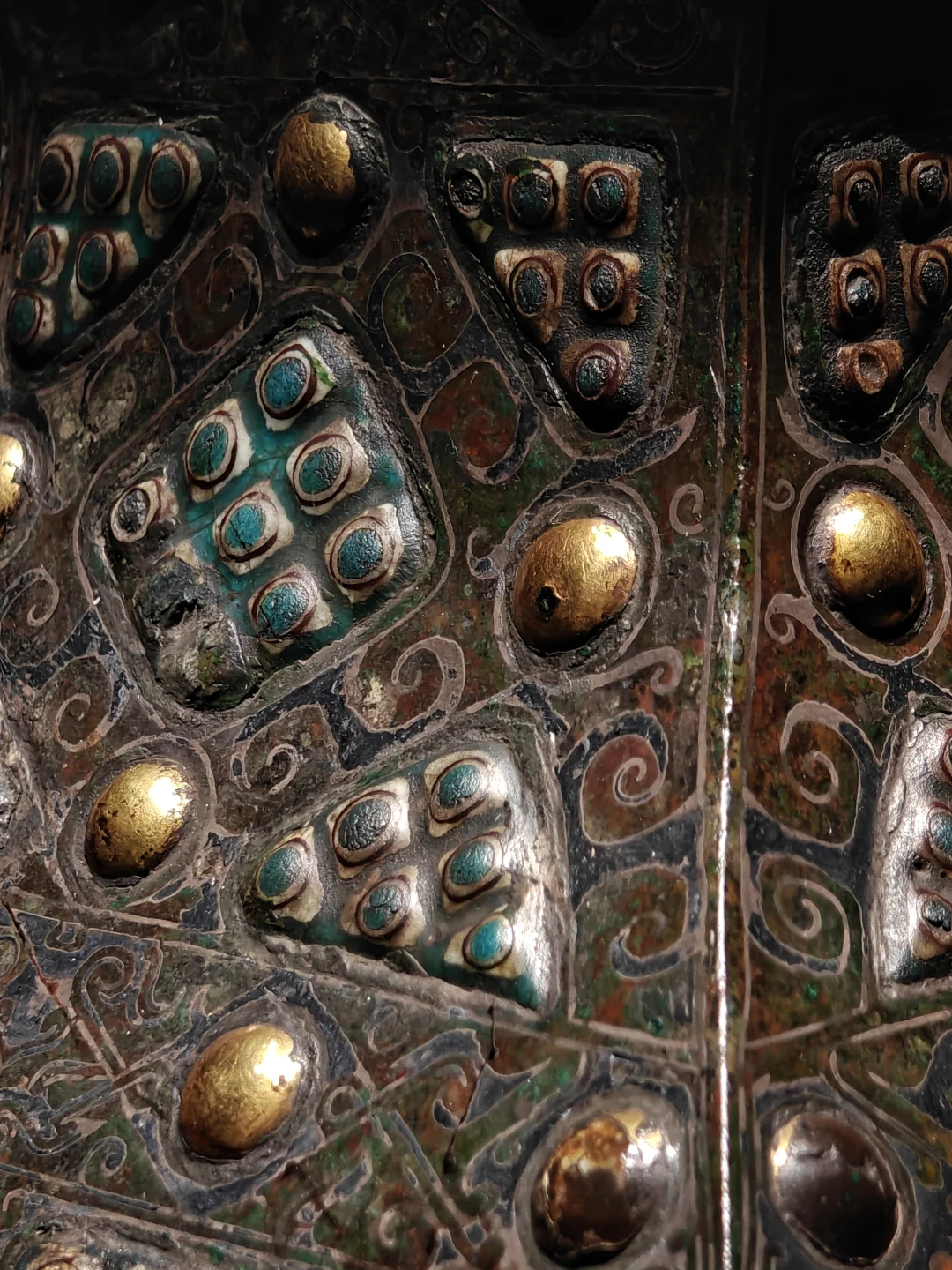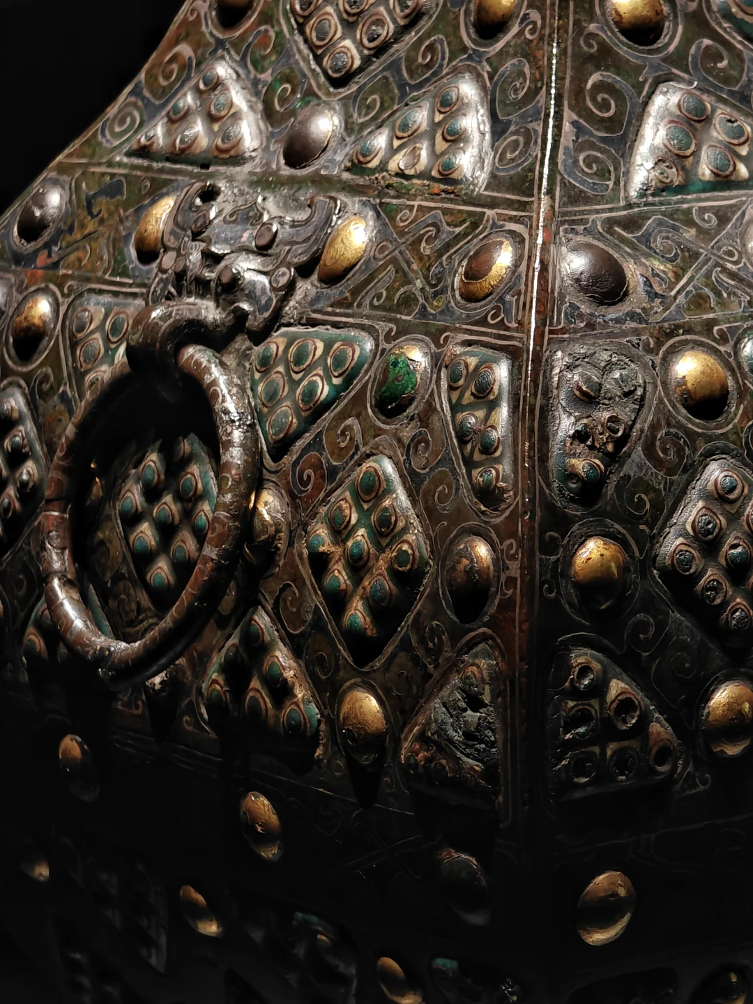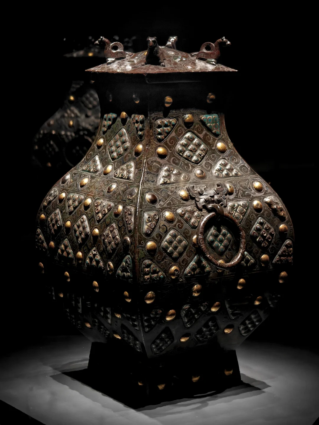 🔸战国 青铜错金银嵌琉璃乳钉纹方壶