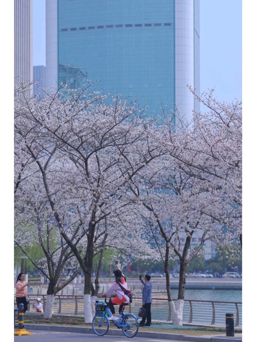 摩登建筑搭配古典樱花,自带电影感,充满人文气息