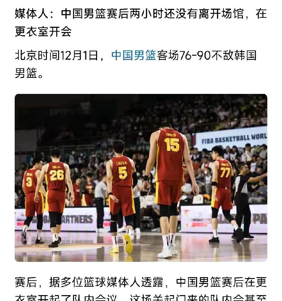 关起门开了两个小时的会议!我想这是中国男篮需要面对和解决的问题! 世预赛中国男篮两连败,第二场比赛赛后,中国男篮在更衣室开了两个多小时的会议! 确实,像杜峰杜指导赛后说的那样,中国男篮两次惨败韩国不是中国男篮的真实水平和实力,中国男篮的小伙子们还是要振作起来!