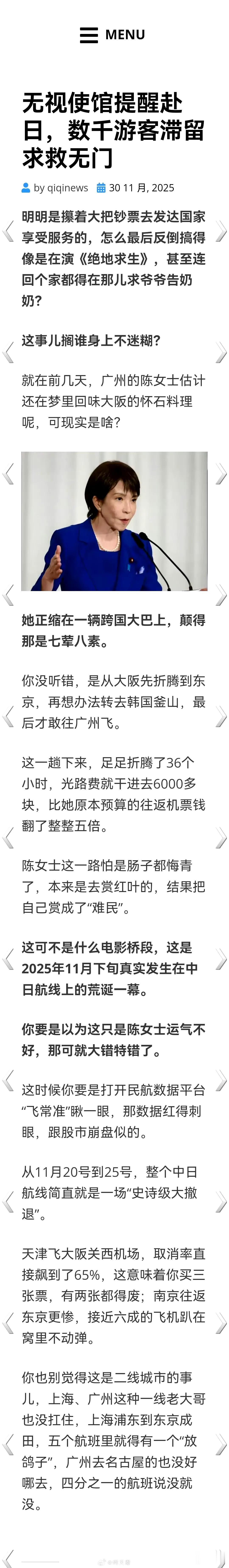 那么热爱日本,在其首相妄言"台湾有事就是日本有事″后,不顾政府提醒,非要去日本旅游,骨子里是"精日″,离"汉奸″不远了。