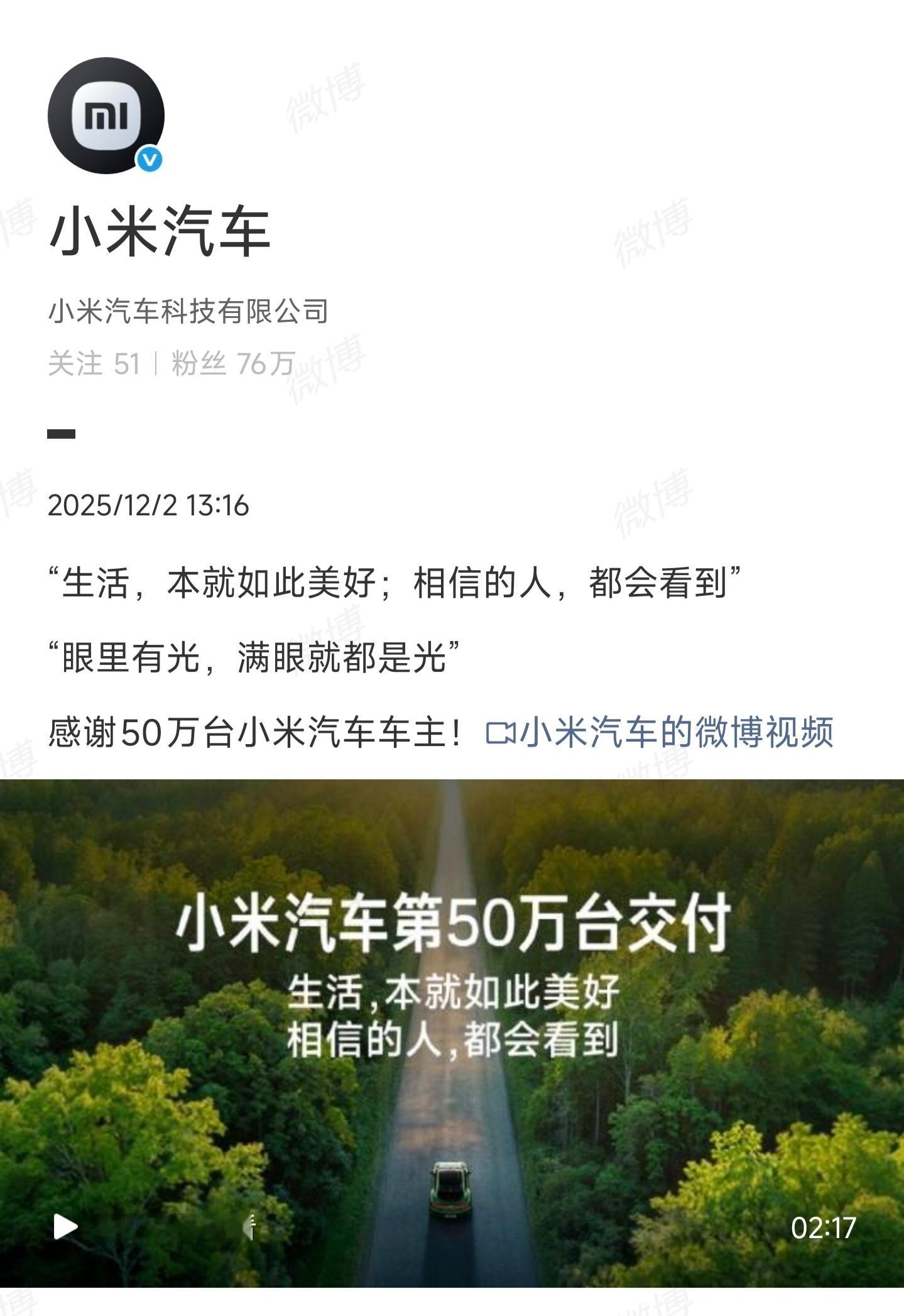小米汽车这个视频拍的真不错~素材全部来自于车主,生活化的场景,很接地气、很暖心「生活,本就如此美好相信的人,都会看到」真好
