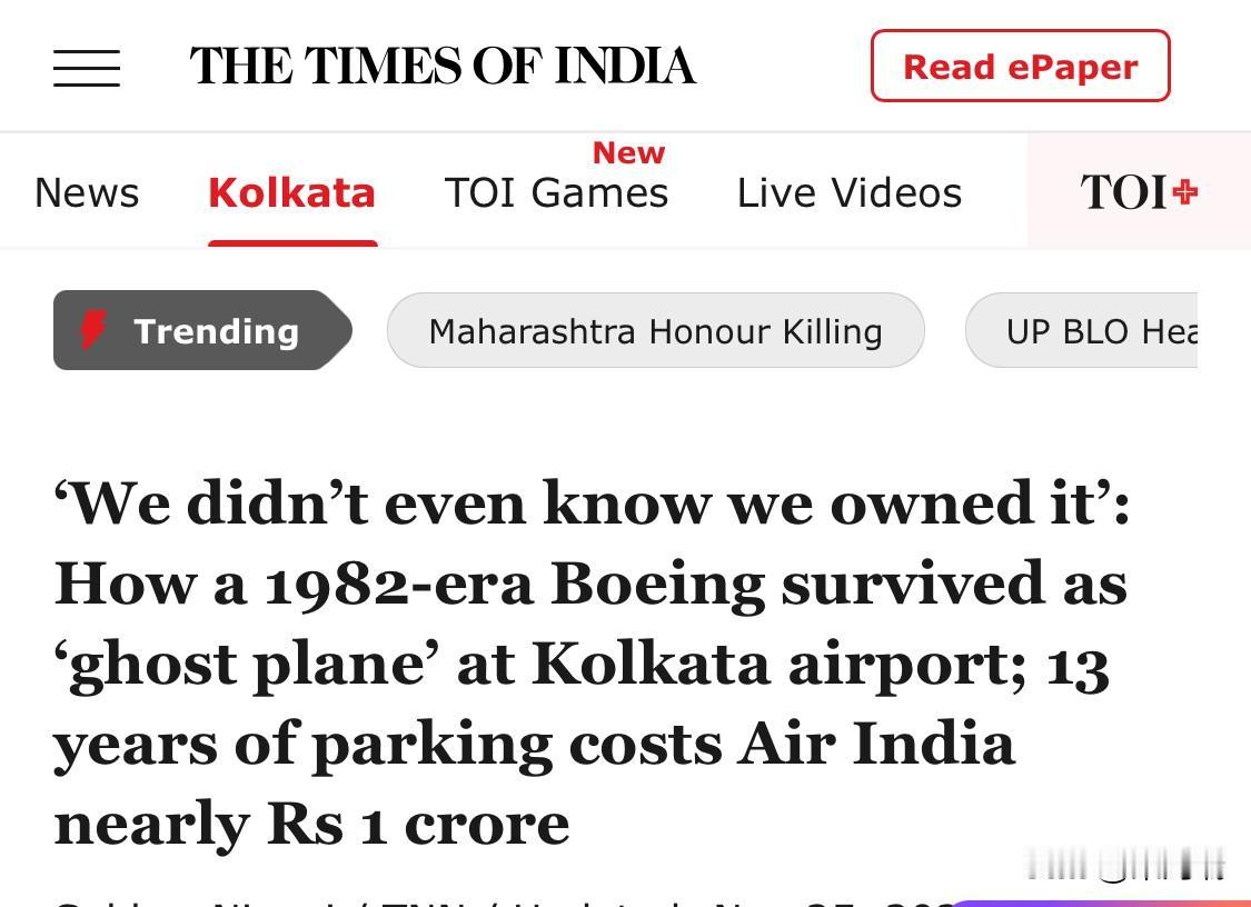 据《印度时报》报道,印度航空(Air India)有一架波音737-200飞机被遗忘在加尔各答机场(Kolkata Airport)长达13年,直到近期才被“重新发现”并移除。 这架注册号为 VT-EHH 的飞机是一架有43年机龄的波音737-200货机。 它于1982年交付给印度航空公司(Indian Airlines),后来租给联盟航空(Alliance Air),并最终在2007年改装为货机,用于印度邮政的邮件运输服务。 该飞机于2012年停飞,随后被停放在加尔各答机场一个偏远的停机位。在随后的几年里,由于航空公司的多次合并、重组以及所有权变更(特别是2022年塔塔集团(Tata Group)收购印度航空的过程),这架飞机逐渐从公司的固定资产登记册、保险文件和维护记录中消失。在行政记录上,这架飞机仿佛不存在一样。 直到2025年11月,加尔各答机场管理局要求印度航空移除这架长期闲置的飞机,印度航空才意识到他们仍然拥有这架飞机。印度航空首席执行官坎贝尔·威尔逊(Campbell Wilson)在一份内部备忘录中承认,公司直到近期才得知拥有这架飞机。 在这13年期间,加尔各答机场持续向印度航空收取停车费,累积费用接近 1千万印度卢比(约合12万美元)。印度航空最终支付了这笔费用。 这架飞机最终被印度航空出售,并于2025年11月14日通过公路运输的方式运往班加罗尔(Bengaluru),在那里它将被用作维护工程师的地面培训设备。 这一事件暴露了印度航空在私有化之前存在的管理松散和资产追踪系统的重大漏洞。