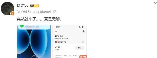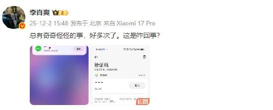 【小米高管疑似集体遭遇短信轰炸】12月2日消息,今日下午,小米集团董事长特别助理、战略市场部副总经理徐洁云 在微博发文,分享自己手机短信界面的截图,并附文:“突然就来了,真是无聊。 ”截图显示,其手机疑似遭遇短信轰炸,在短短数分钟内接收到数十条验证码。 小米公司新媒体总监神得强Steven 也在徐洁云该条微博下评论:我也收到过。 此后,小米汽车副总裁李肖爽 也发微博分享截图表示收到了短信轰炸:“总有奇奇怪怪的事,好多次了。这是咋回事?”