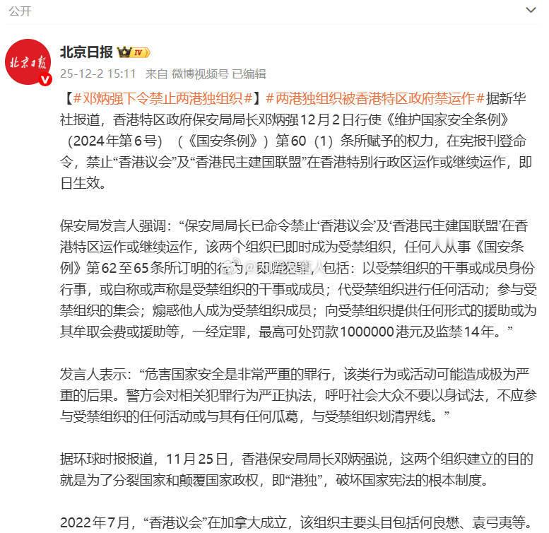 邓炳强下令禁止两港独组织 看到媒体报道被禁的港独组织中“袁弓夷”这个名字,想起袁曾经在5年前,跟前人民大学退休老师周笑症(抱歉用错别字)联合录过节目 图片中上面的文字,是周说的话,这老家伙这番话,不知道撒泼程度能否达到顶级老周这种二货,我是实在没想到他也能走上反贼之路这个袁弓夷,曾经被内地银行起诉过,应该是他借了消费贷款不能如期还贷,有点类似闽南狼在大陆赚不到钱,就反了的意思同样是这个袁某,也曾经起诉过小米公司和苹果公司两港独组织被香港特区政府禁运作,热点观点