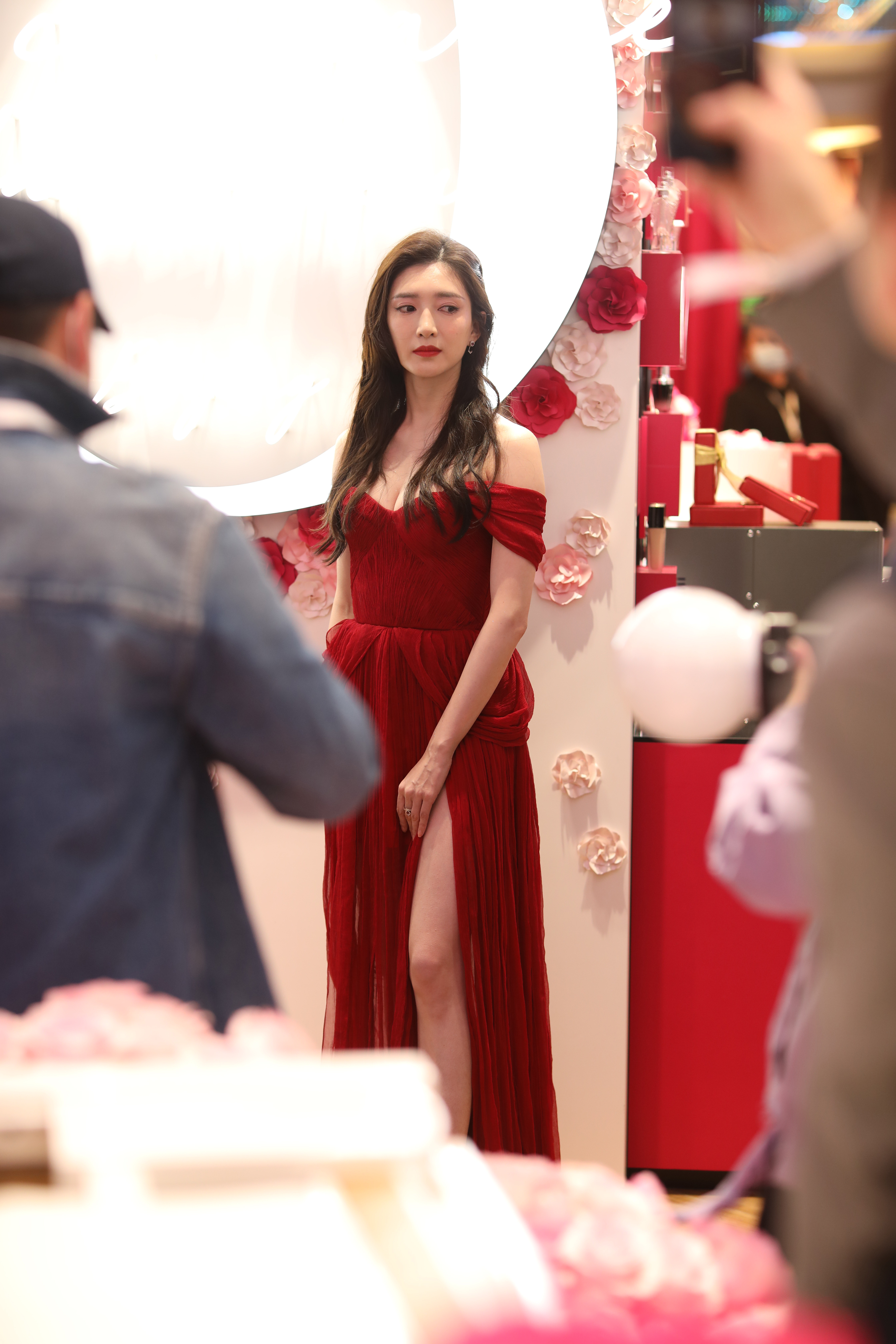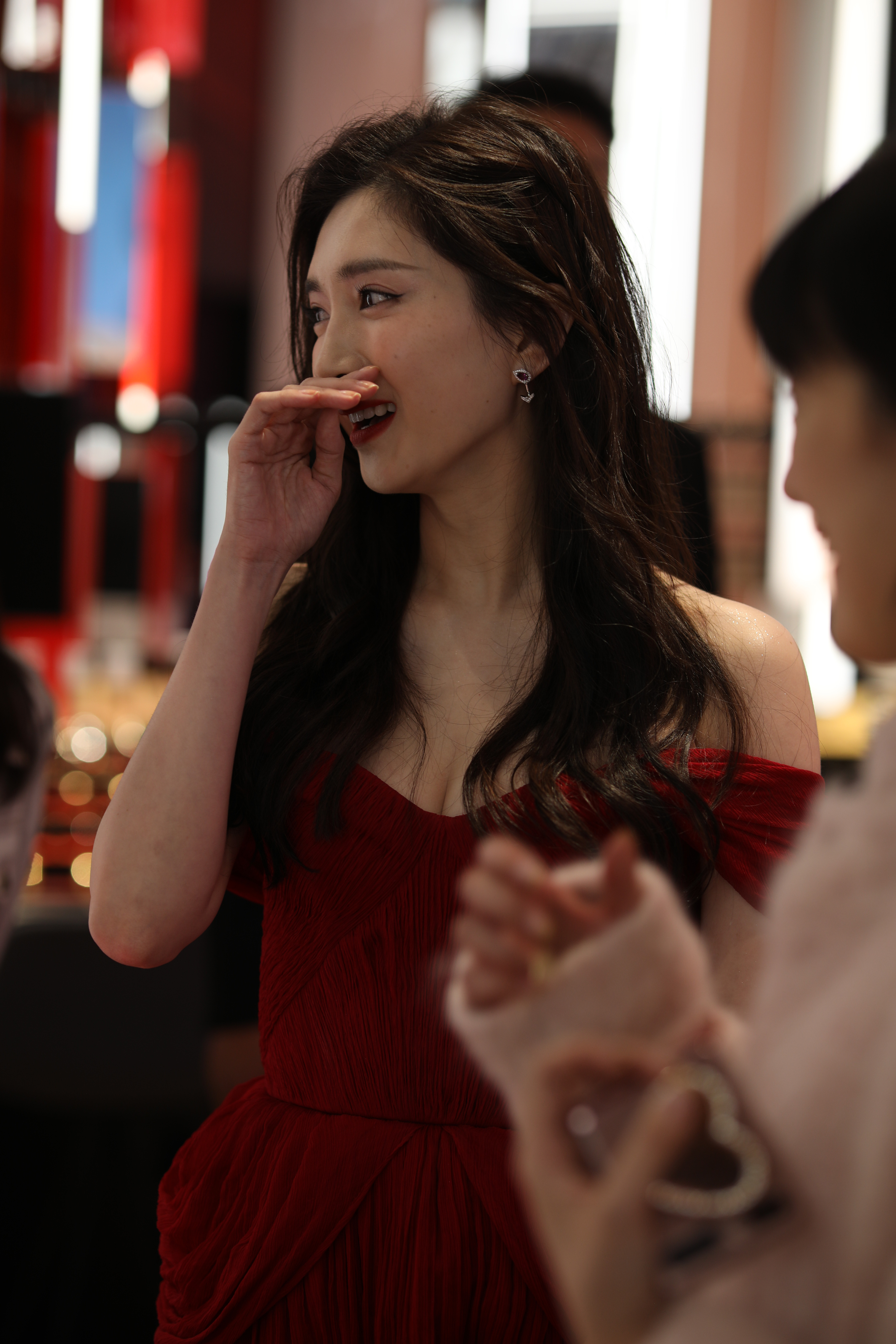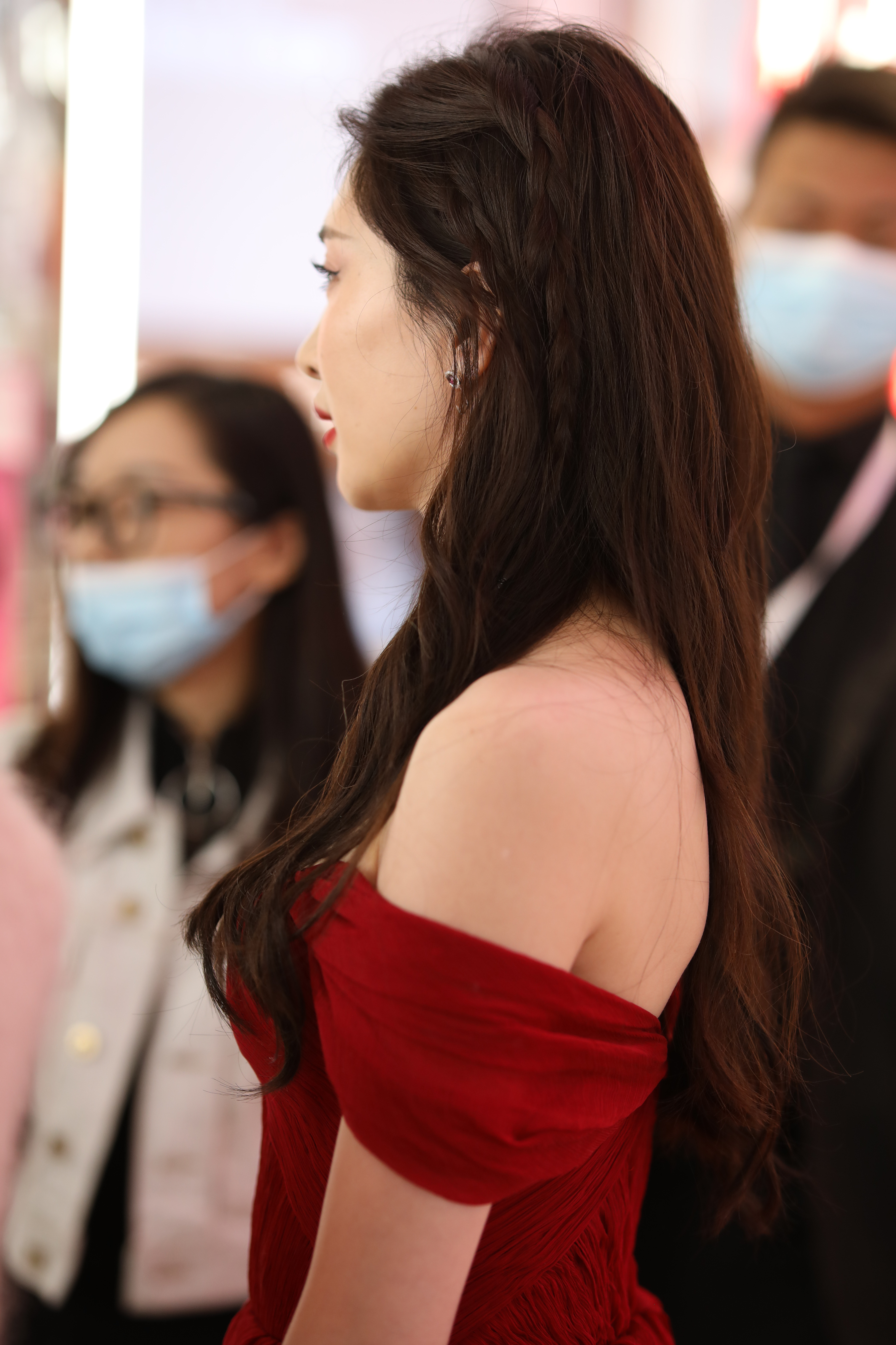江疏影 x 兰蔻品牌活动生图· 红色抹胸开衩裙江疏影 知性美