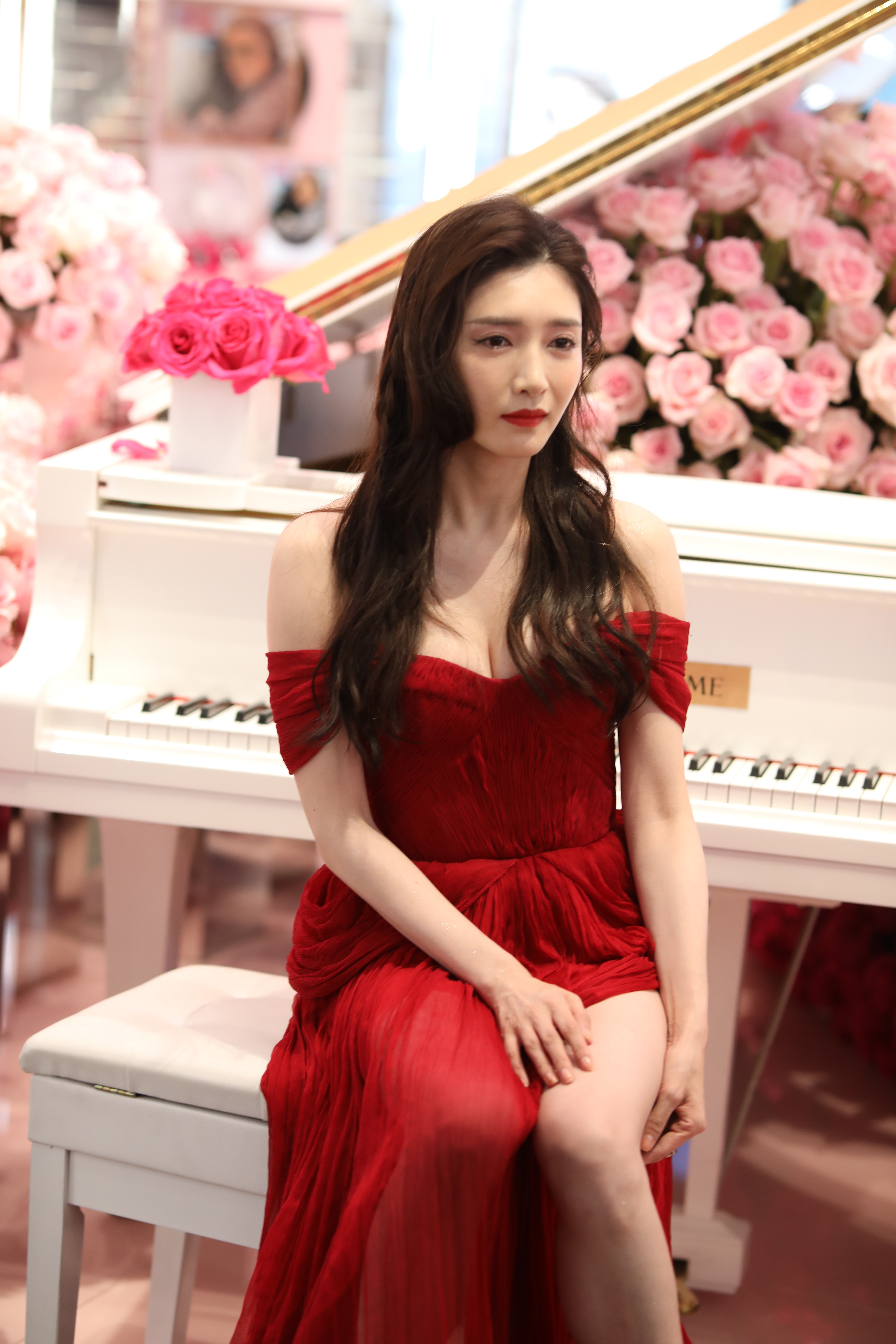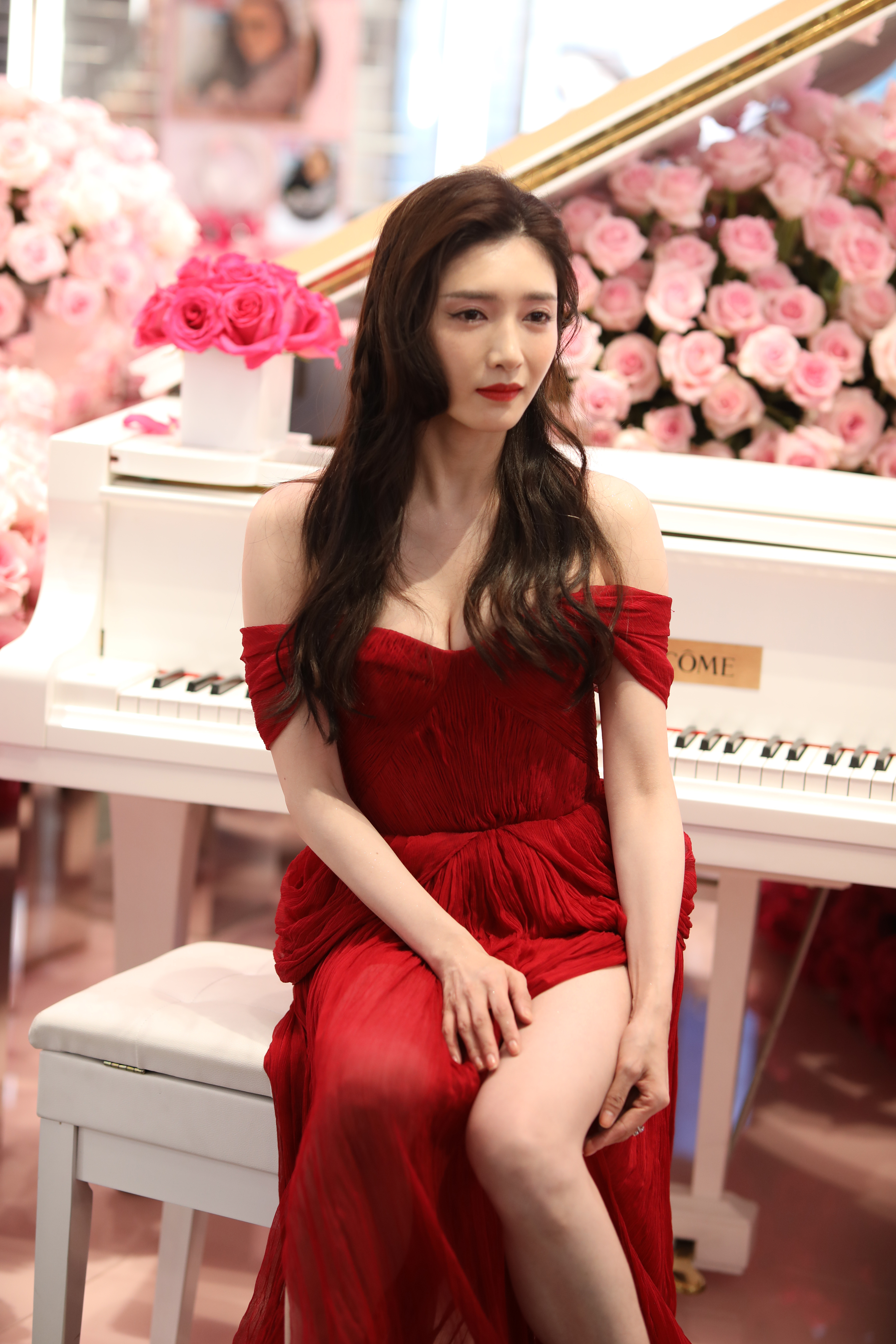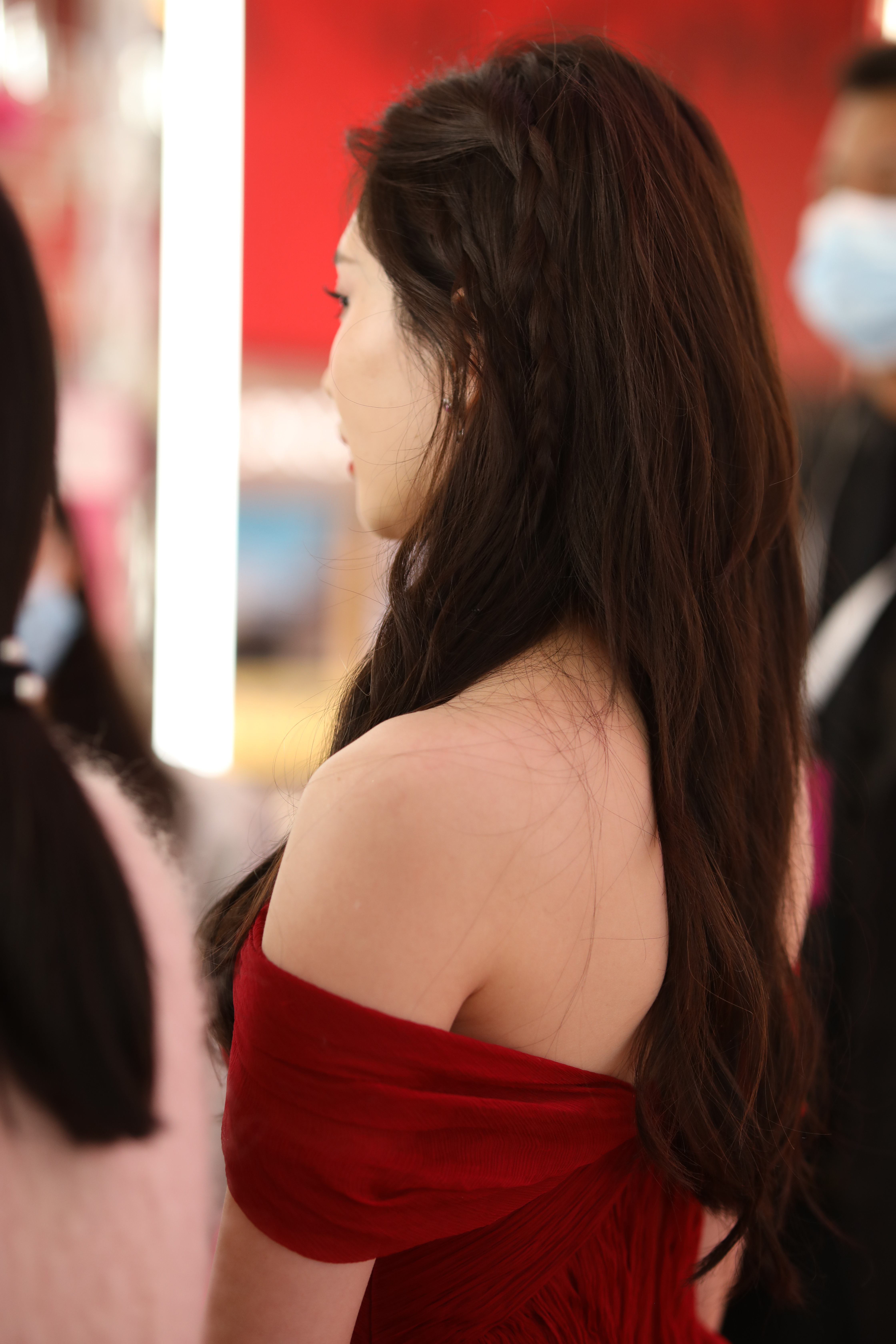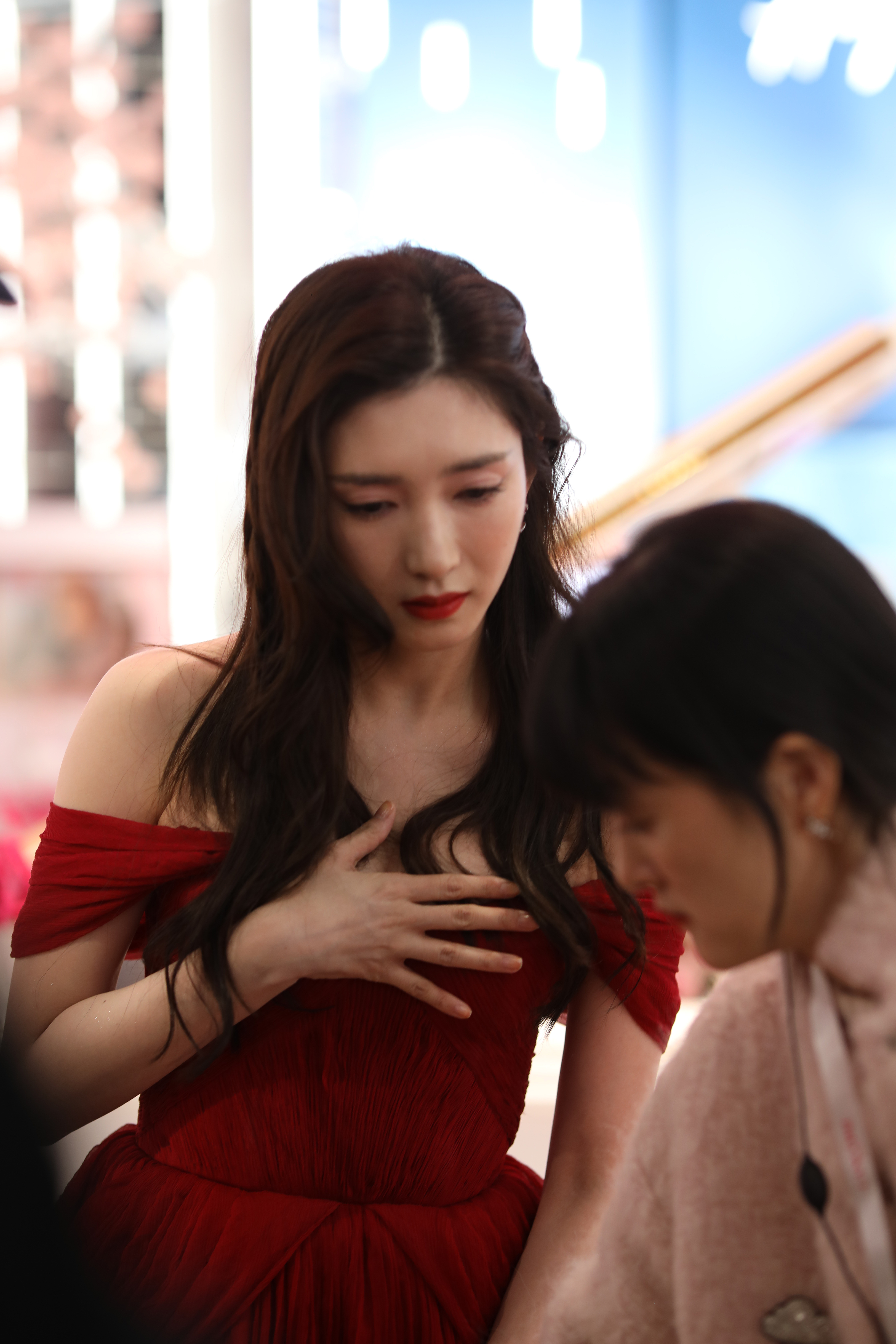 江疏影 x 兰蔻品牌活动生图· 红色抹胸开衩裙江疏影 知性美
