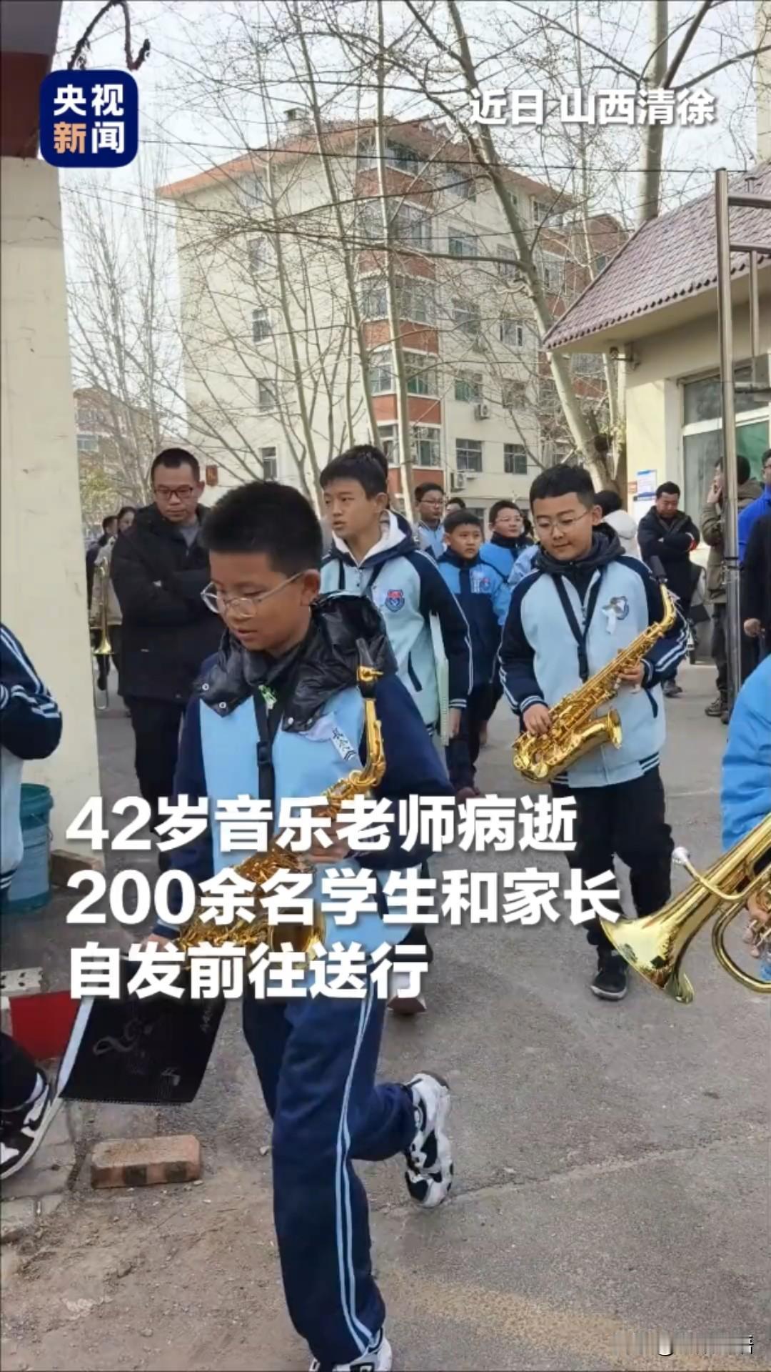 泪目了!好老师一直留在学生和家长心里!近日,山西清徐县实验学校音乐王永老师,年仅 42 岁的他在医院离世。有200 余名学生和家长自发前往送别。 王永是清徐县实验小学的音乐教师,长期致力于学生的乐器训练与合奏教学。凭借他的专业指导,管乐团四次荣获上海国际管乐节“全国优秀乐团”称号,2019 年获“中国管乐发展突出贡献奖”,2022 年在深圳龙岗区比赛中夺得一等奖。 因患一种难以根治的疾病住院治疗,病情虽经积极抢救仍未好。 送别仪式在清徐县实验小学的礼堂举行,学生们自发组织,先后演奏了多首管乐曲目和《送别》歌曲,以音乐表达对老师的深切怀念和感激。 现场气氛庄重而温暖,学生们在演奏中泣不成声! 网友说: 他肯定不止是一个只会教学生音乐的老师,而是通过音乐让学生全面成长的老师! 还有网友说:他一定很爱他的学生,是个很好的老师,不然孩子都落泪送他! 我想说:您是值得尊敬的好老师 ,愿一路走好! 您为人师表,能有爱徒如此,可以欣慰了,愿在天国安好!最感人的老师