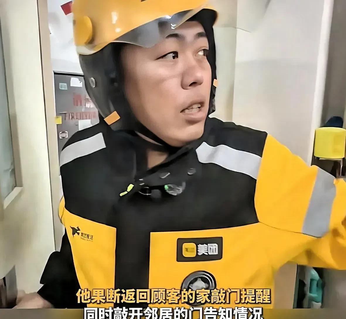 惊魂时刻!北京通州,外卖小哥送完餐,电梯门刚要合上,鼻子一抽:“不对”,他马上掉头,哐哐敲开顾客家的门:“大哥快出来闻闻!” 不等对方回话,一把将他拽到楼道,“哎呀糟了,这是谁家的燃气泄漏了!”顾客吓一大跳。 他刚送进门的是份裹着保温袋的生日蛋糕,手机锁屏上还跳着下一单的取餐倒计时——超时一分钟就要扣三块钱,可那股像臭鸡蛋一样的刺鼻气味,让他连划开手机屏幕的心思都没了。 攥紧外卖箱肩带时,指节绷得发白,他心里只有一个念头:这味浓得呛嗓子,肯定漏了不短时间,要是现在谁家按个开关,整层楼都得炸。 没顾上跟顾客多解释,他一把将人推向楼梯口:“你先撤,快去报警!”自己转身就往燃气味最浓的中间几户冲,拳头砰砰砸在门上。 敲第一家房门时,屋里静得连家电运转的嗡嗡声都没有,他把耳朵贴在门板上听,心跟着往下沉,嗓门扯得发哑:“家里有人吗?燃气漏了!快出来!” 敲到第三家,终于有个老太太颤巍巍开了条缝,眯着眼问“咋咋呼呼干啥”,他半扶半推把人往楼梯口送:“您先下楼等着,安全了再上来!” 等把同层能叫开的住户都送下楼,他鞋跟在楼道里磕得“噔噔”响,一头扎进保安室。 保安刚端起保温杯,就被他拽着胳膊往外扯:“快!XX层燃气漏了,赶紧关总阀!”保安起初还发愣,看他满头汗、脸都急白了,才慌慌张张抓了设备间钥匙往楼里赶。 没几分钟,顾客带着民警赶来,消防车也踩着尖厉的警铃停在楼下。 他扒着楼道口给消防员指方向:“味最浓的是中间那几户,能叫的我都叫出来了,应该没人落里面!” 消防员戴着防毒面具进去排查,很快找到了泄漏点——一户人家的燃气软管老化裂了,灶上还坐着烧干的锅,火早灭了,再晚个三五分钟,只要有人按个开关,后果都不敢想。 这时候,他才掏出手机,屏幕上“超时扣款”的红字明晃晃的,下一单已经超时二十分钟。 揉了揉敲得发红的手背,他没抱怨啥,刚要转身去取餐,被物业经理拦下来:“小伙子,今天真是多亏你了,不然这楼都得受牵连!” 后来平台给他发了见义勇为奖金,社区还送了锦旗。 有人问他当时没惦记超时扣的钱吗?他挠挠头:“那味太冲了,我琢磨着要是真炸了,人家一家子都完了,这点钱算啥啊。” 送外卖这几年,他帮老人拎过菜,给餐裹过两层塑料袋避雨,可这次不一样——是真攥着心在跑,多喊一嗓子、多敲一扇门,就能把危险往远推一点。 如果当时他只想着超时扣款,没回头会怎样? 也许那户人家的锅会继续干烧,也许有人回家按亮电灯,也许整栋楼都会被爆炸声惊醒。 生活里没那么多惊天动地的英雄,更多是陈文林这样的普通人:心里装着旁人的安危,遇上事不躲不缩。 这份藏在日常里的警觉和善意,才是最踏实的安全感——就像他那天没顾上的生日蛋糕,本该带去甜蜜,而他却用一个转身,护住了更多家庭的安稳