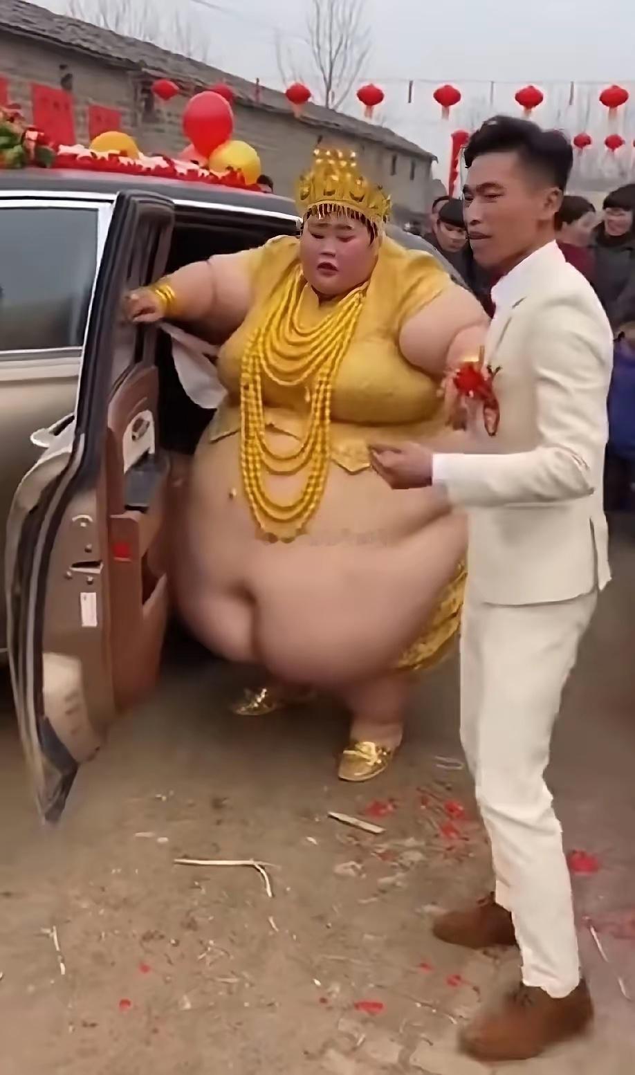 恭喜帅哥,娶了一个千金大小姐!这个是真的镇宅啊,坐那里雷打不动,出行得靠板车。算一下细账:其实娶这样的新娘确实很划算,同样的彩礼,你娶的才八九十斤,人家等于娶了10个!这种老婆太香了,就让给靓仔吧。