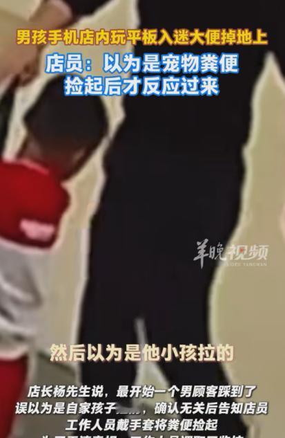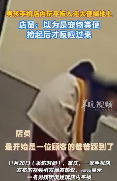 “这手不能要了!”近日,重庆,一男孩在手机店内玩平板太入迷,大便不慎掉落在了地上,工作人员发现后,误以为是宠物粪便,就戴手套将粪便捡起,事后查看监控才发现大便是从小男孩裤腿掉落。网友:这是有多大瘾啊? 店员小李捏着一次性手套的边缘,将那团褐色物体放进垃圾袋时,指腹传来的软黏触感让她心里犯嘀咕。 “最近没见顾客带宠物进来啊。”她边用消毒喷雾对着地面反复喷洒,边回想——早上刚拖过的地板还泛着水光,粪便边缘的擦痕新鲜得像是刚掉下来的。 几分钟前,穿黑色夹克的男顾客蹲在柜台前选手机壳,突然“哎呀”一声跳起来。 他低头盯着右脚鞋底,又看看地面,脸色由疑惑变尴尬:“你们店里……是不是有宠物进来过?” 小李赶紧跑过去,顺着他指的方向看到那团东西,第一反应是附近宠物店的顾客顺路进来时留下的——之前确实发生过小狗在门口排便的事。 她戴上手套清理时,才发现不对劲:这东西比平时遇到的宠物粪便更松散,还带着一丝若有若无的体温。 “调监控看看吧。”同事递来纸巾,小李擦着手,心里的疑团越来越大。 监控画面倒放回半小时前:手机店靠窗的体验区,穿白色运动鞋的小男孩盘腿坐在长椅上,怀里的平板屏幕亮得刺眼。 他双手拇指在屏幕上飞快点击,嘴里小声喊着“冲啊!快加血!”,身体随着游戏节奏前后晃动,完全没注意到自己的裤腿在椅子边缘蹭来蹭去。 男孩身旁,穿格子衬衫的男人靠在椅背上,举着手机刷视频,时不时发出一两声轻笑,左手搭在男孩肩膀上——却像个摆设,手指连动都没动过。 画面快进到十分钟前:男孩突然停下游戏,身体往前倾了倾,双腿不自觉地并拢,小脸憋得通红。 男人的目光从手机上移开一秒,扫了儿子一眼,见他还盯着平板,又低下头继续滑动屏幕。 就在这时,一小团深色物体从男孩宽松的运动裤裤腿滑落,“啪嗒”一声掉在地板上。 男孩似乎没察觉,调整了下姿势又开始玩游戏;男人依旧举着手机,连头都没抬。 “原来是这样……”小李看着监控,突然觉得手里的消毒湿巾都变得滚烫。 有网友说:“孩子小不懂事,大人也不管管?” 也有人小声议论:“会不会是孩子年龄太小,实在忍不住了?” 但监控里那个憋红脸的瞬间,分明足够一个成年人弯腰问一句“怎么了”。 现在的手机店里,这样的场景并不少见:家长和孩子并排坐着,各自对着一块屏幕,物理距离不到半米,心却隔着两个世界。 孩子的手指在虚拟世界里冲锋陷阵,家长的目光在短视频里流连忘返,谁都没注意到——现实世界里,有些小信号正在悄悄溜走。 就像那个掉在地上的“意外”,它掉下来的不只是粪便,还有家长本该落在孩子身上的注意力。 店员清理时的恶心或许几天就忘了,但那个没被及时回应的憋红脸的小男孩,那个搭在肩膀上却没温度的手,可能比地上的污渍更让人心里发堵。 “这手不能要了!”网友的调侃里藏着无奈。 只是比起洗干净一双手,或许更该“洗”干净的,是那些被屏幕偷走的、本该属于孩子的目光