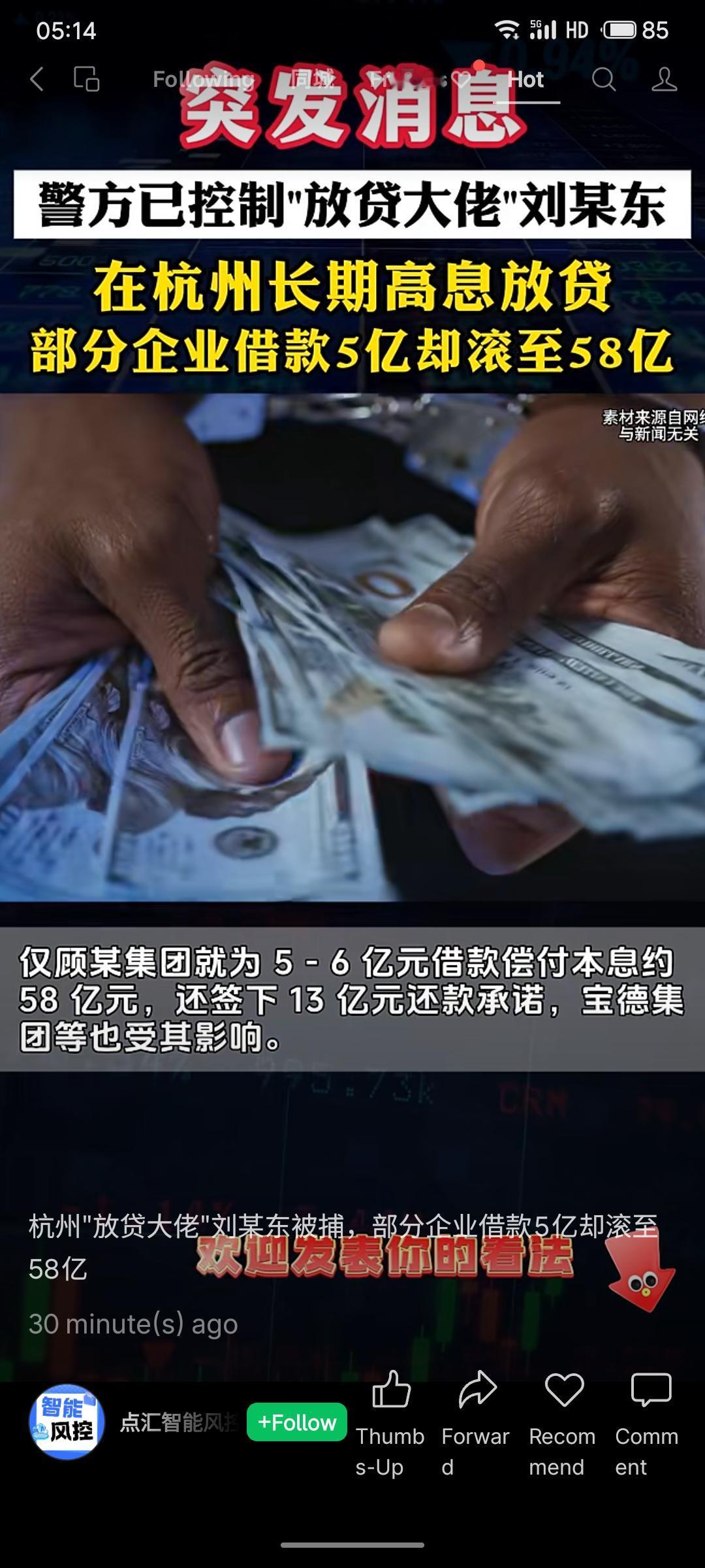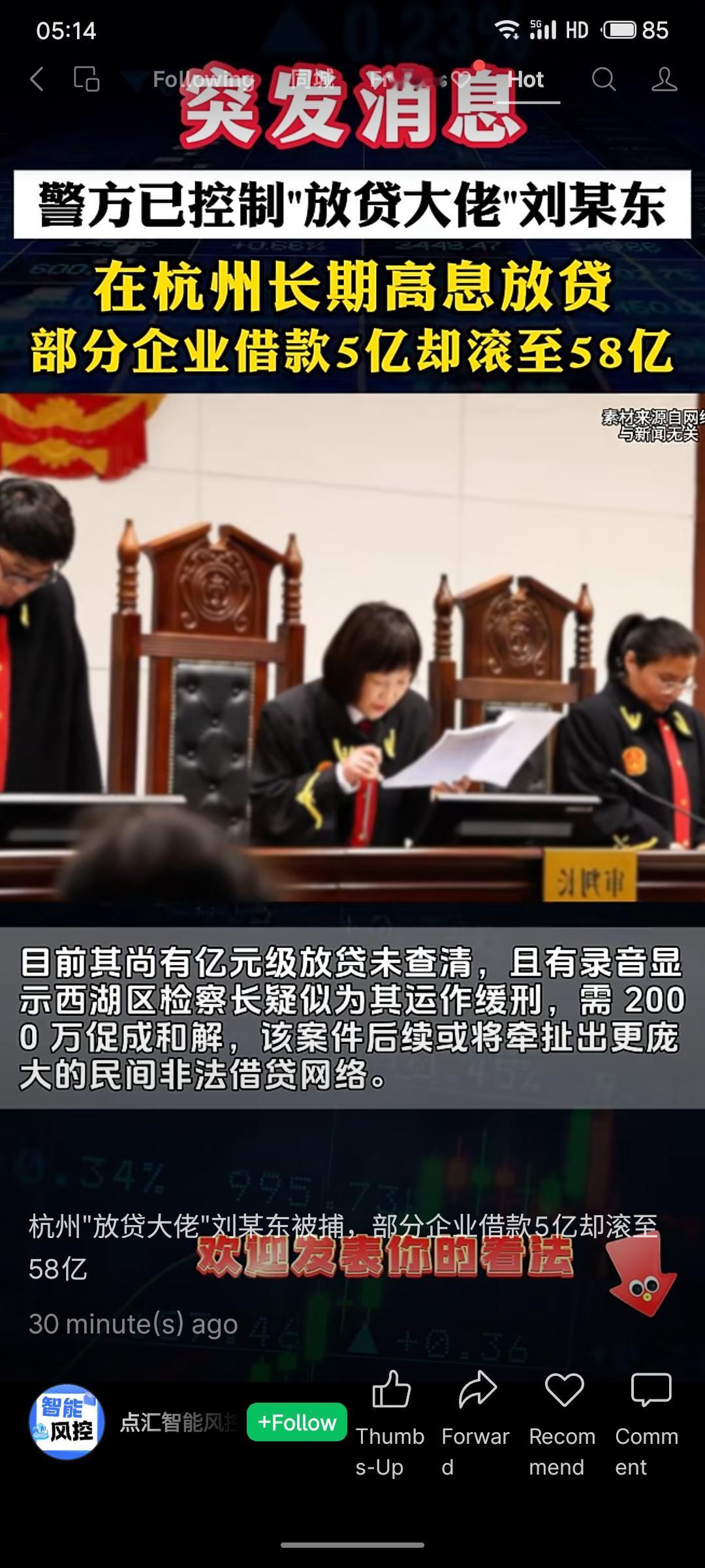 杭州“放贷大佬”刘某东因长期从事超高息放贷被警方控制。其年化利率高达84%,通过“砍头息”等方式,使部分企业借款5亿滚至58亿。案件还牵涉司法人员涉嫌运作缓刑,暴露出民间非法借贷网络的严重问题与监管挑战。