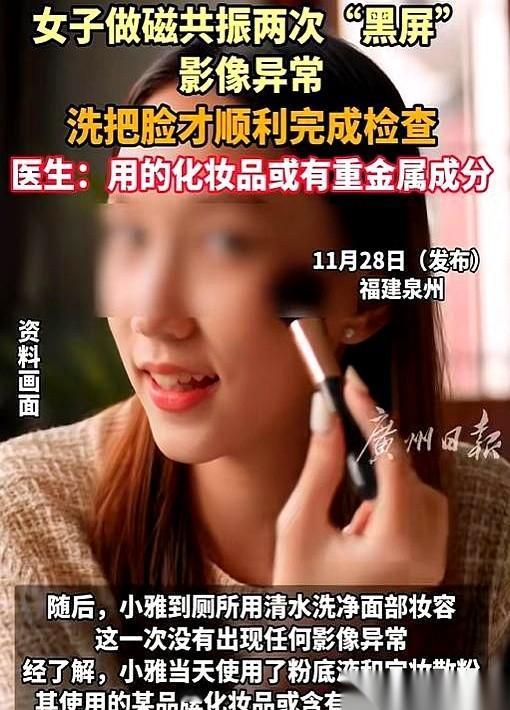 福建一个姑娘,才29岁,头晕去做个核磁共振。 结果你猜怎么着? 那台几百万的精密仪器,对着她的脸,连着两次,直接黑屏死机。 姑娘都快吓哭了,以为自己身体里长了什么不得了的金属疙瘩。 她把项链、耳环全摘了,连手机都不敢带进屋,自认做到了万无一失。 医生也纳闷,问遍了有没有假牙、有没有纹眉,姑娘一概摇头。 现场气氛那叫一个凝重。 就在第三次准备启动前,一个经验老到的技师大姐蹲下来,盯着姑娘的脸看了半天,突然说: “你去把妆卸了再试试。” 就这一句话,点醒梦中人。 姑娘跑到洗手间,卸妆棉、洗面奶一顿操作,把脸搓得干干净净,再躺回去。 你猜怎么着?机器稳如老狗,一路顺畅,片子清晰得不得了。 问题就出在她早上涂的粉底液和散粉上。 真的,长见识了。我们平时用来遮瑕、提亮肤色的那些化妆品,里面有什么?氧化铁、二氧化钛。说白了,就是些极细微的金属粉末。 平时没事,但在核磁共振那个比地球磁场强几万倍的环境里,它们就成了捣乱的“妖精”。轻则让图像一塌糊涂,全是马赛克;重则就像这次,直接让机器罢工。 这事儿一出来,好多人才恍然大悟。 有人说因为纹了眼线,做检查时眼皮火辣辣地疼,就是里面的金属颜料在发热。 还有人因为发箍里藏了根小铁丝,差点被吸到机器里去。 细思极恐啊。 我们总嫌医院规矩多,嫌检查前准备麻烦。现在才明白,人家每一个“不准”,背后都是血泪教训。 说到底,在健康面前,什么精致妆容都是浮云。 那张需要被看清的,不是我们化了妆的脸,而是藏在皮囊之下,最真实的身体状况。 姐妹们,记住了,以后再做这种检查,别犟。 老老实实,素颜朝天。 那才是对自己最大的负责,也是对医生最大的尊重。